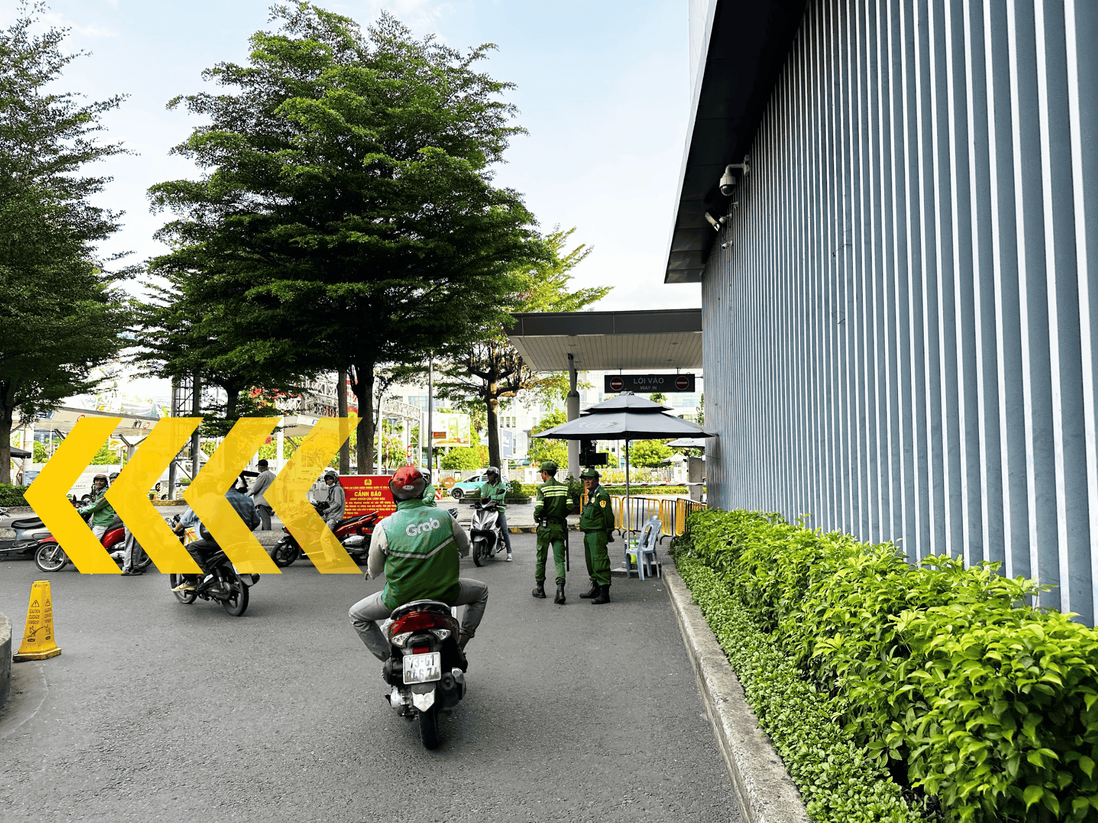 2. Đi vào nhà để xe ngay dưới bảng quảng cáo LG và kế bên Highlands Coffee.