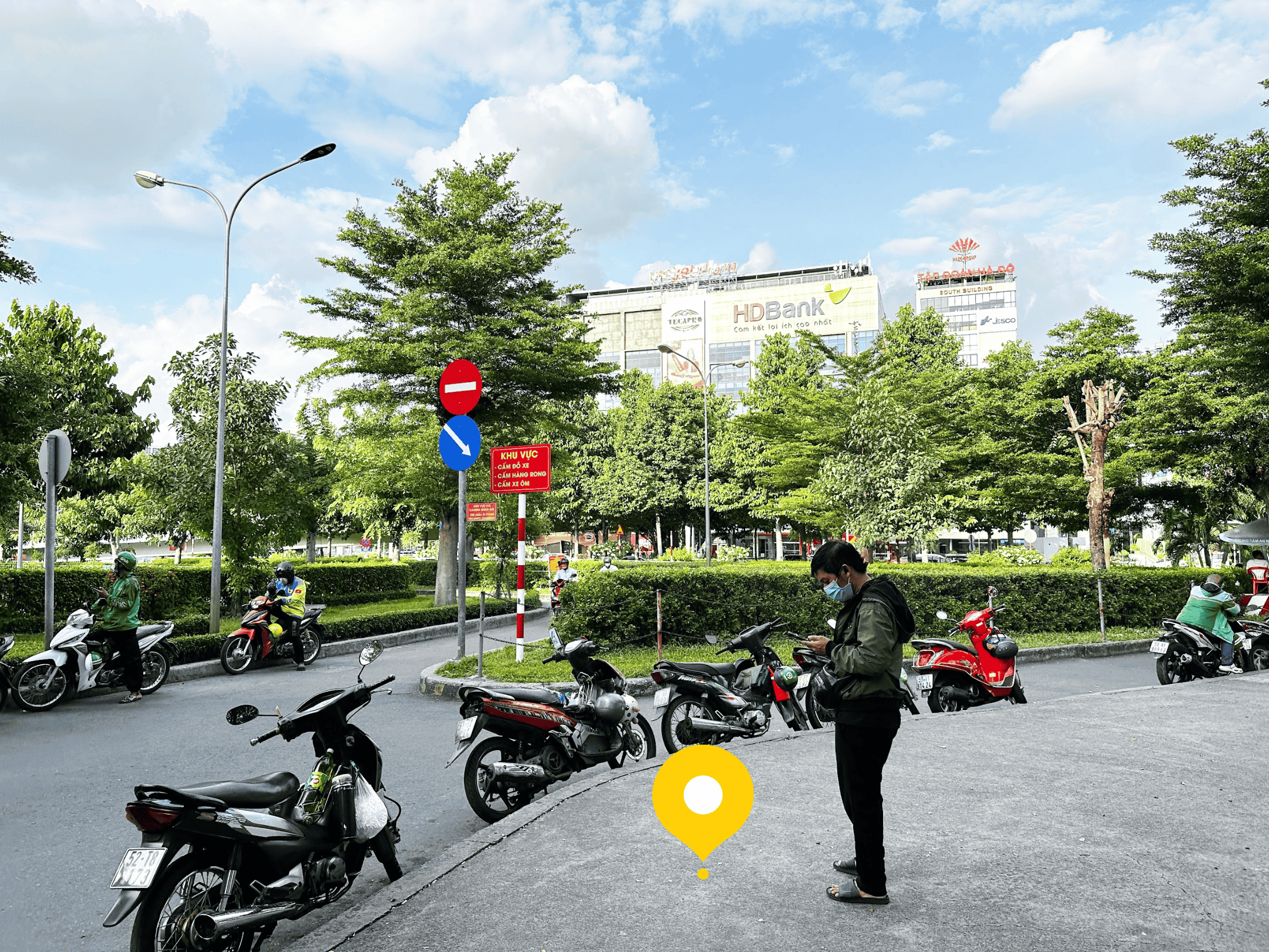 5. Thấy trạm thu phí xe ôtô thì rẽ trái lên vỉa hè đế đến điểm đón trả xe máy beBike.