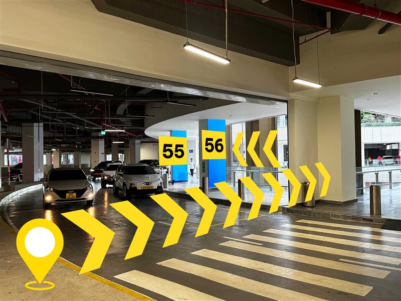 1. Từ cửa ra ga đến tầng 2 rẽ phải ở cột 24B để đi thang máy xuống Tầng 1 Trệt.
