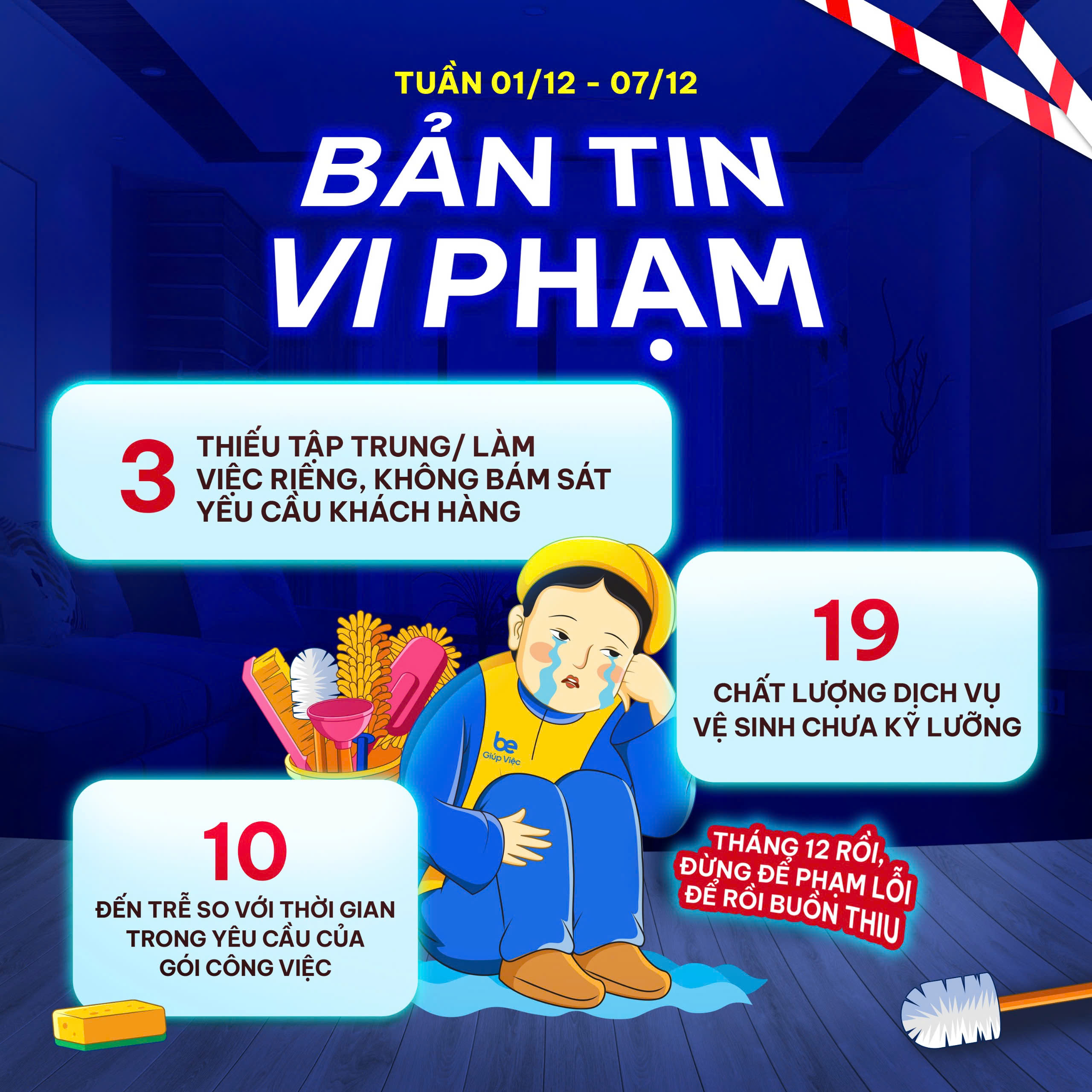 Trong tuần 01.12.2025 – 07.12.2025, hệ thống ghi nhận một số trường hợp vi phạm nội quy làm việc và quy trình vận hành dịch vụ.
