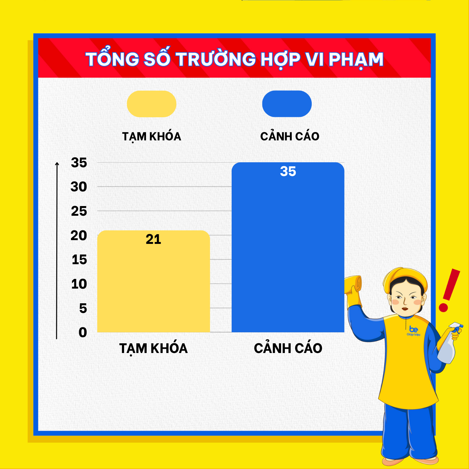 Ngoài ra, một vài trường hợp vi phạm nghiêm trọng về tác phong và chất lượng dịch vụ đã bị áp dụng chế tài cao nhất – ngưng hợp tác vĩnh viễn.