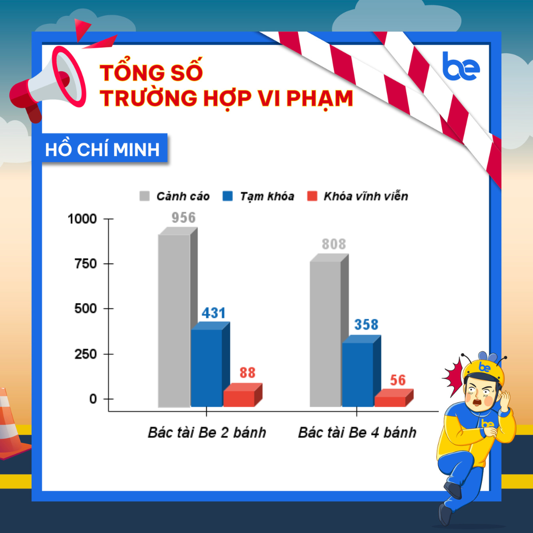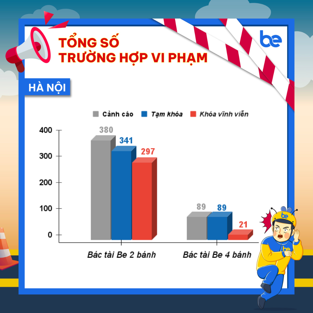 Đặc biệt, với các trường hợp vi phạm nghiêm trọng như gây mất an toàn, ảnh hưởng đến an ninh trật tự, Be đã áp dụng mức chế tài cao nhất: khóa tài khoản vĩnh viễn, không hỗ trợ mở lại dưới bất kỳ hình thức nào.
