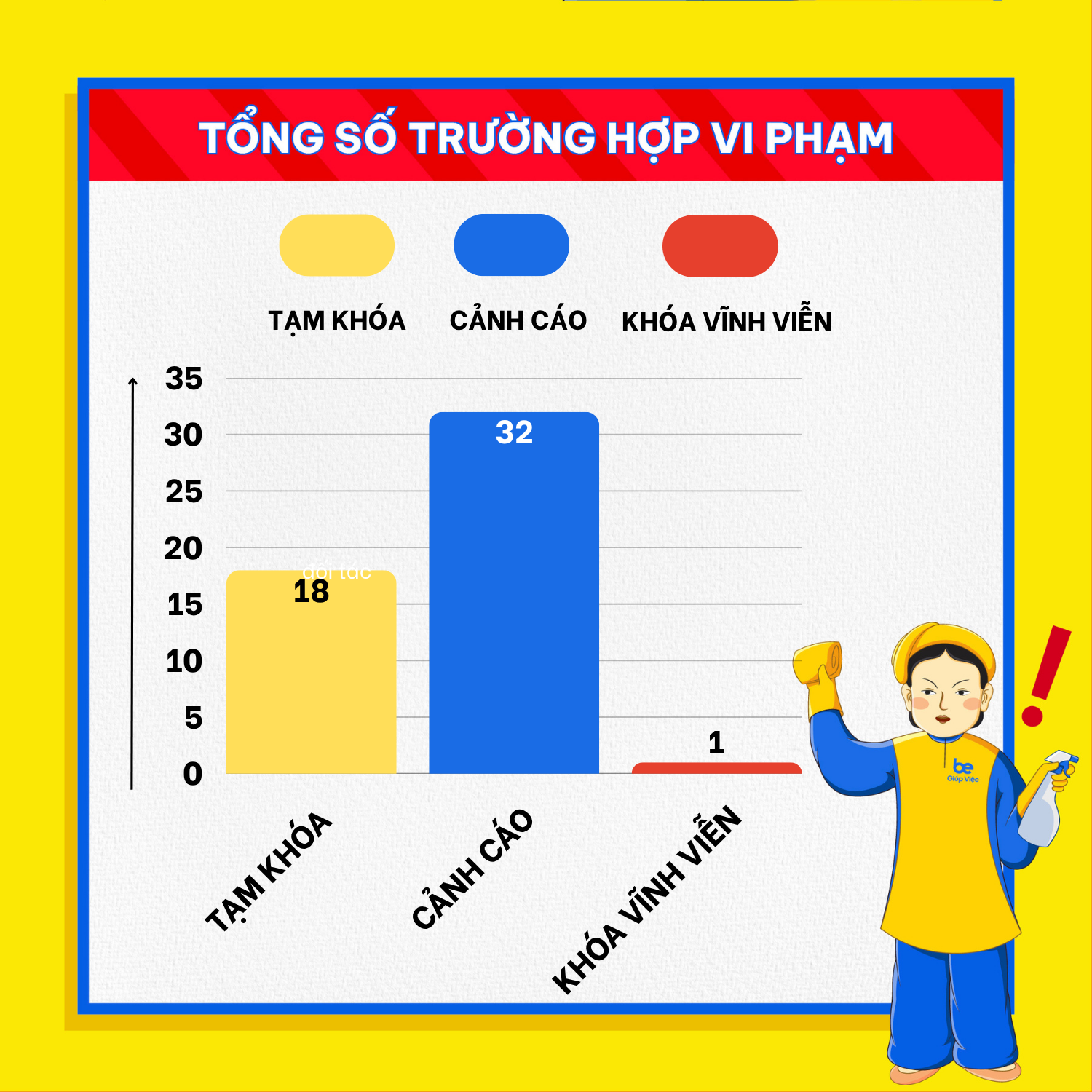 Ngoài ra, một vài trường hợp vi phạm nghiêm trọng về tác phong và chất lượng dịch vụ đã bị áp dụng chế tài cao nhất – ngưng hợp tác vĩnh viễn.