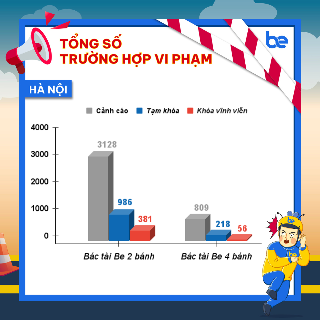 Đặc biệt, với các trường hợp vi phạm nghiêm trọng như gây mất an toàn, ảnh hưởng đến an ninh trật tự, Be đã áp dụng mức chế tài cao nhất: khóa tài khoản vĩnh viễn, không hỗ trợ mở lại dưới bất kỳ hình thức nào.
