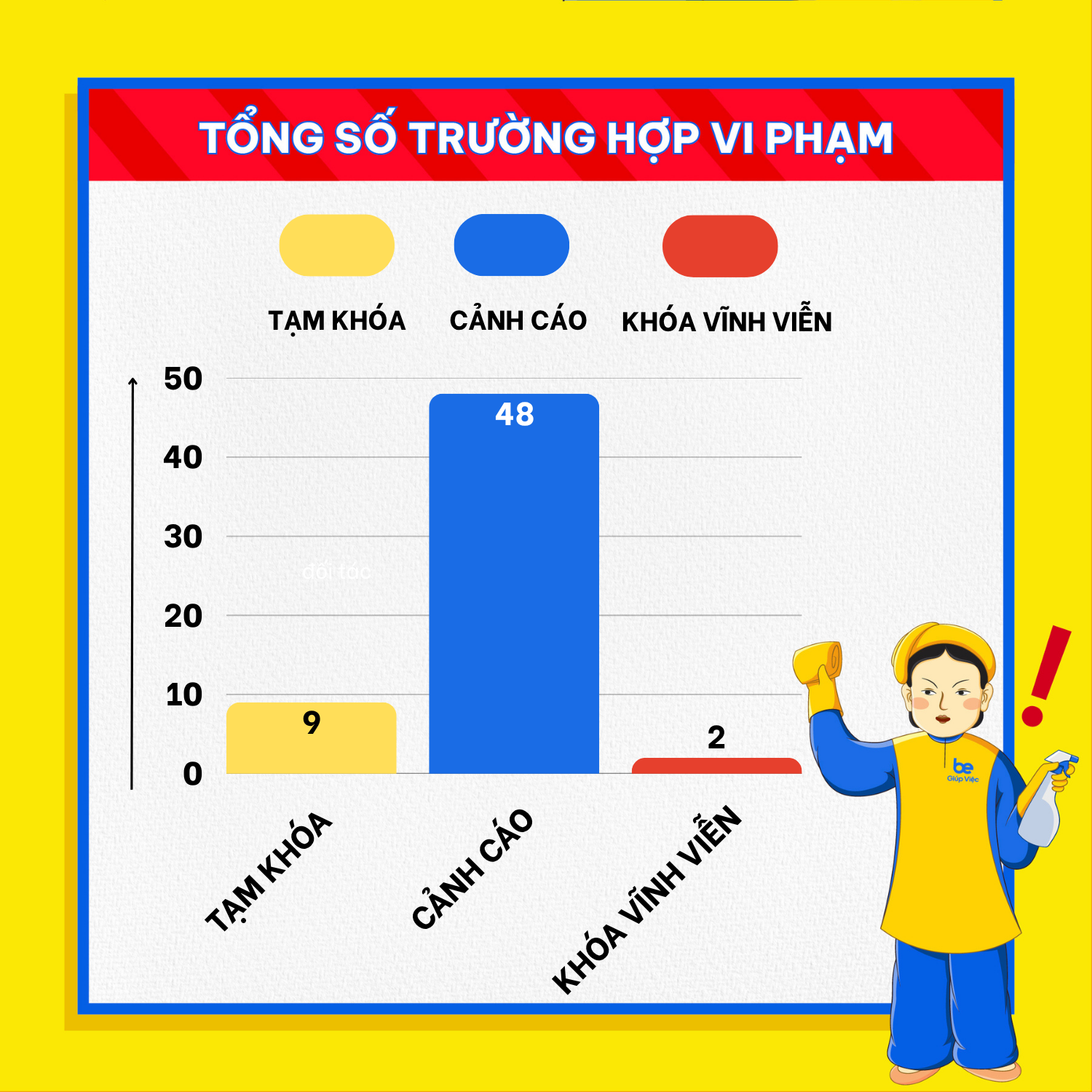 Ngoài ra, một vài trường hợp vi phạm nghiêm trọng về tác phong và chất lượng dịch vụ đã bị áp dụng chế tài cao nhất – ngưng hợp tác vĩnh viễn.