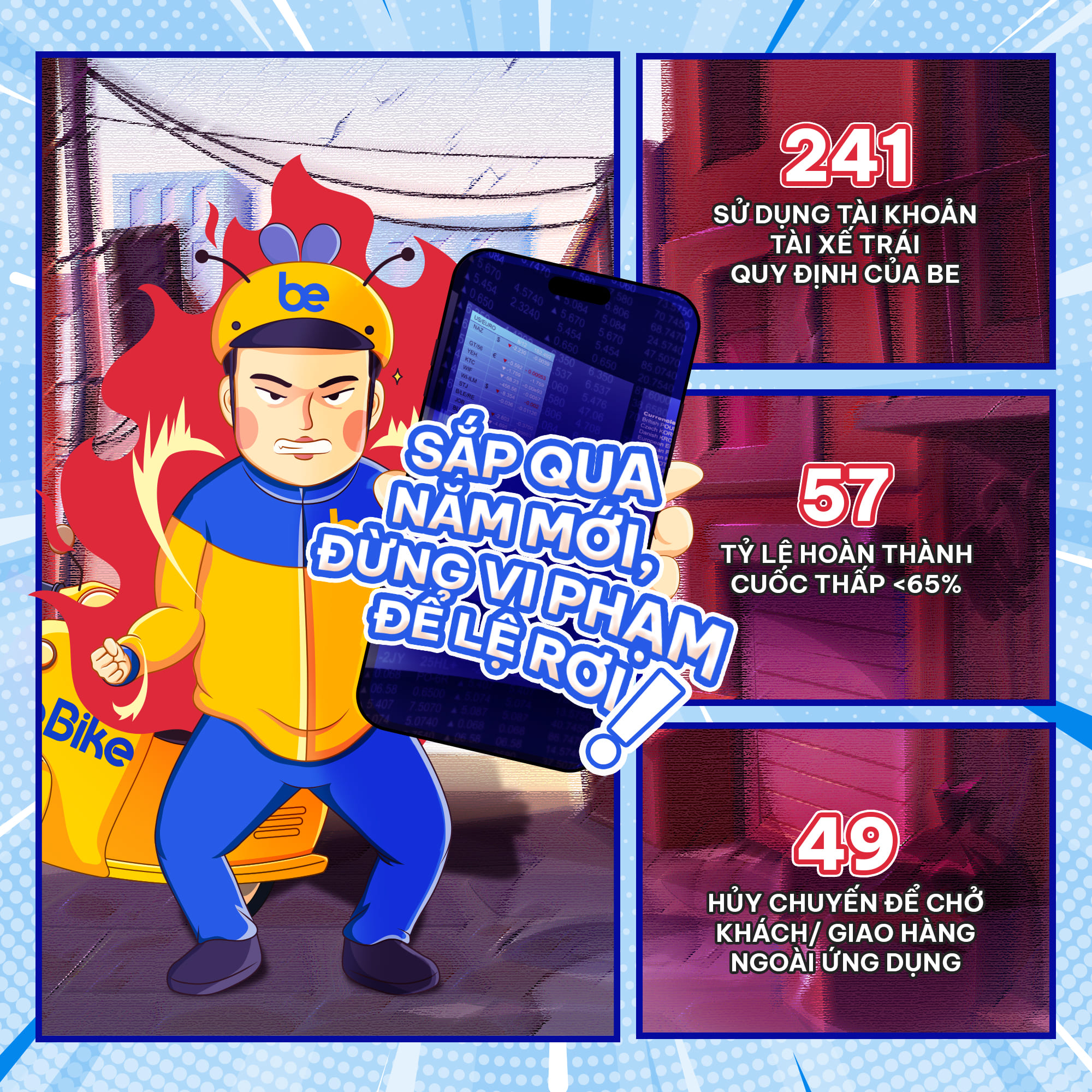 Đặc biệt, với các trường hợp vi phạm nghiêm trọng như gây mất an toàn, ảnh hưởng đến an ninh trật tự, Be đã áp dụng mức chế tài cao nhất: khóa tài khoản vĩnh viễn, không hỗ trợ mở lại dưới bất kỳ hình thức nào.