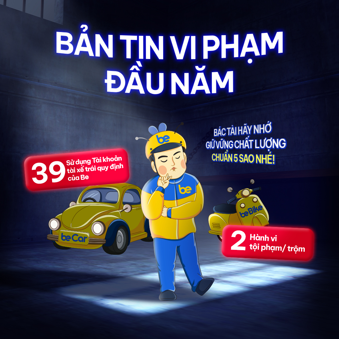 Trong tuần từ 23.02.2026 – 01.03.2026, hệ thống Be đã ghi nhận nhiều trường hợp vi phạm Bộ Quy tắc Ứng xử. Các hành vi vi phạm bao gồm không tuân thủ quy định hoạt động, gây ảnh hưởng đến chất lượng dịch vụ và sự an toàn cho hành khách cũng như cộng đồng.