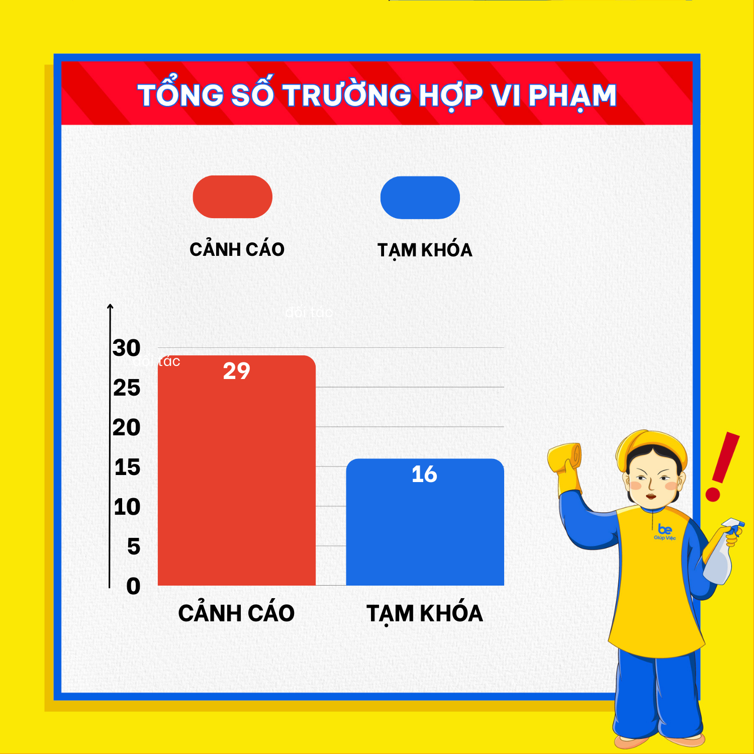 Ngoài ra, một vài trường hợp vi phạm nghiêm trọng về tác phong và chất lượng dịch vụ đã bị áp dụng chế tài cao nhất – ngưng hợp tác vĩnh viễn.