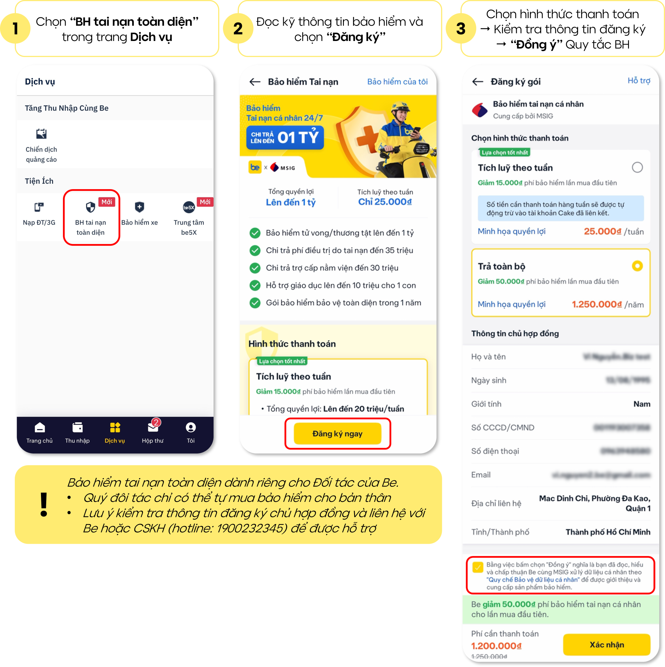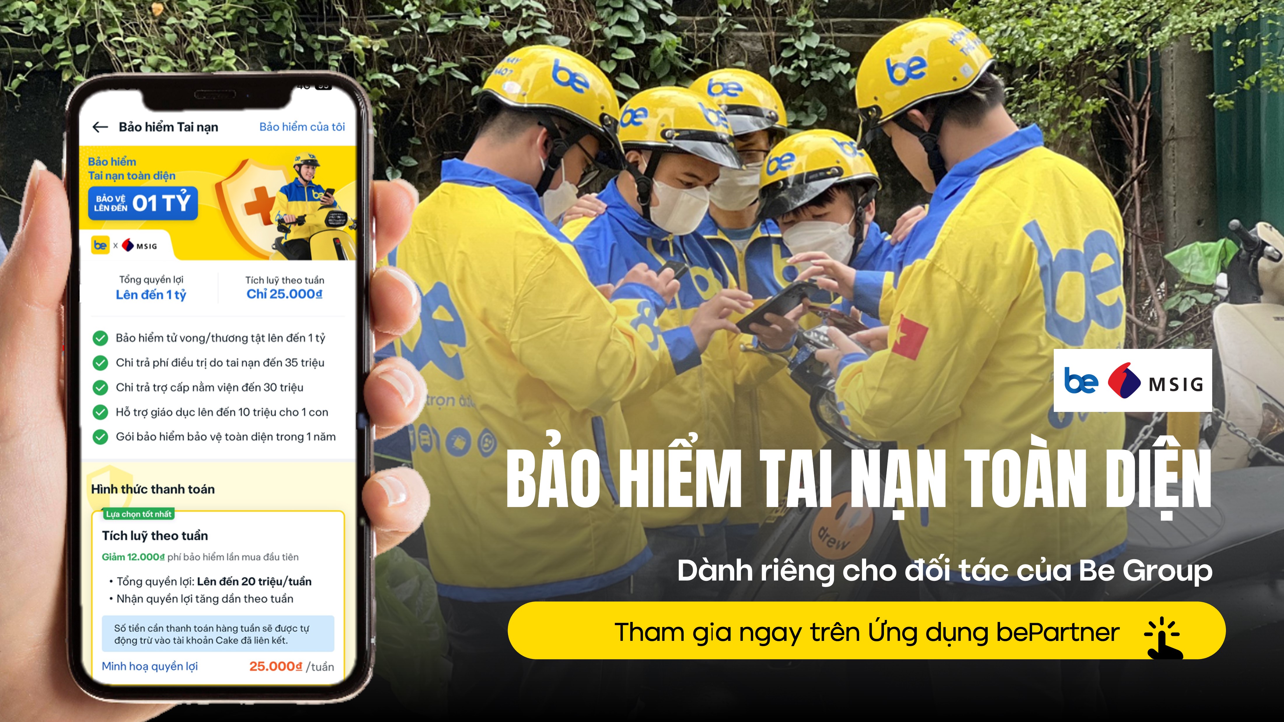 Cuộc sống luôn tiềm ẩn những tình huống bất ngờ, một sự cố nhỏ đôi khi cũng có thể để lại gánh nặng lâu dài cho bản thân và gia đình. Hiểu được nỗi lo ấy, Be kết hợp cùng Công ty bảo hiểm MSIG mang đến Chương trình Bảo hiểm tai nạn toàn diện – độc quyền dành riêng cho Đối tác dịch vụ của Be.