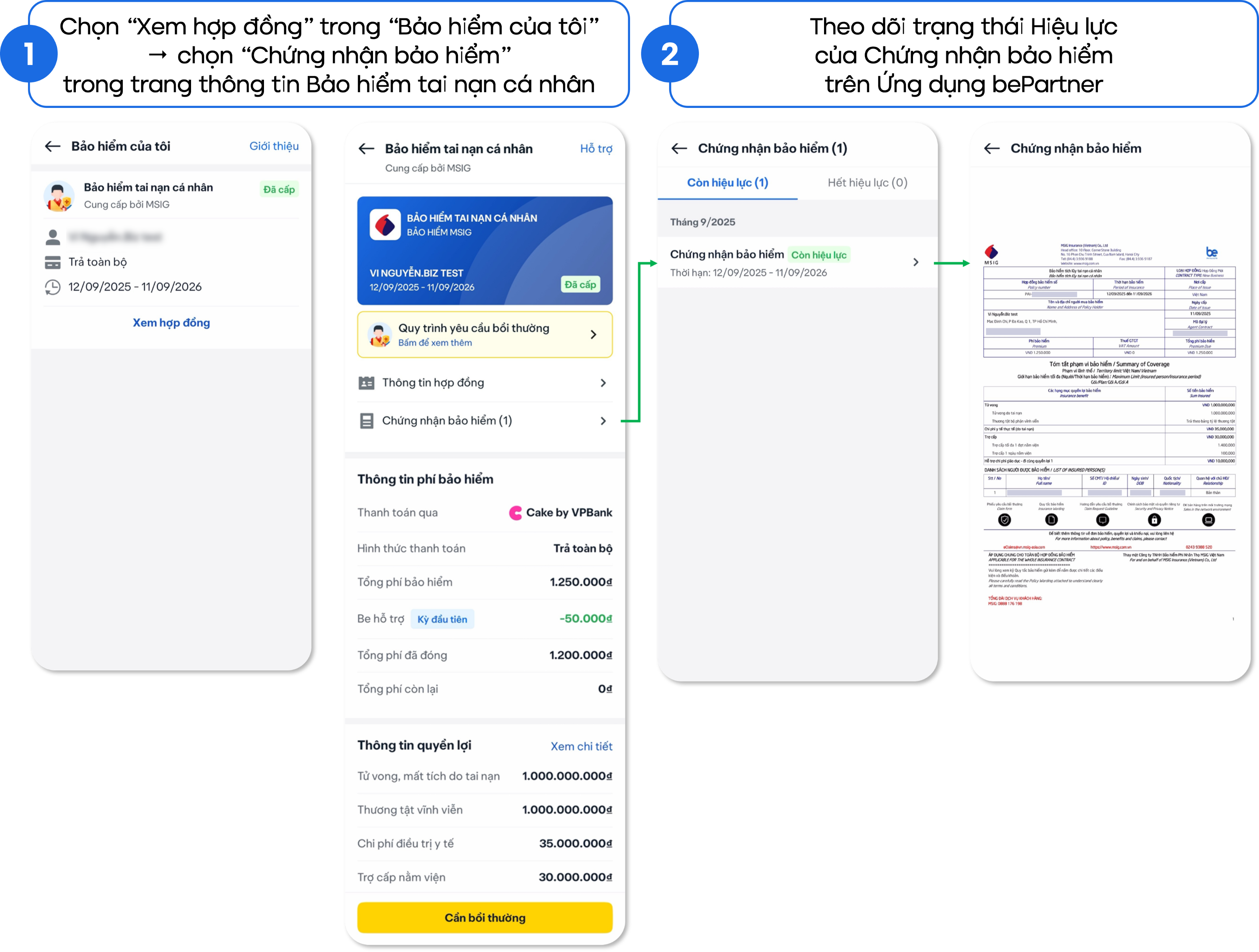 Nhận và Lưu giấy chứng nhận bảo hiểm online trên ứng dụng bePartner