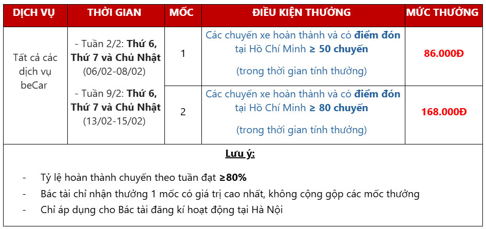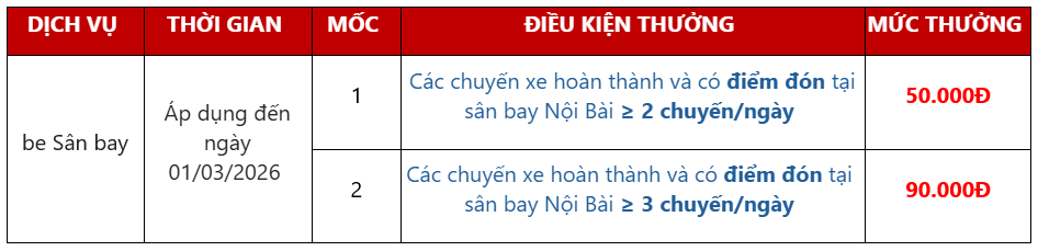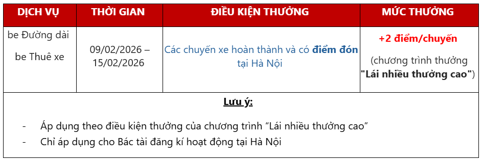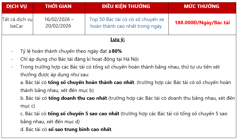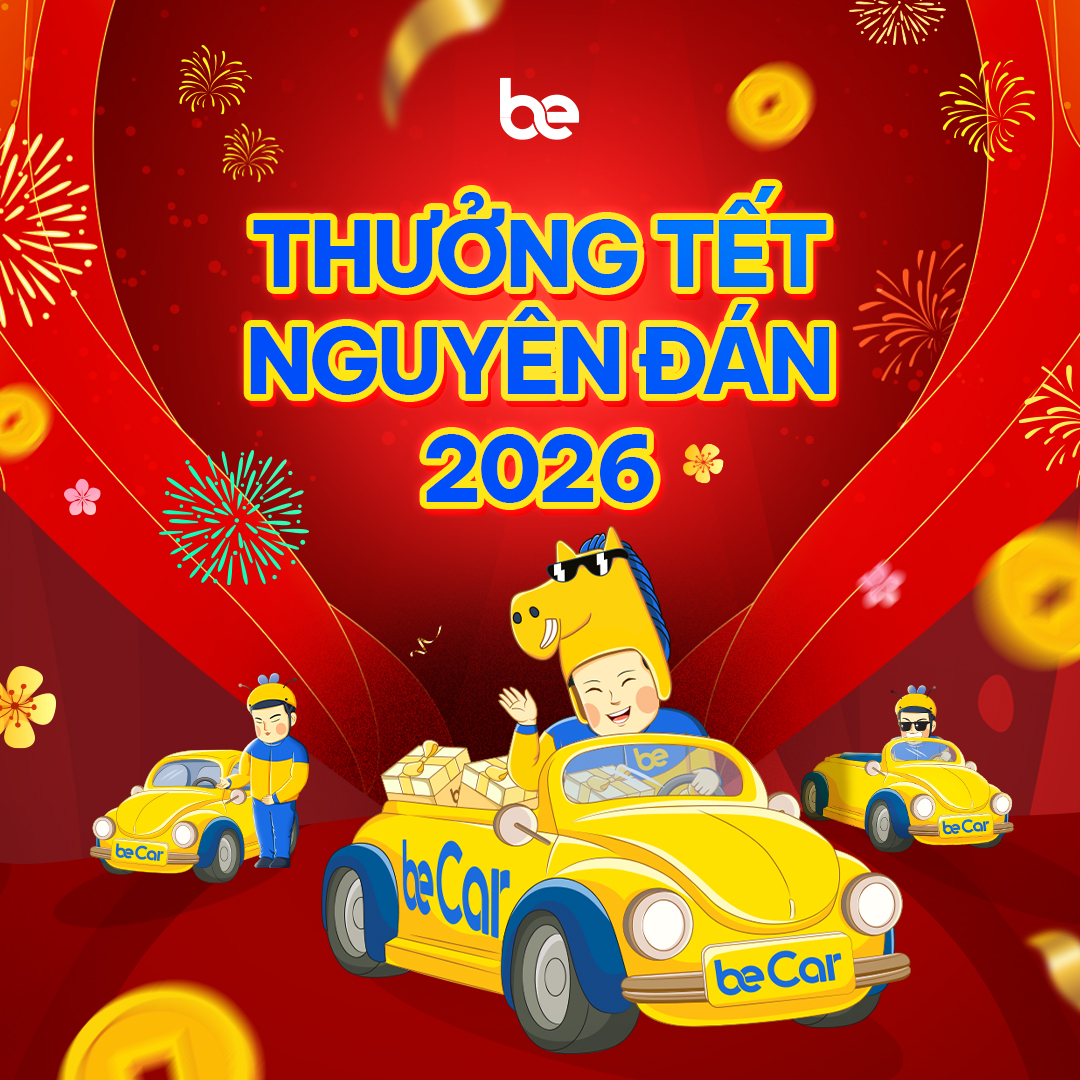 Để đồng hành cùng Bác tài suốt mùa cao điểm, Be triển khai CHUỖI CHƯƠNG TRÌNH THƯỞNG TẾT NGUYÊN ĐÁN 2026, áp dụng trước – trong – sau Tết.