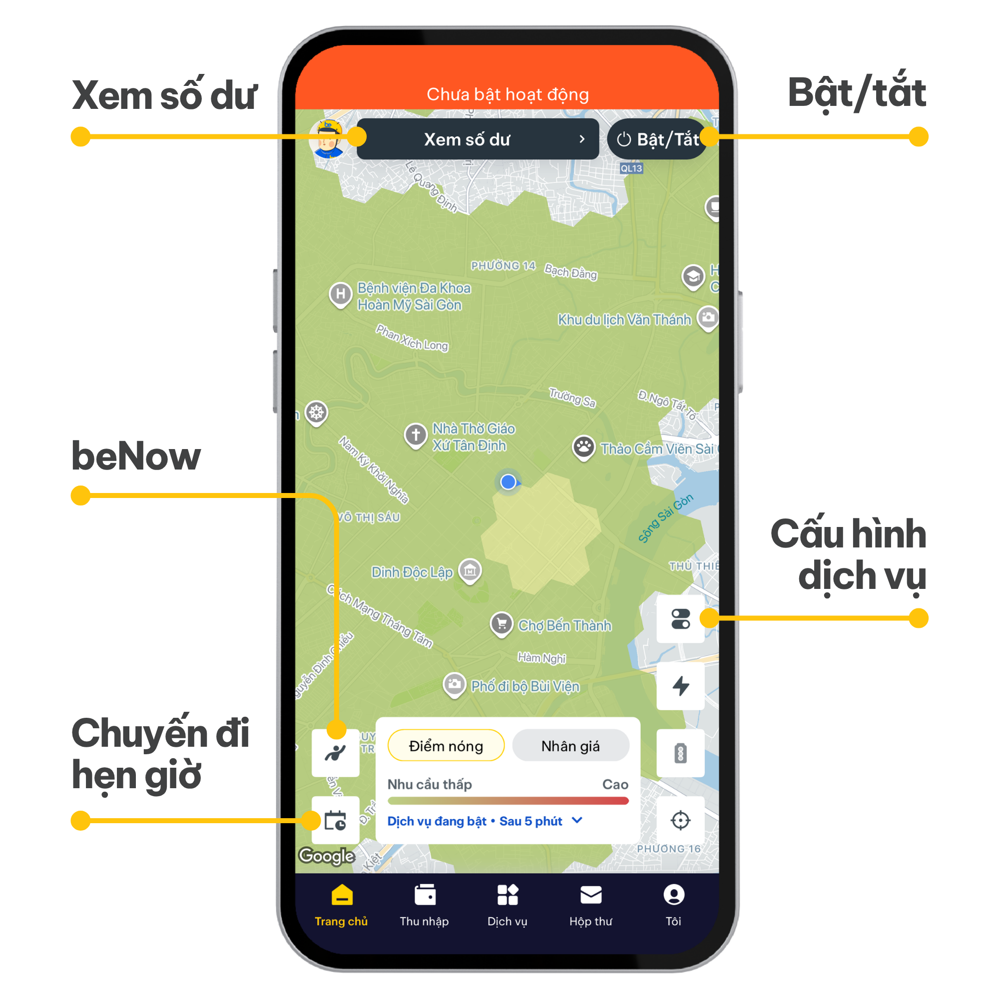 - Chuyến đi hẹn giờ: Nhận các chuyến xe được Khách hàng đặt trước