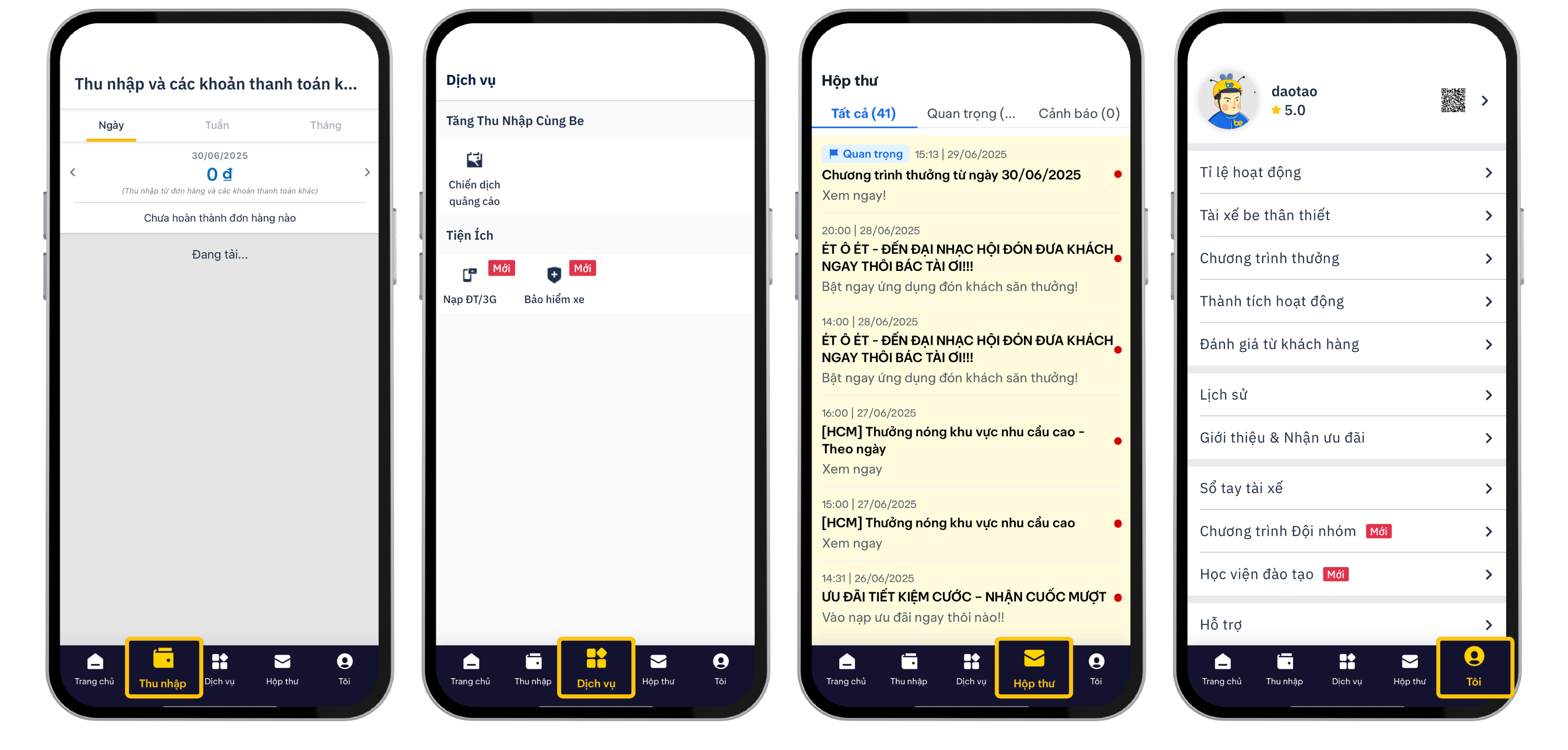 - Mục Hộp thư: Nơi nhận các thông báo, chính sách & chương trình thưởng từ be