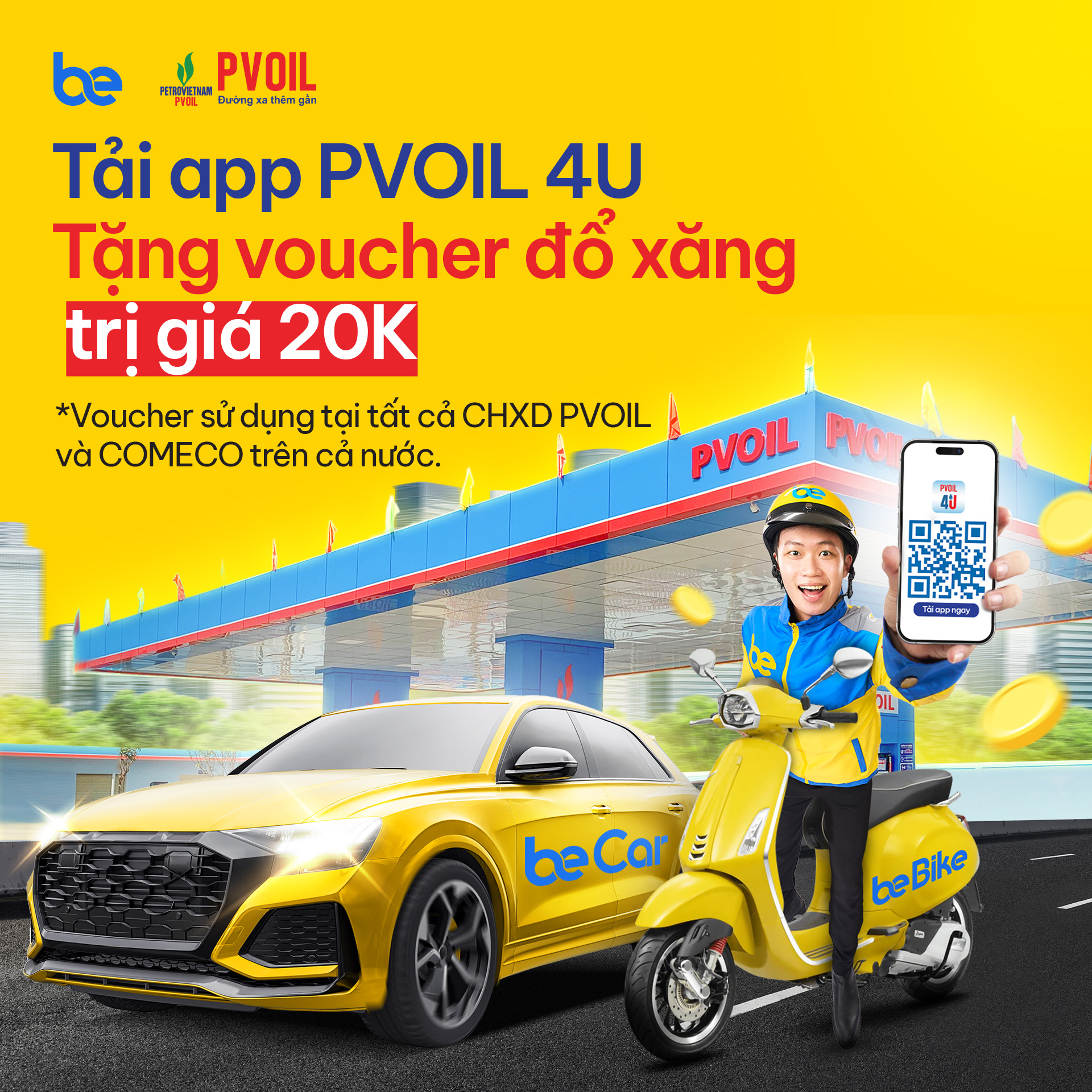 - Tặng voucher xăng 20.000đ – áp dụng tại tất cả CHXD PVOIL & COMECO toàn quốc