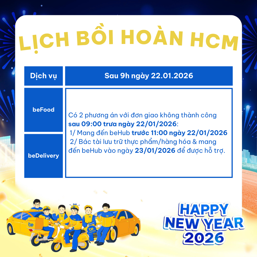 LỊCH BỒI HOÀN HCM (các dịch vụ beDelivery và beFood)