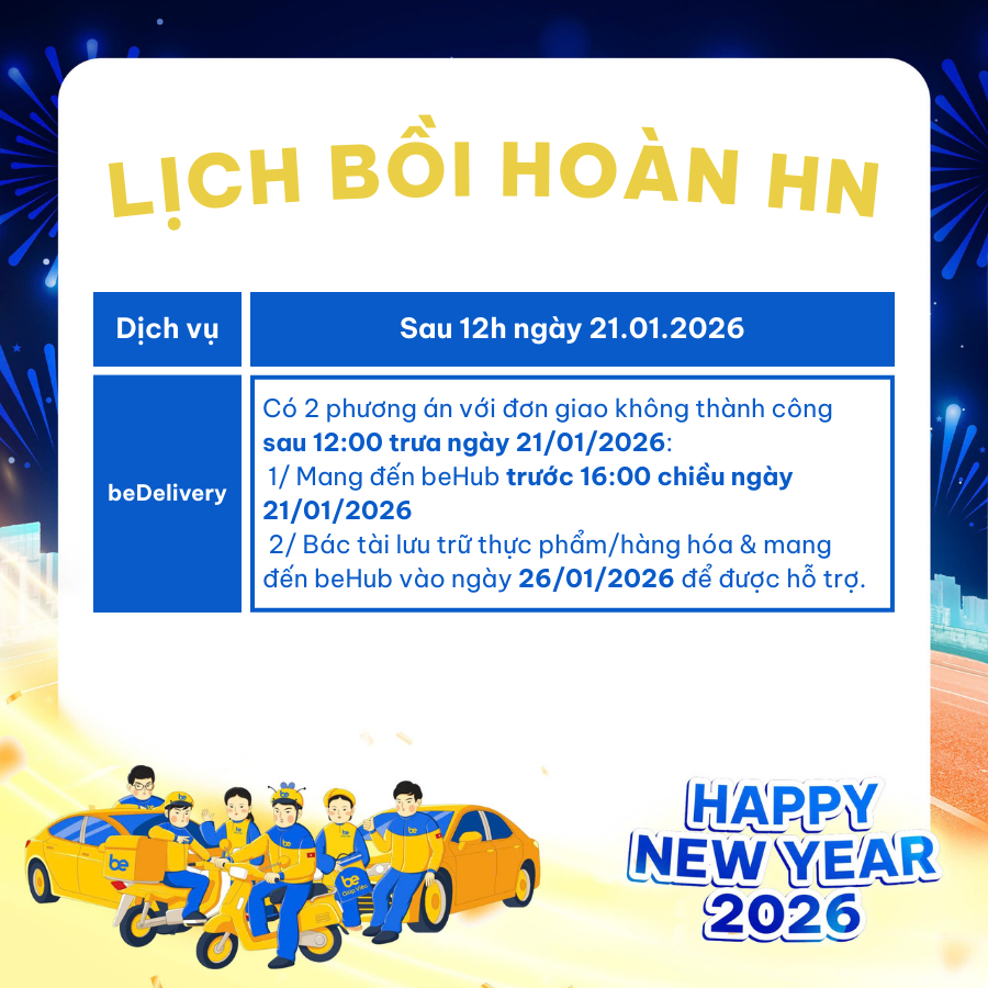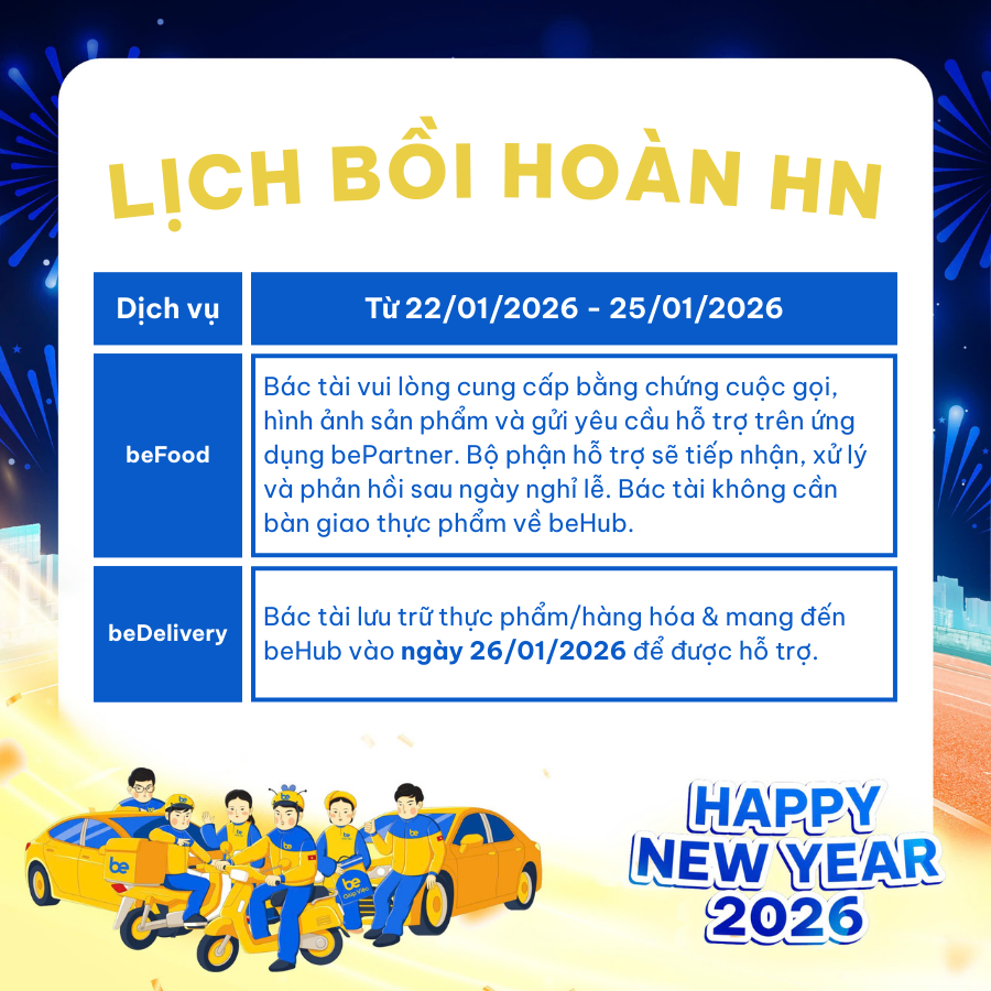LỊCH BỒI HOÀN HN (các dịch vụ beDelivery và beFood)