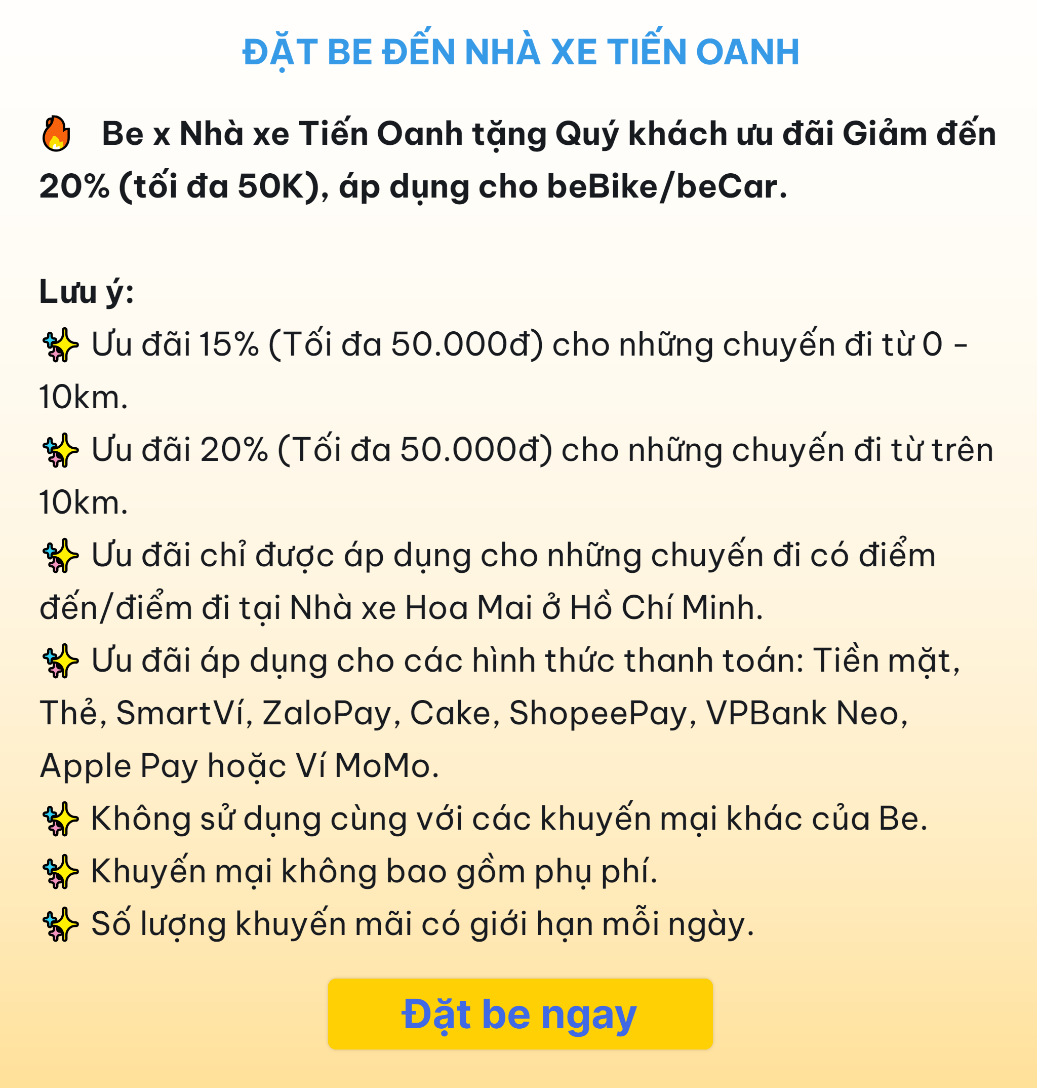 Đặt be đi đến nhà xe Tiến Oanh giảm 50K