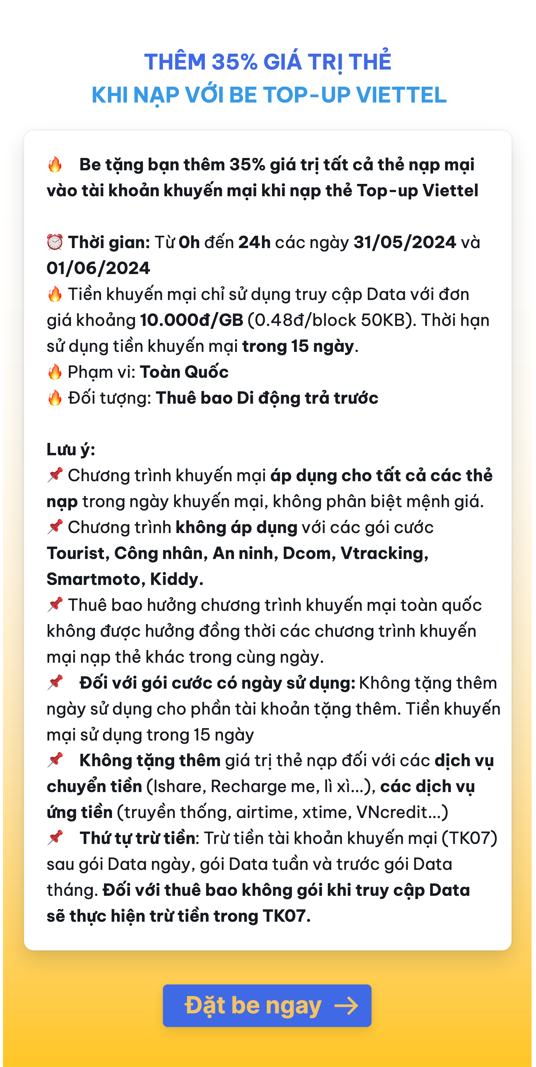 Be tặng thêm 35% khi nạp Top-up Viettel