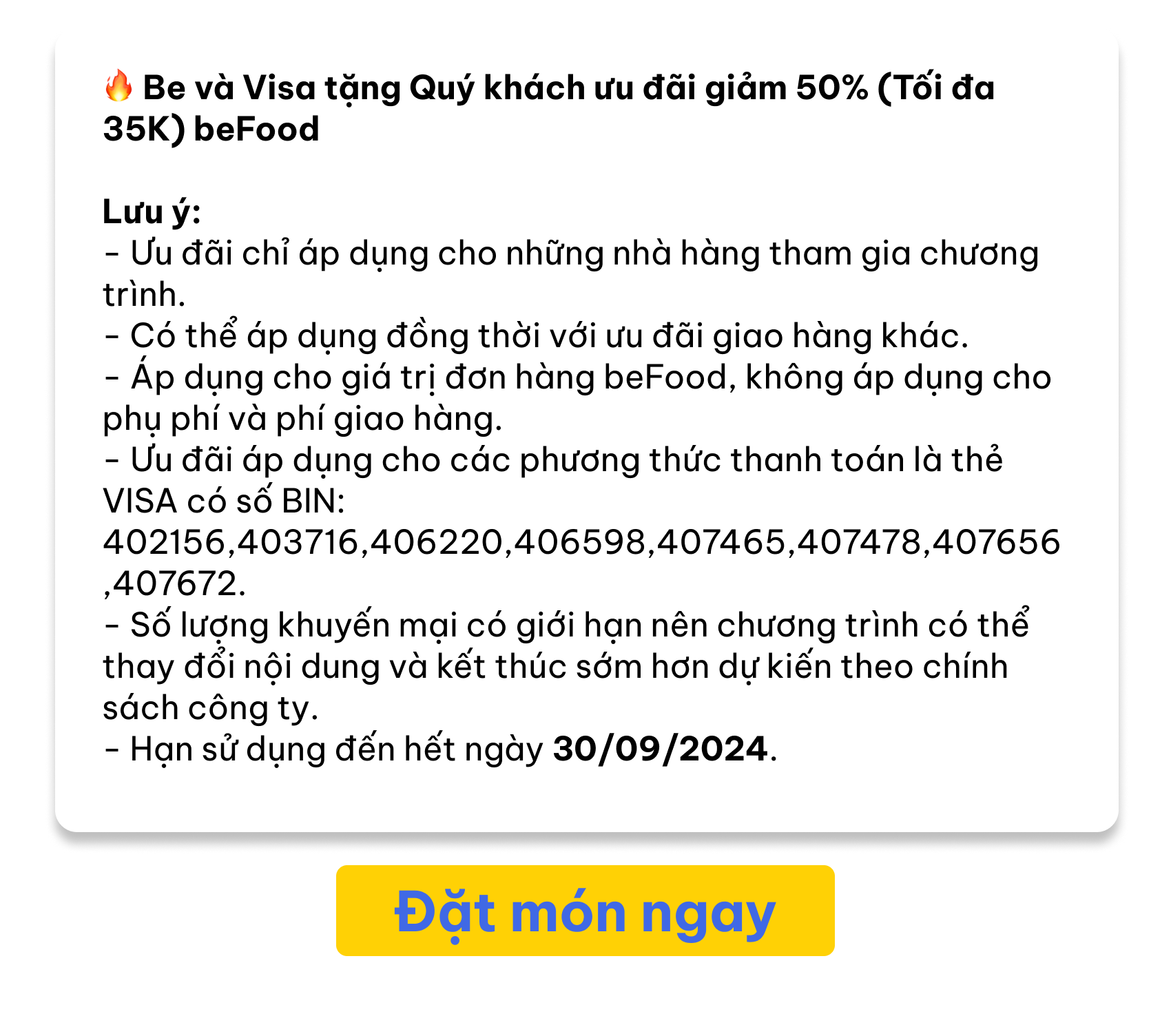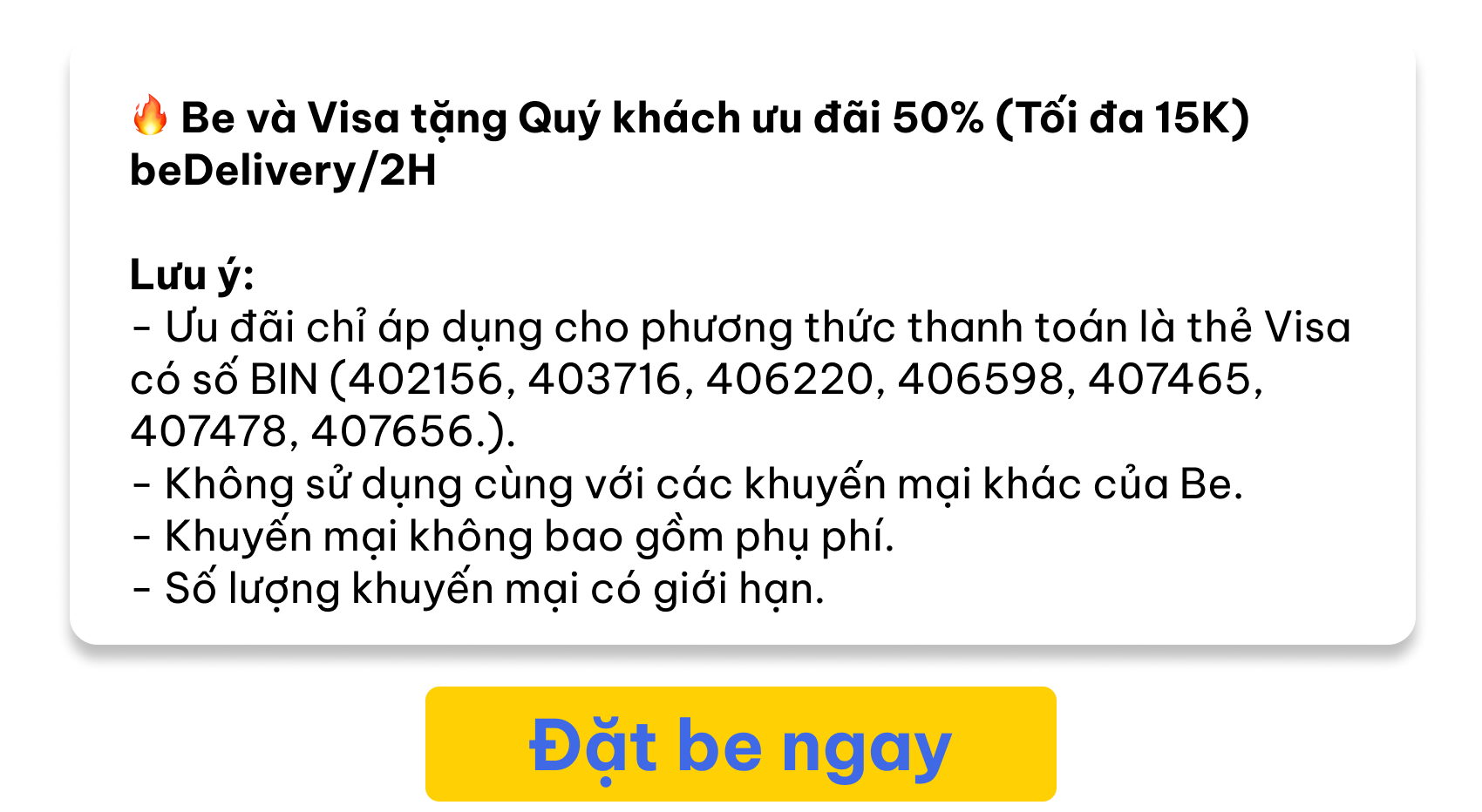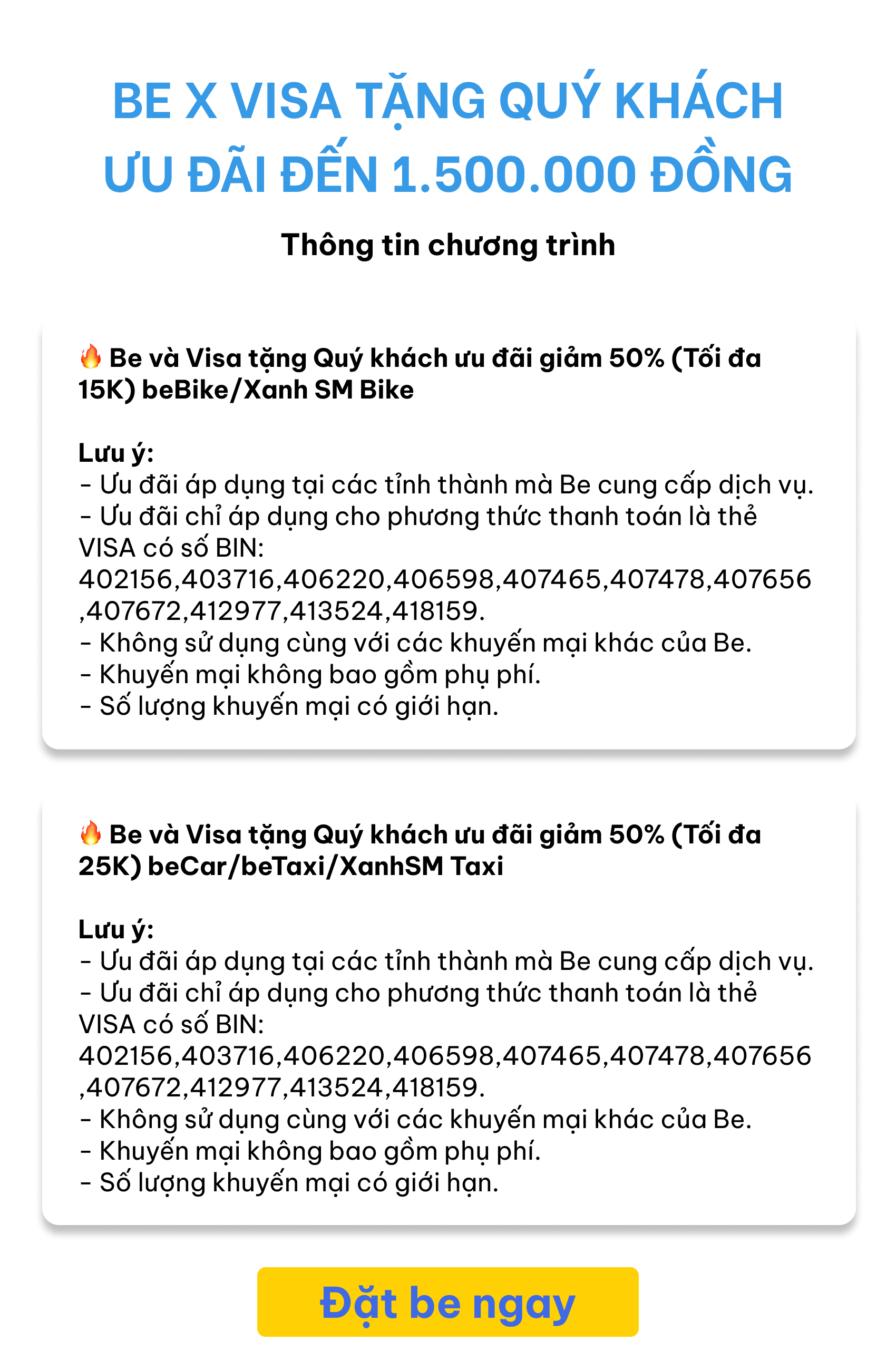 Be và Visa ưu đãi đến 1.150.000 đồng