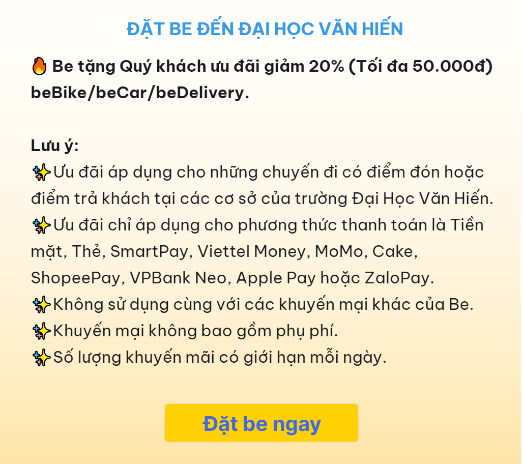 Đặt be đến ĐH Văn Hiến giảm 50K
