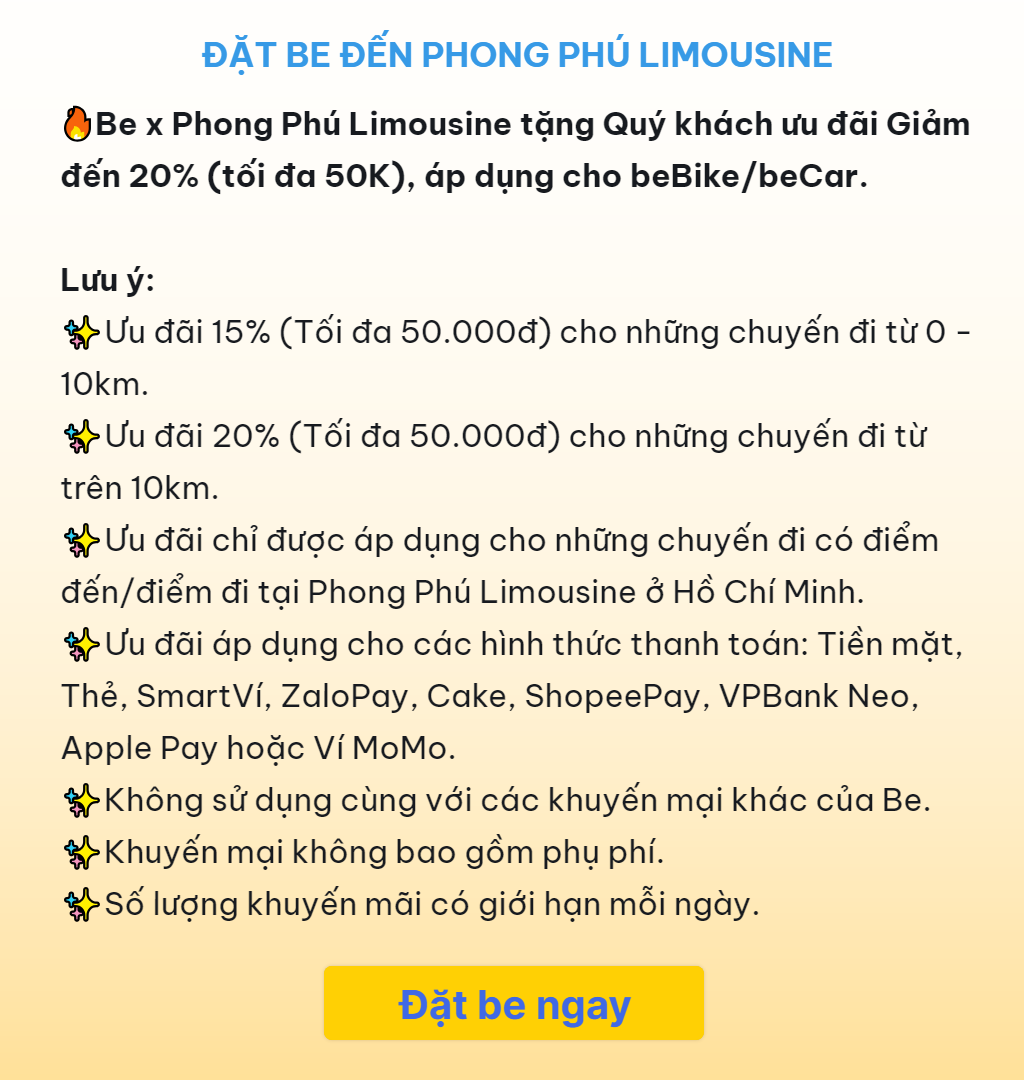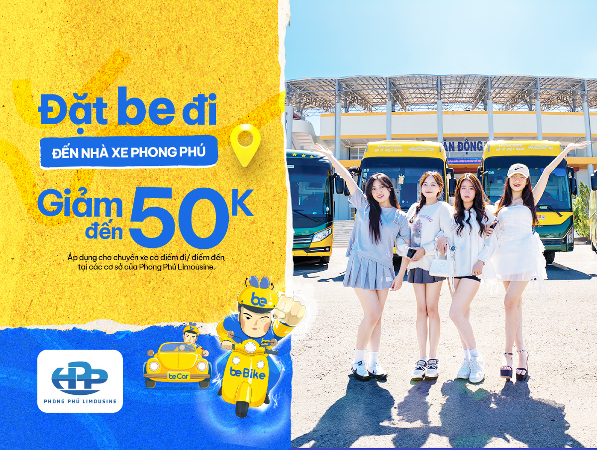 Đặt be đến nhà xe Phong Phú giảm 50K