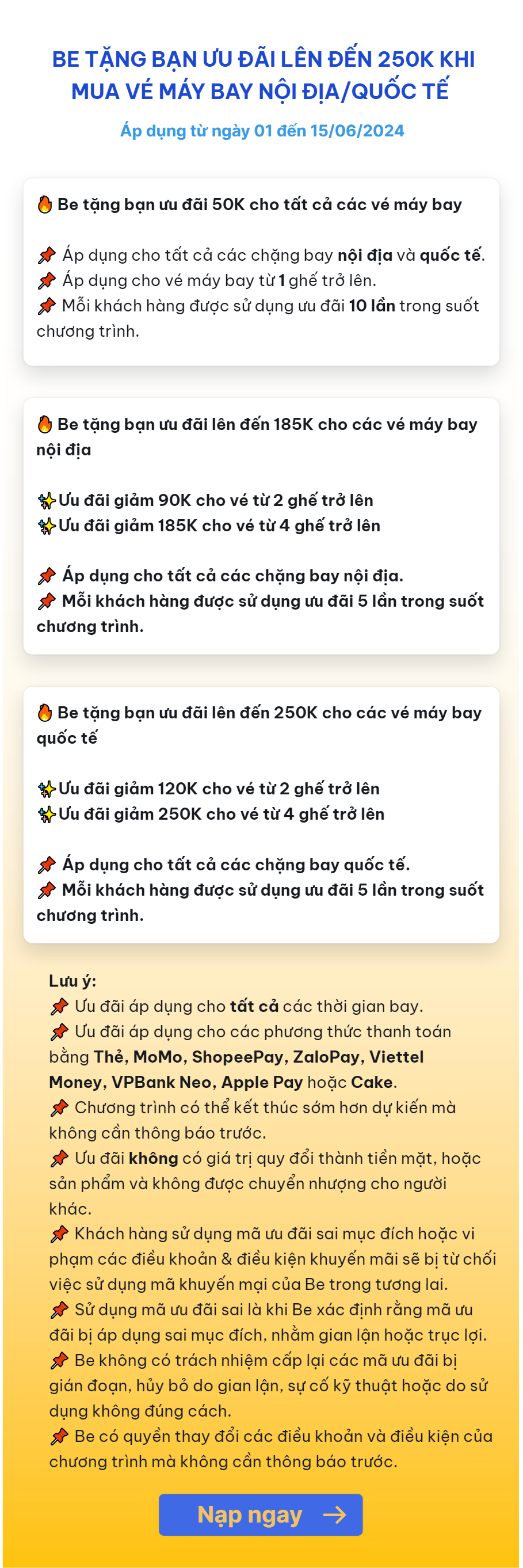 Ưu đãi giảm đến 250K khi đặt BeFlight