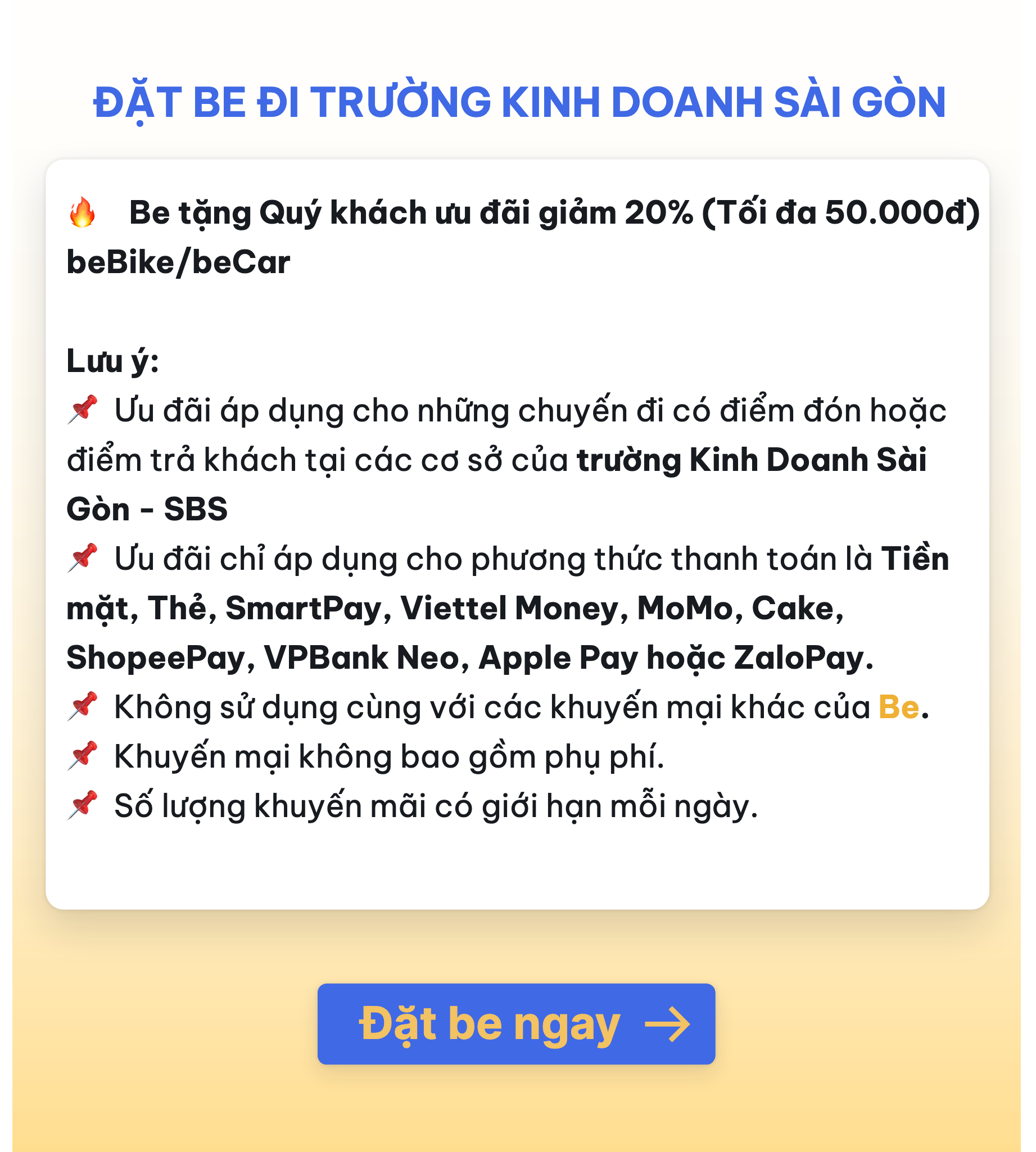 Đặt Be đi Trường Kinh Doanh Sài Gòn
