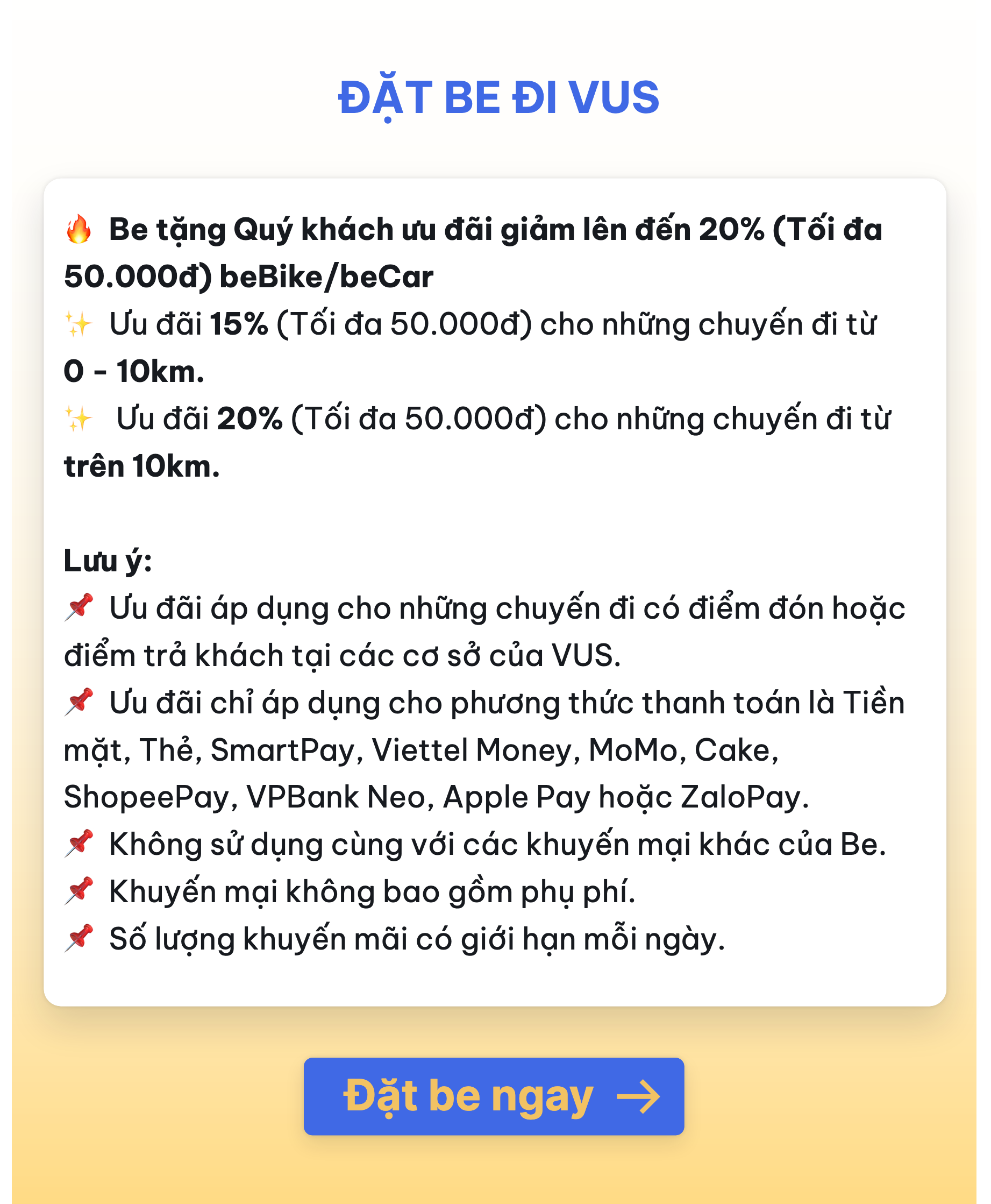 Ưu đãi của Cake dành cho khách hàng Be