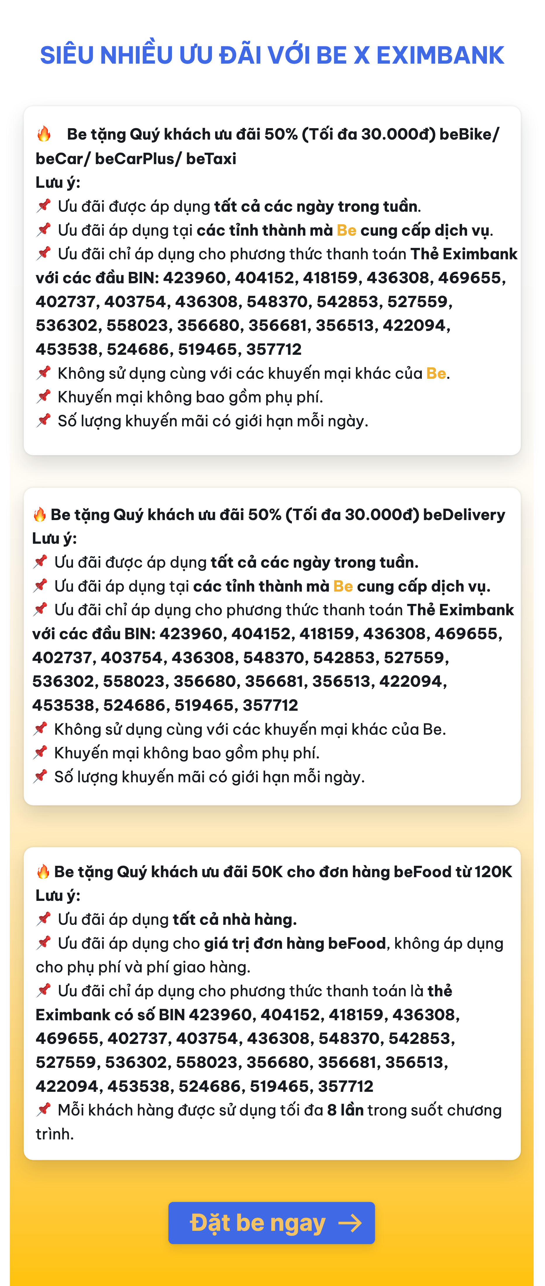 Siêu nhiều ưu đãi cùng Be x Eximbank