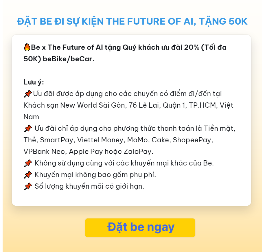 ĐẶT BE ĐI SỰ KIỆN, TẶNG 50k