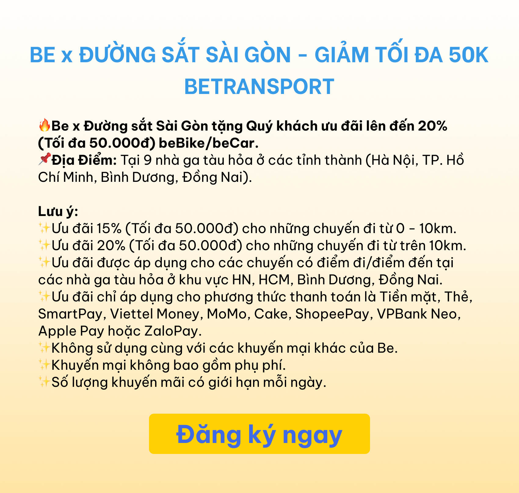 Đặt be đi Đường sắt Sài Gòn, giảm 50K