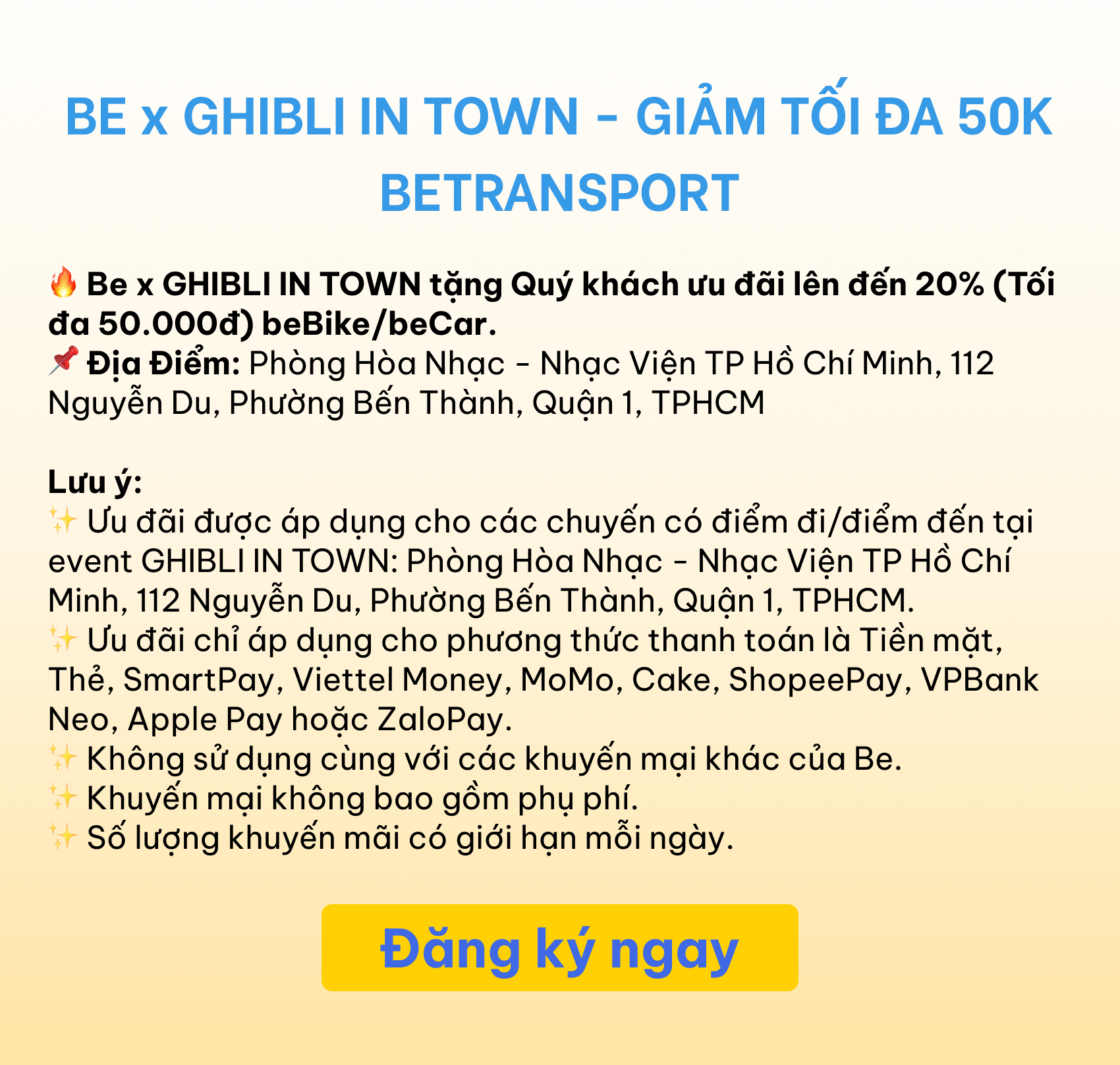 Đặt be đi GHIBLI IN TOWN, giảm 50K