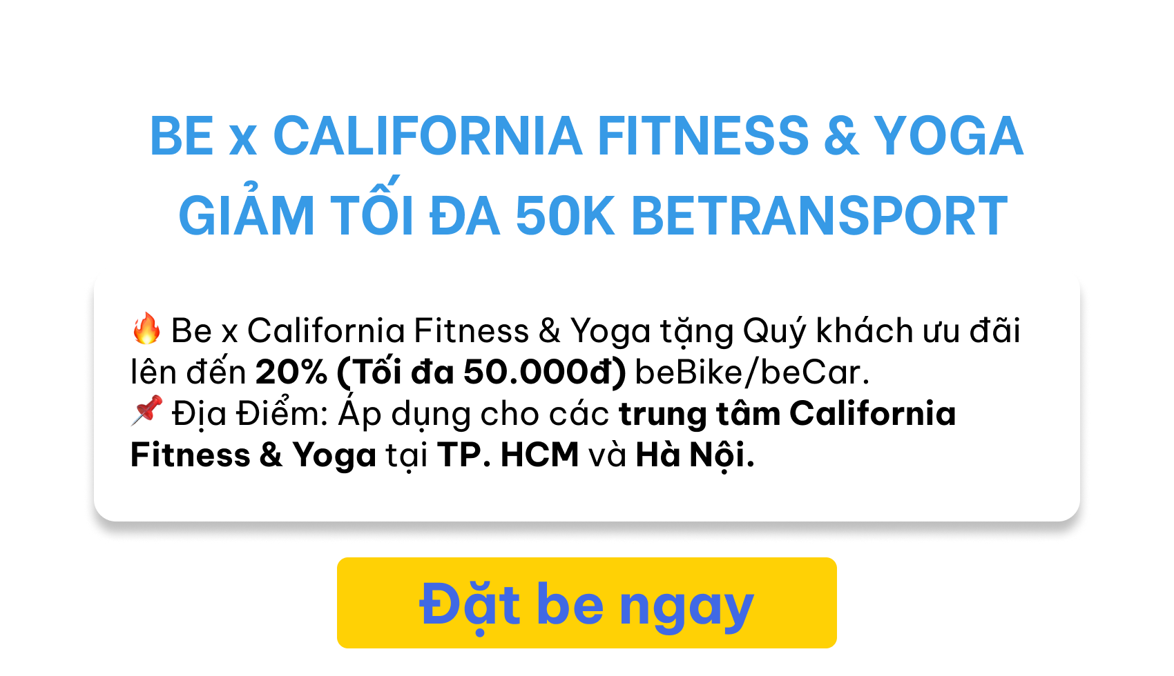Be x California Fitness & Yoga, giảm 50K