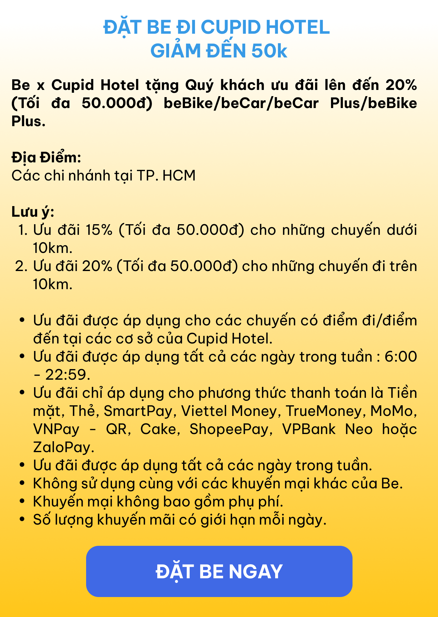 Be x Cupid Hotel tặng bạn ưu đãi hấp dẫn
