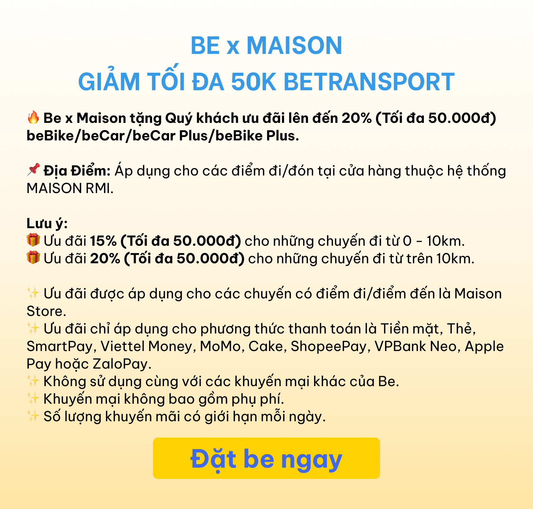 Đặt be đi Maison, giảm 50K
