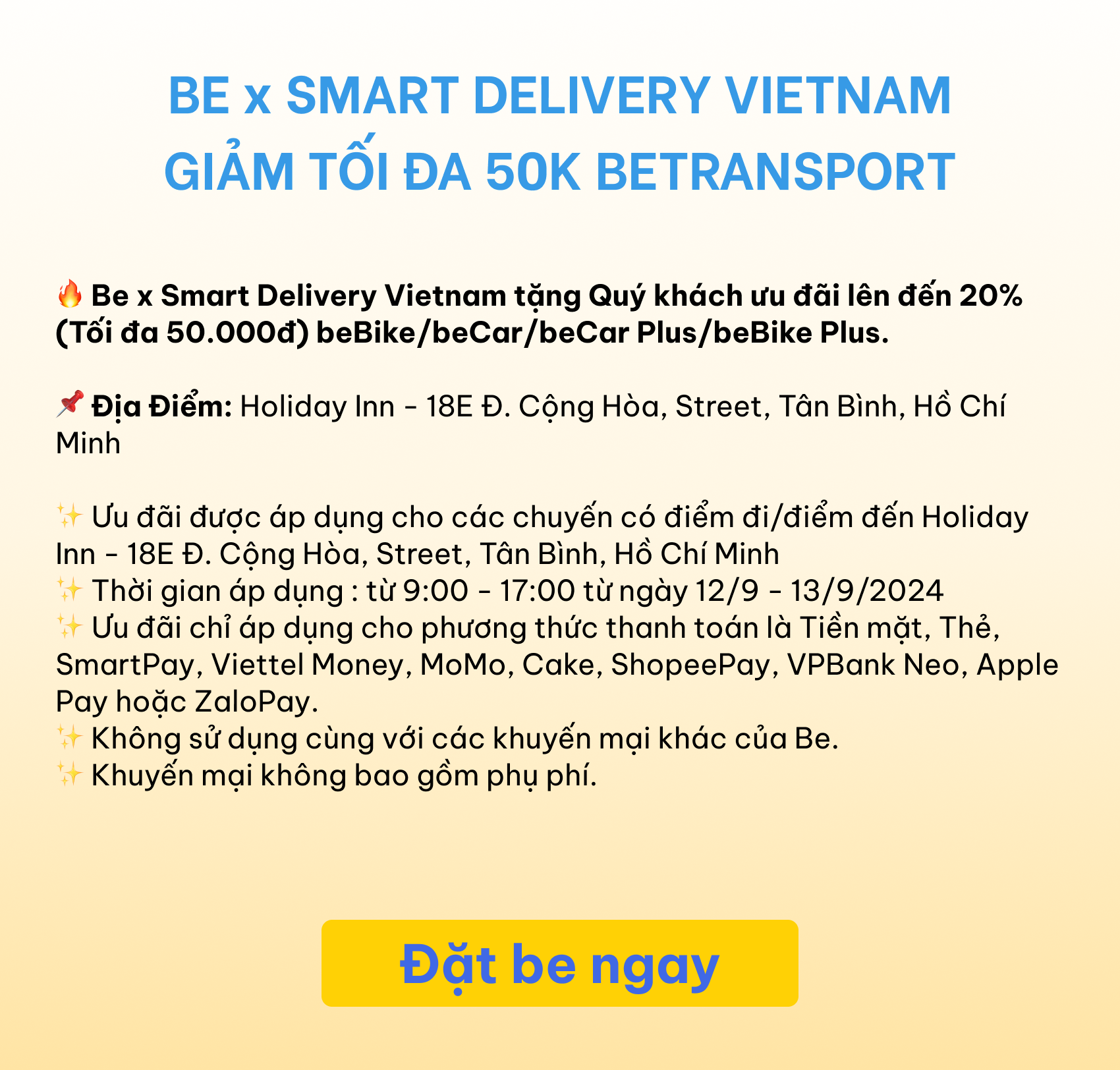 Đặt be đi Smart Delivery VN, giảm 50k