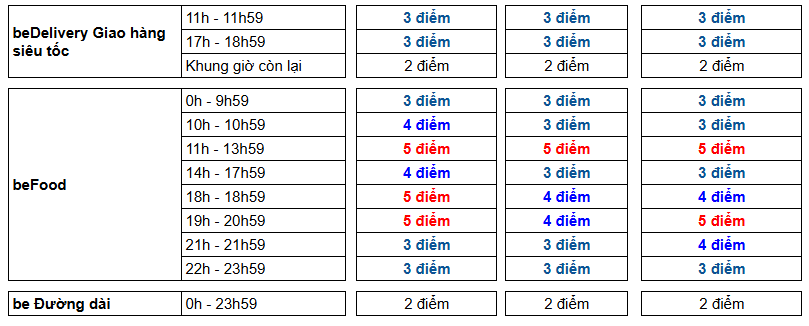- beCar Đường Dài, beCar Thuê: +2 điểm (tất cả khung giờ từ Thứ 2 – Chủ Nhật)