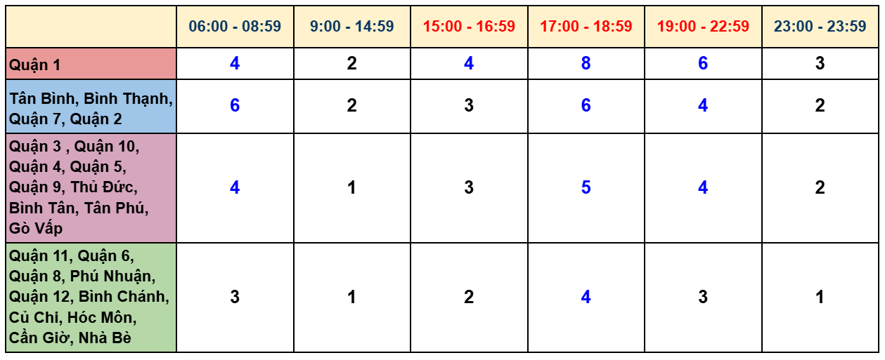 (*) Khung giờ được tính vào thời điểm phát cuốc