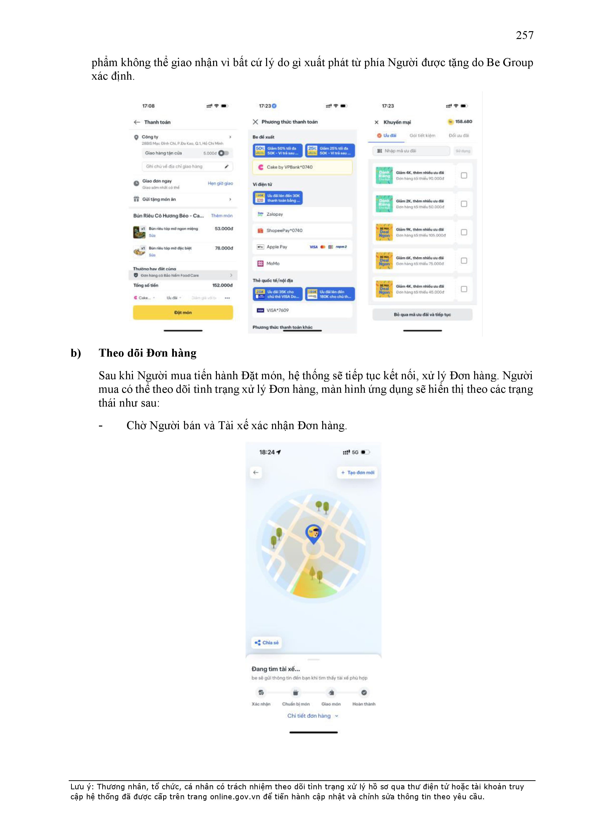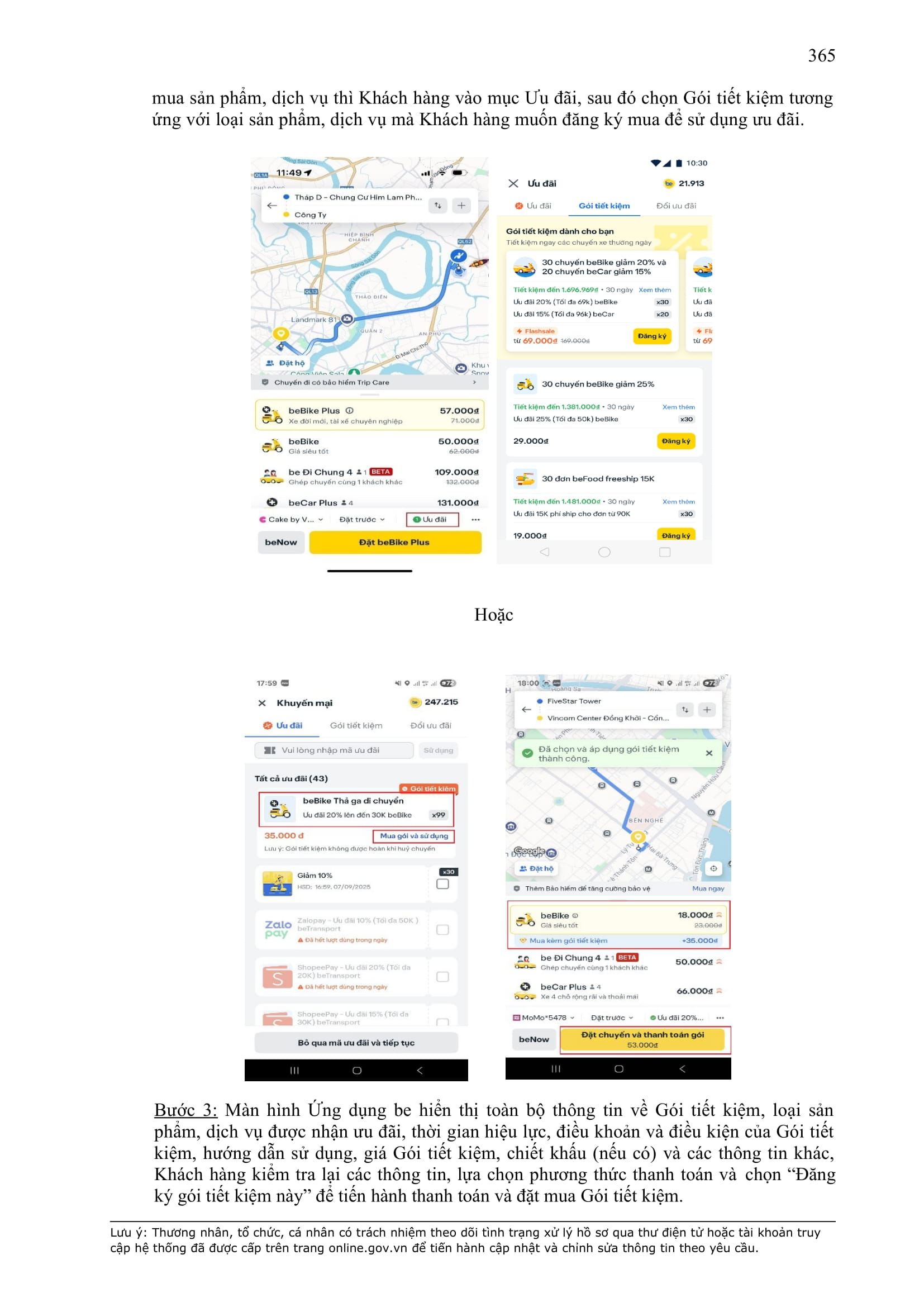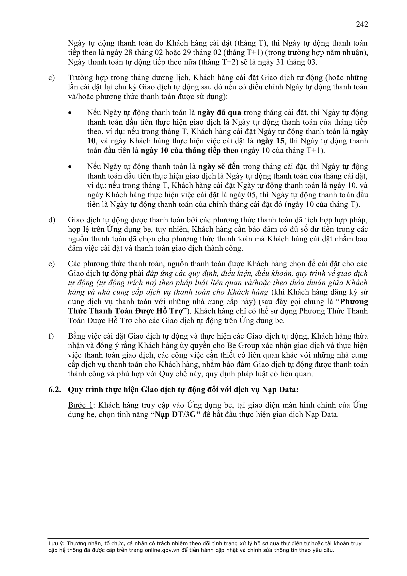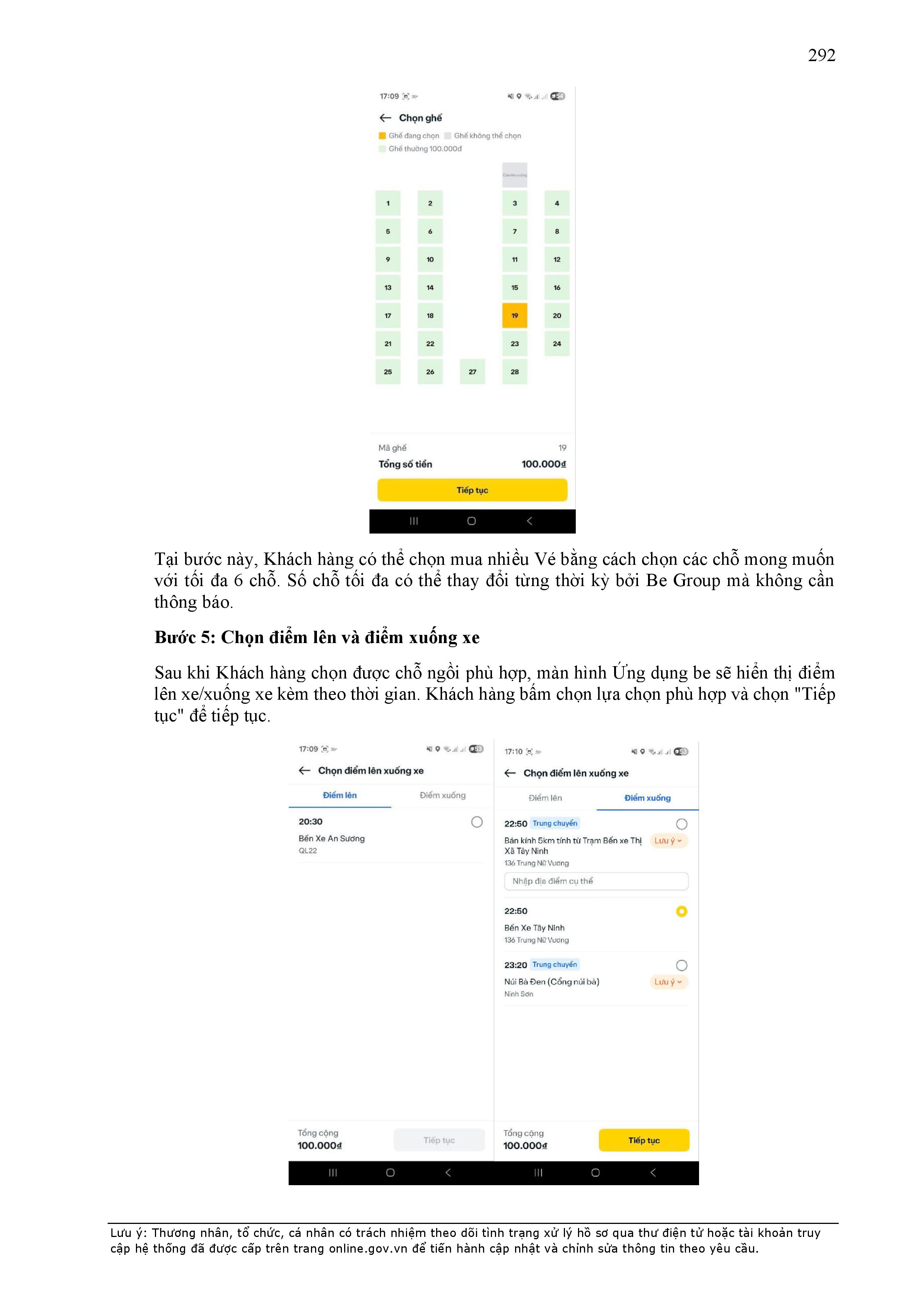 - Thời điểm thanh toán: Thanh toán trước hoặc thanh toán ngay khi kết thúc chuyến xe, tùy thuộc vào phương thức thanh toán đối với từng sản phẩm/dịch vụ được công bố trên Ứng dụng be.