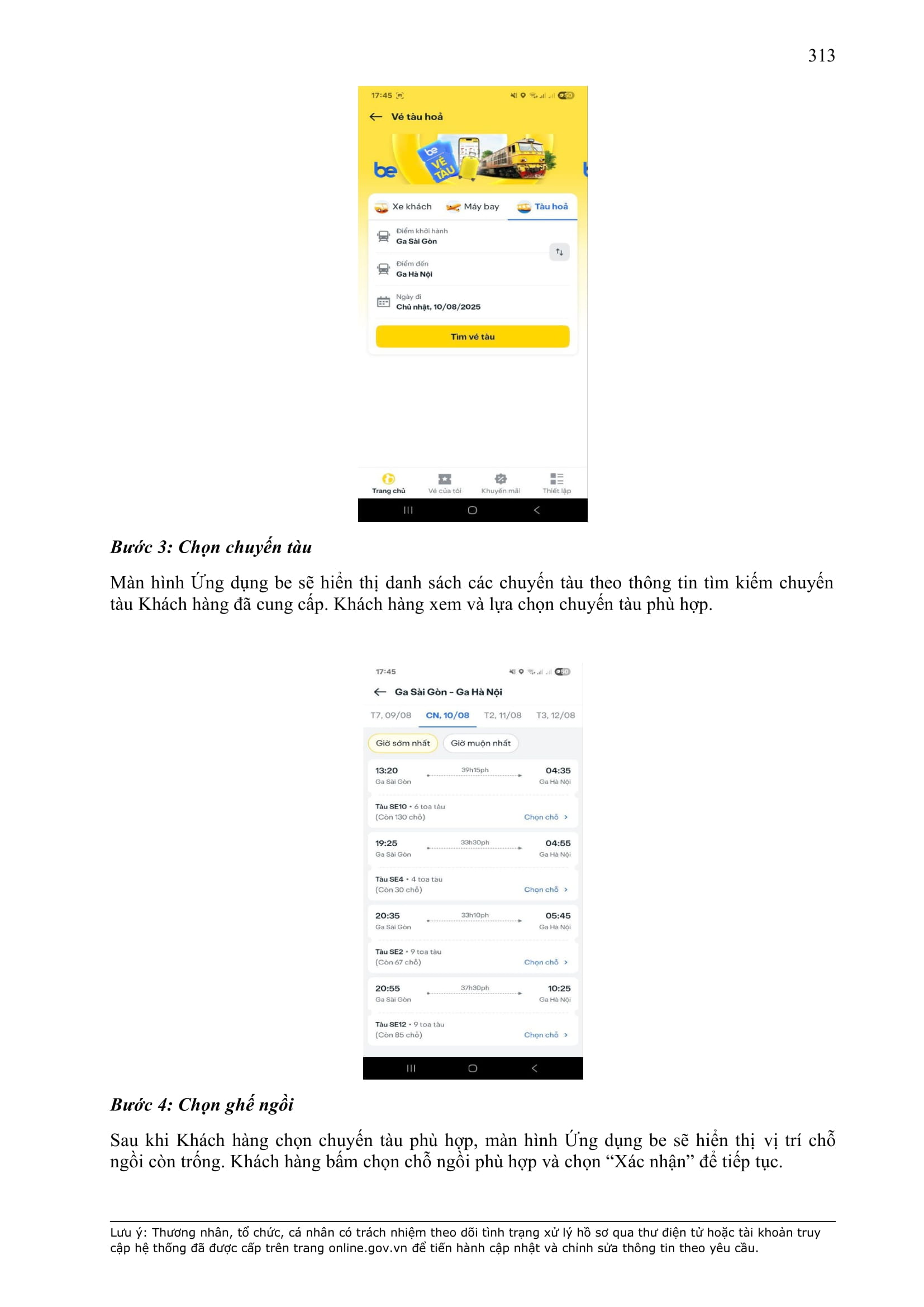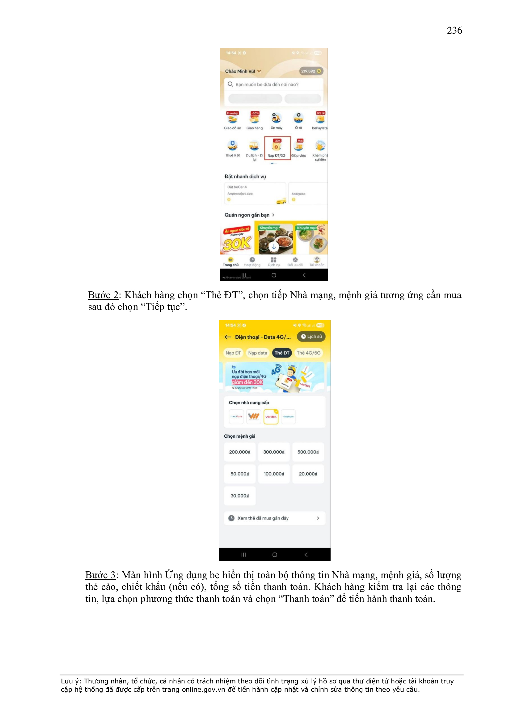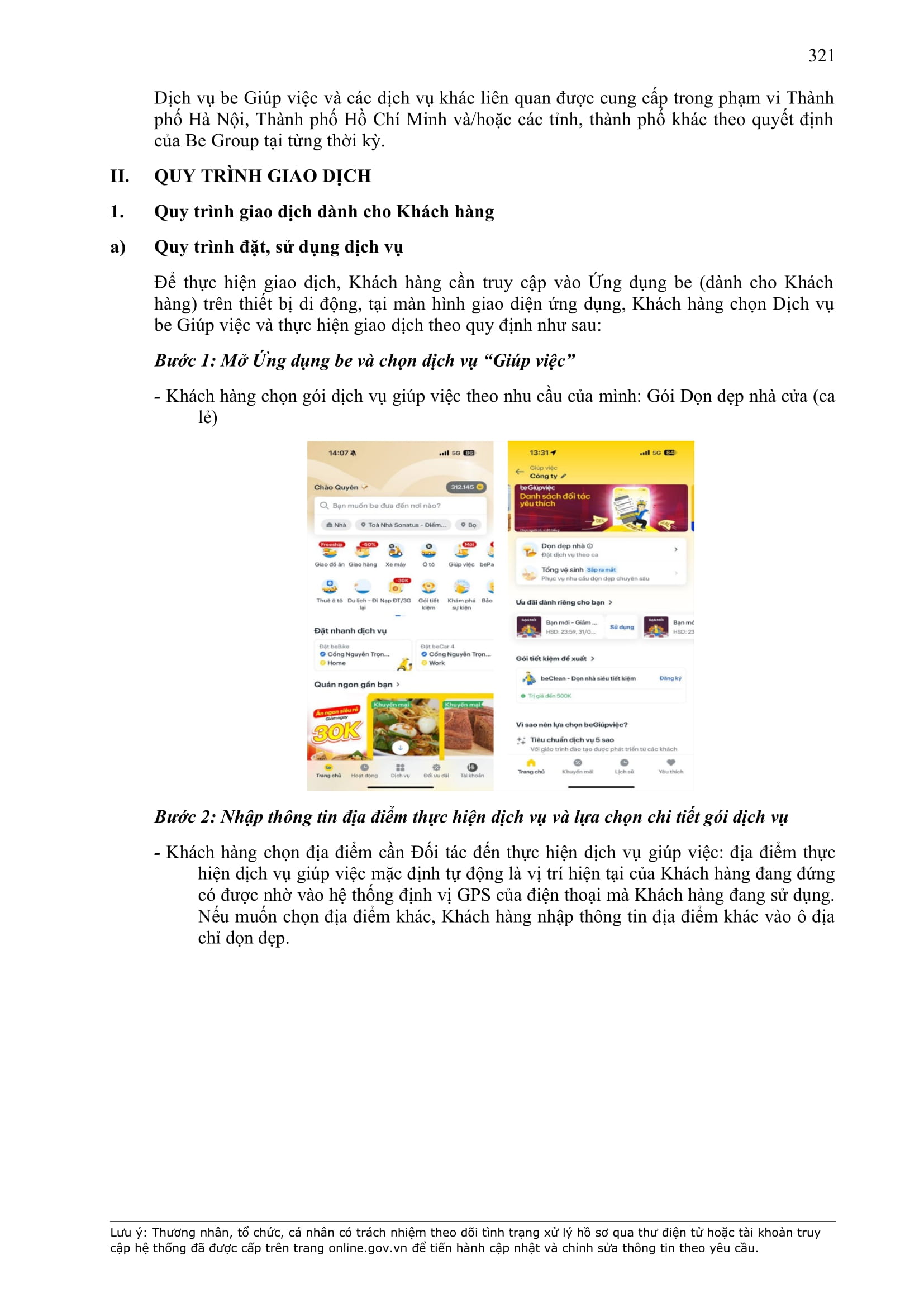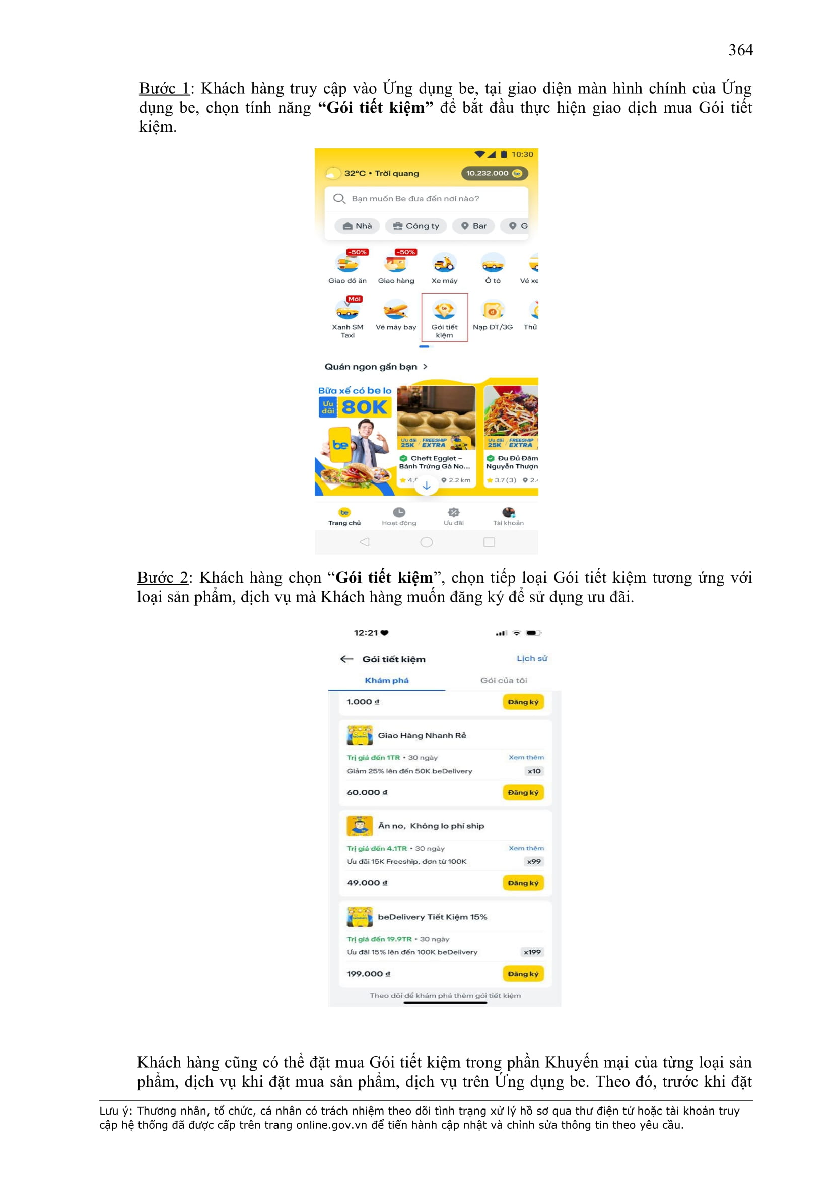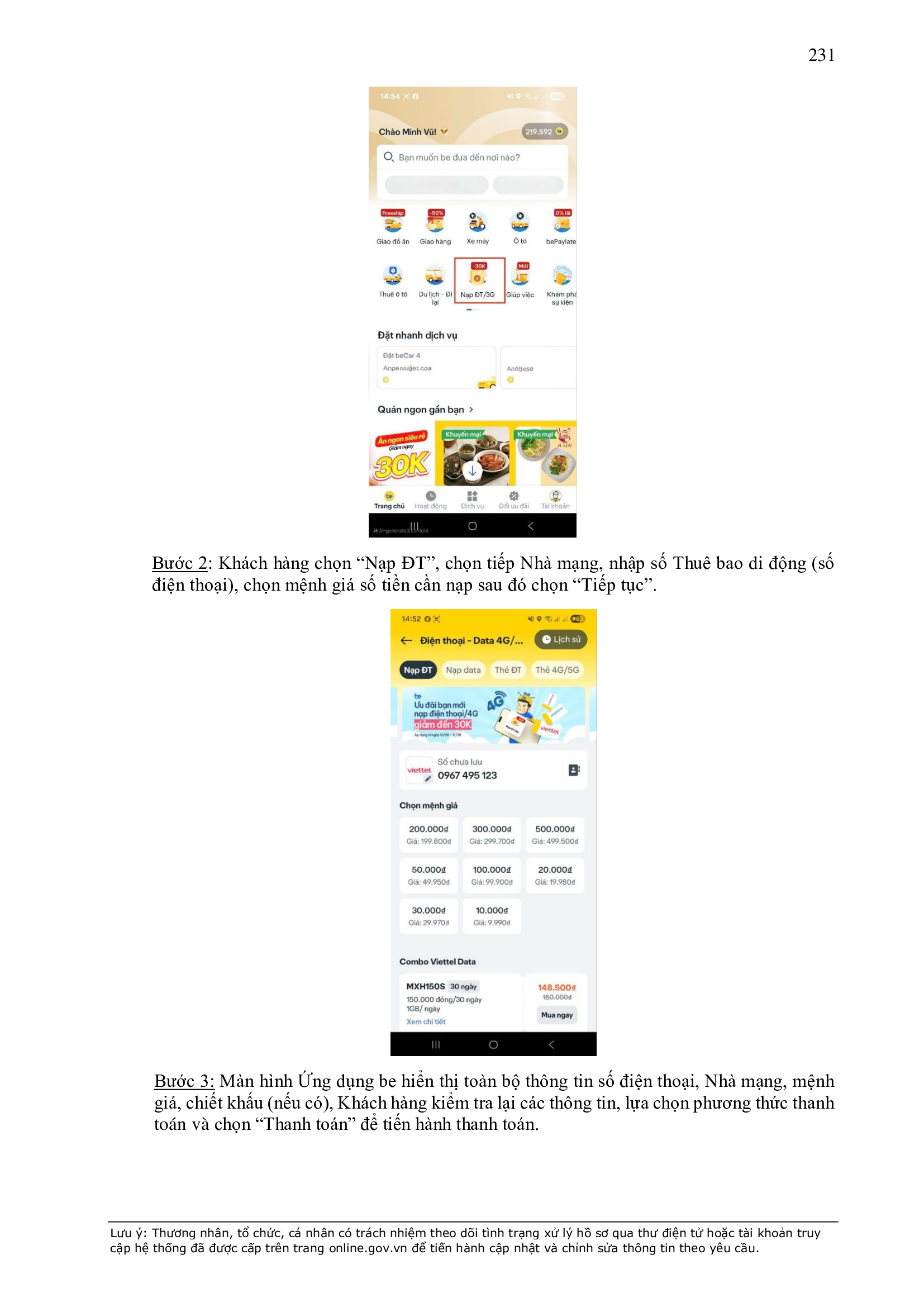 - Thời điểm thanh toán: Thanh toán trước hoặc thanh toán ngay khi kết thúc chuyến xe, tùy thuộc vào phương thức thanh toán đối với từng sản phẩm/dịch vụ được công bố trên Ứng dụng be.