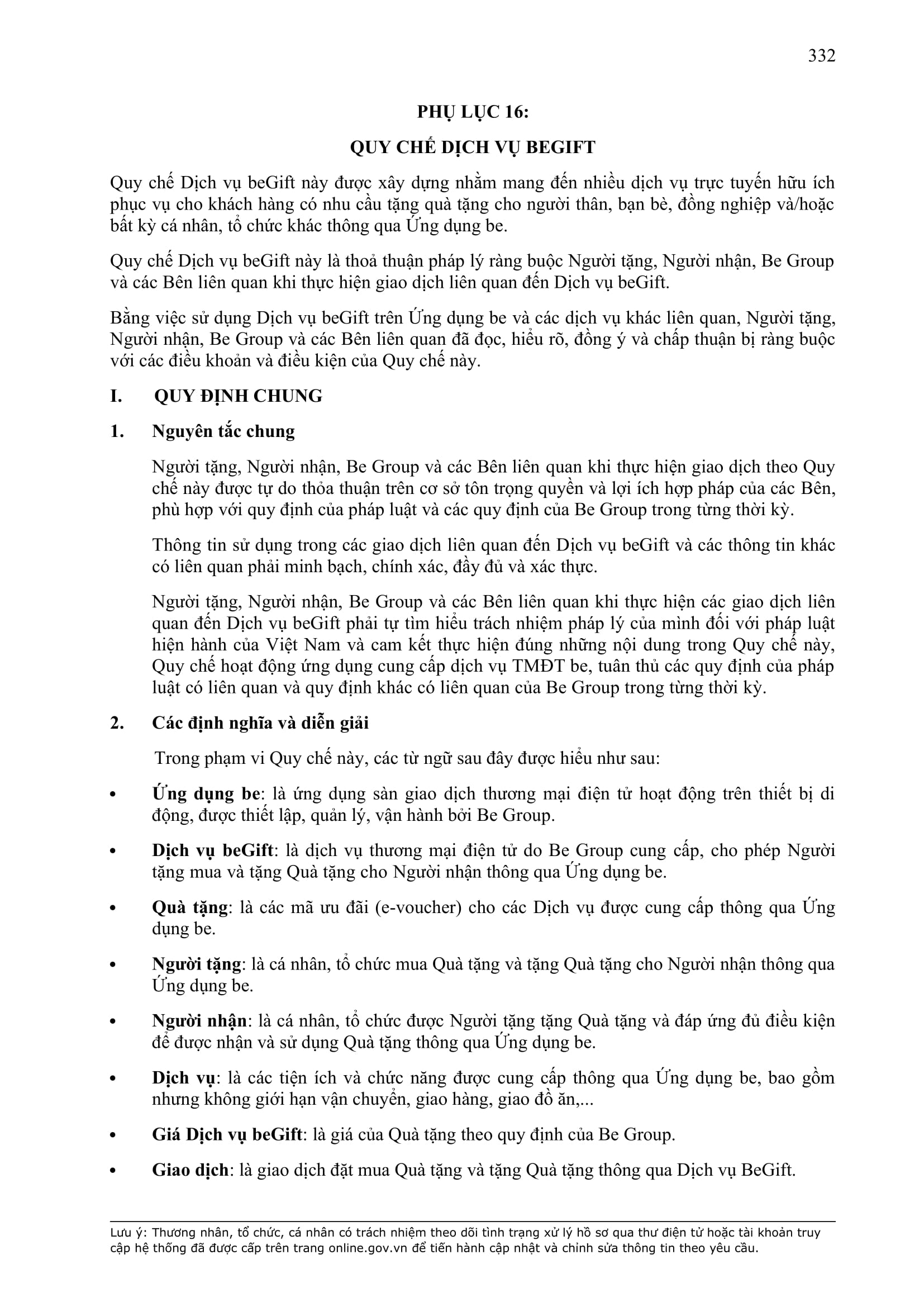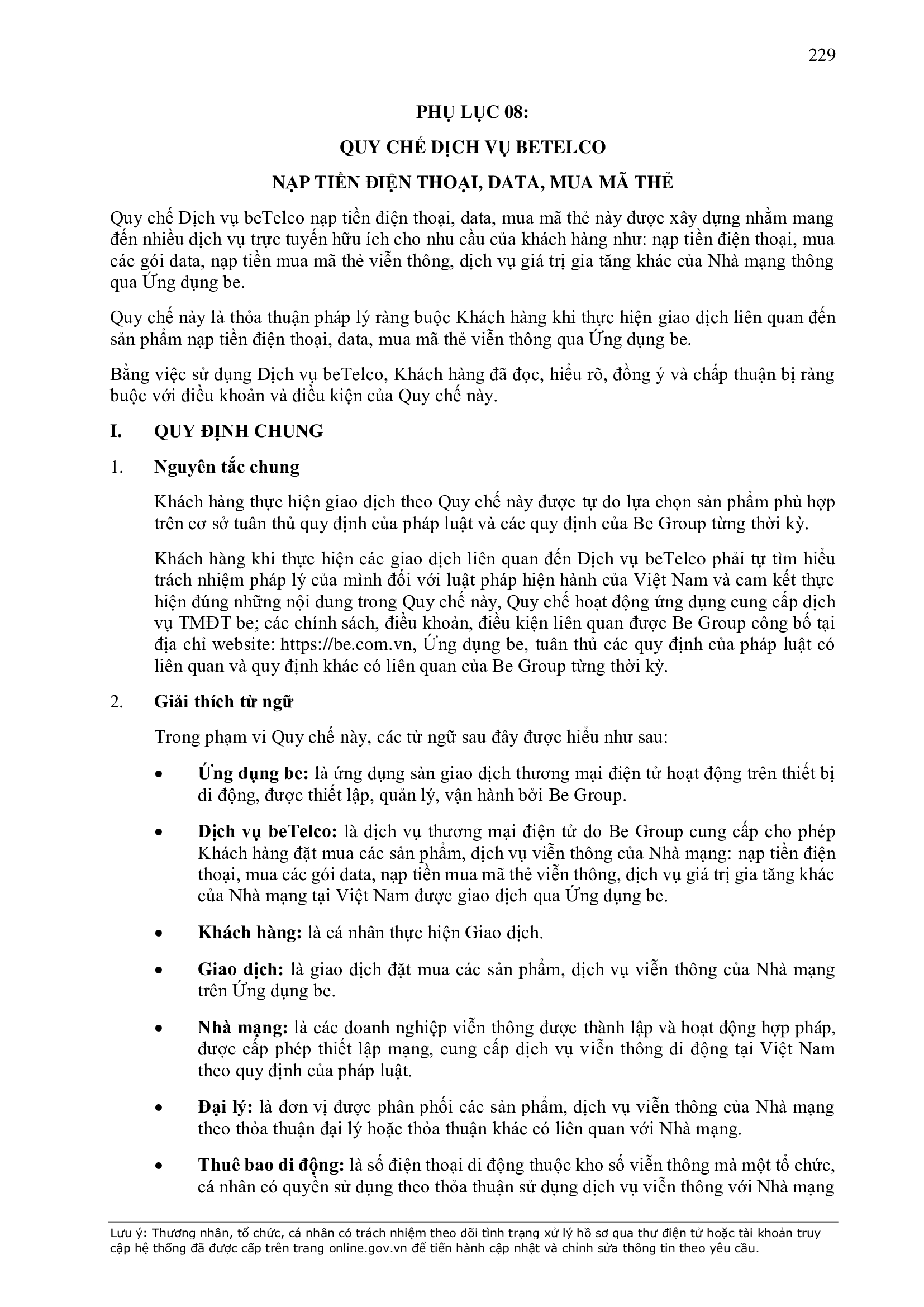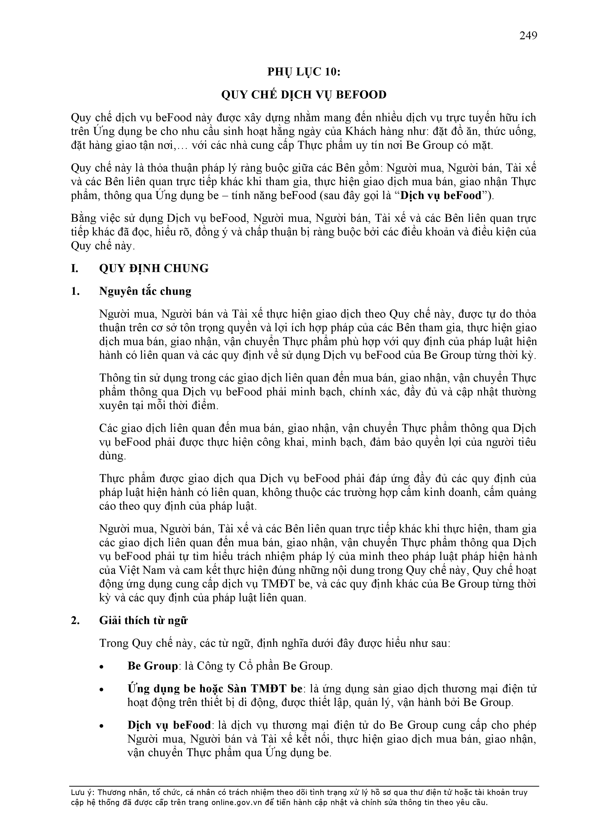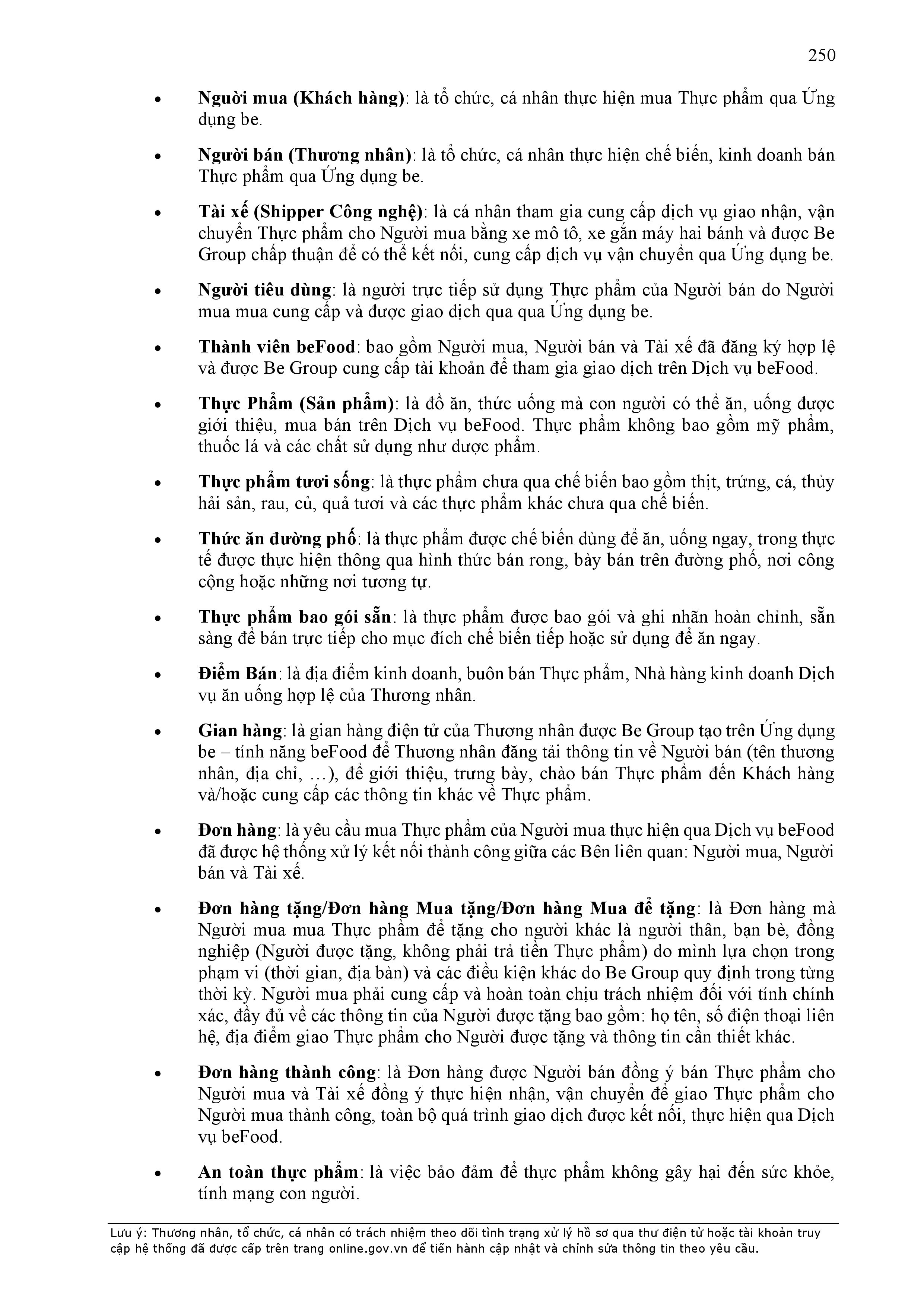 b) “Ứng dụng Be” có nghĩa là ứng dụng trên thiết bị di động cung cấp dịch vụ thương mại điện tử trong lĩnh vực giao thông vận tải được thiết lập, quản lý và vận hành bởi BE GROUP.
