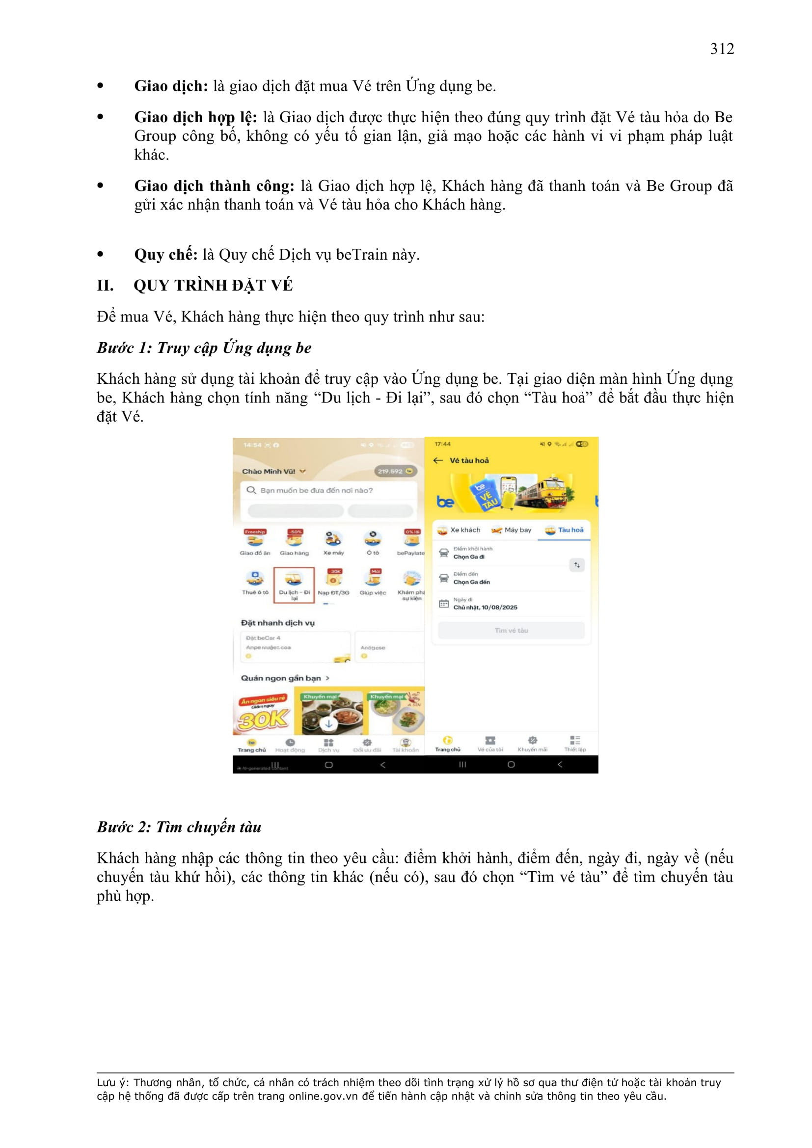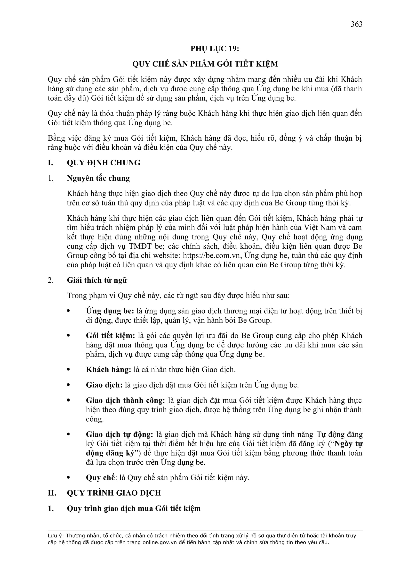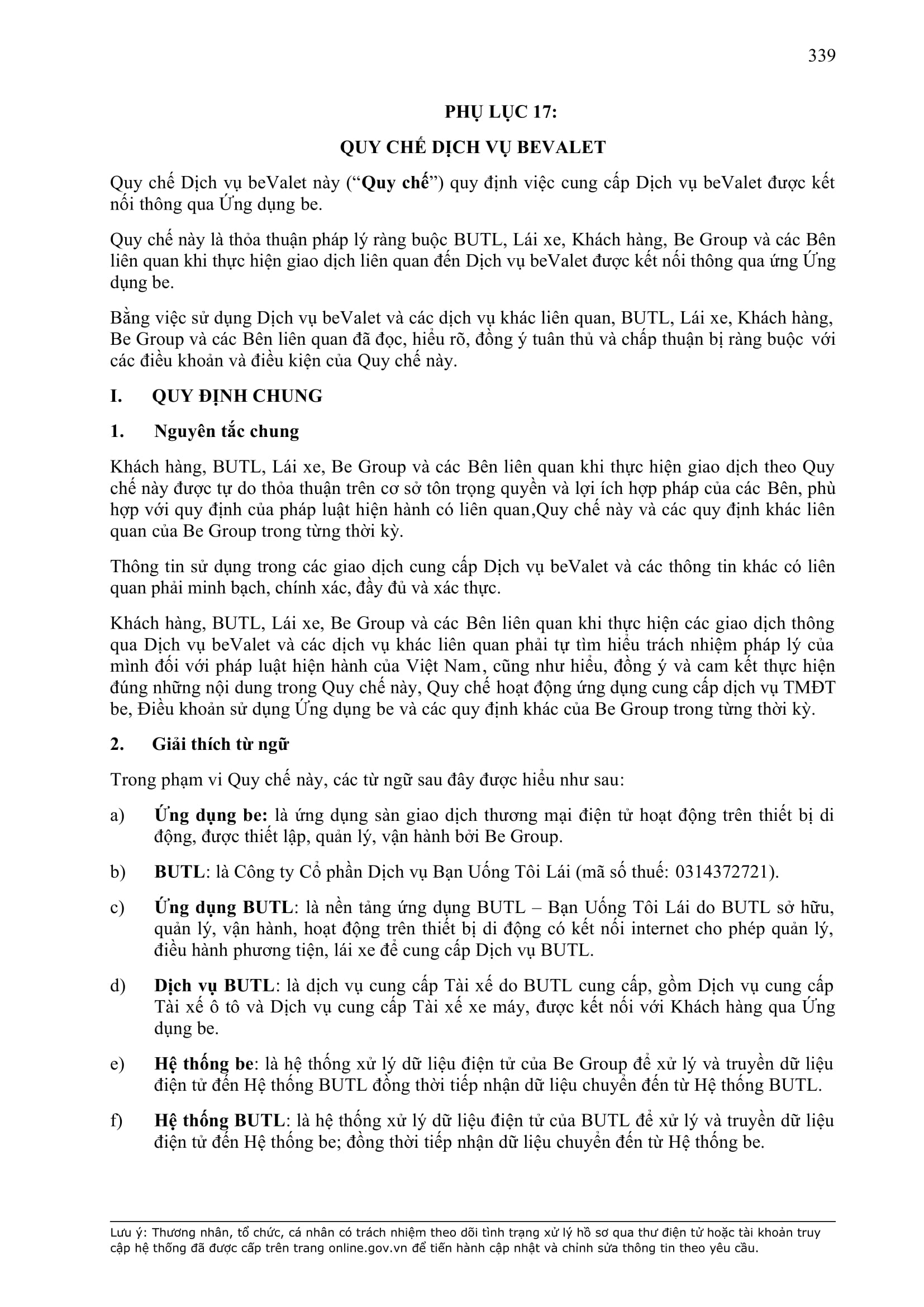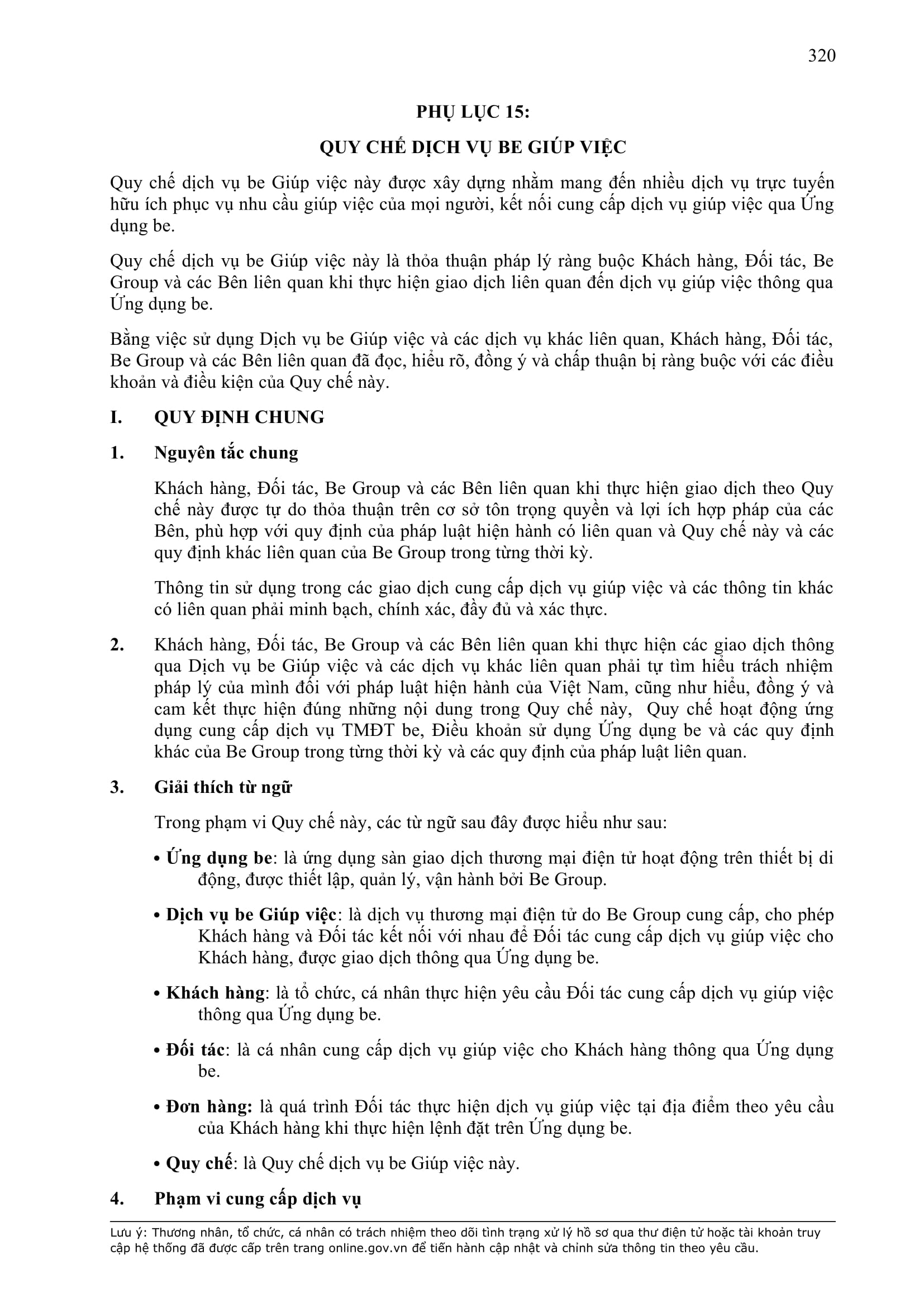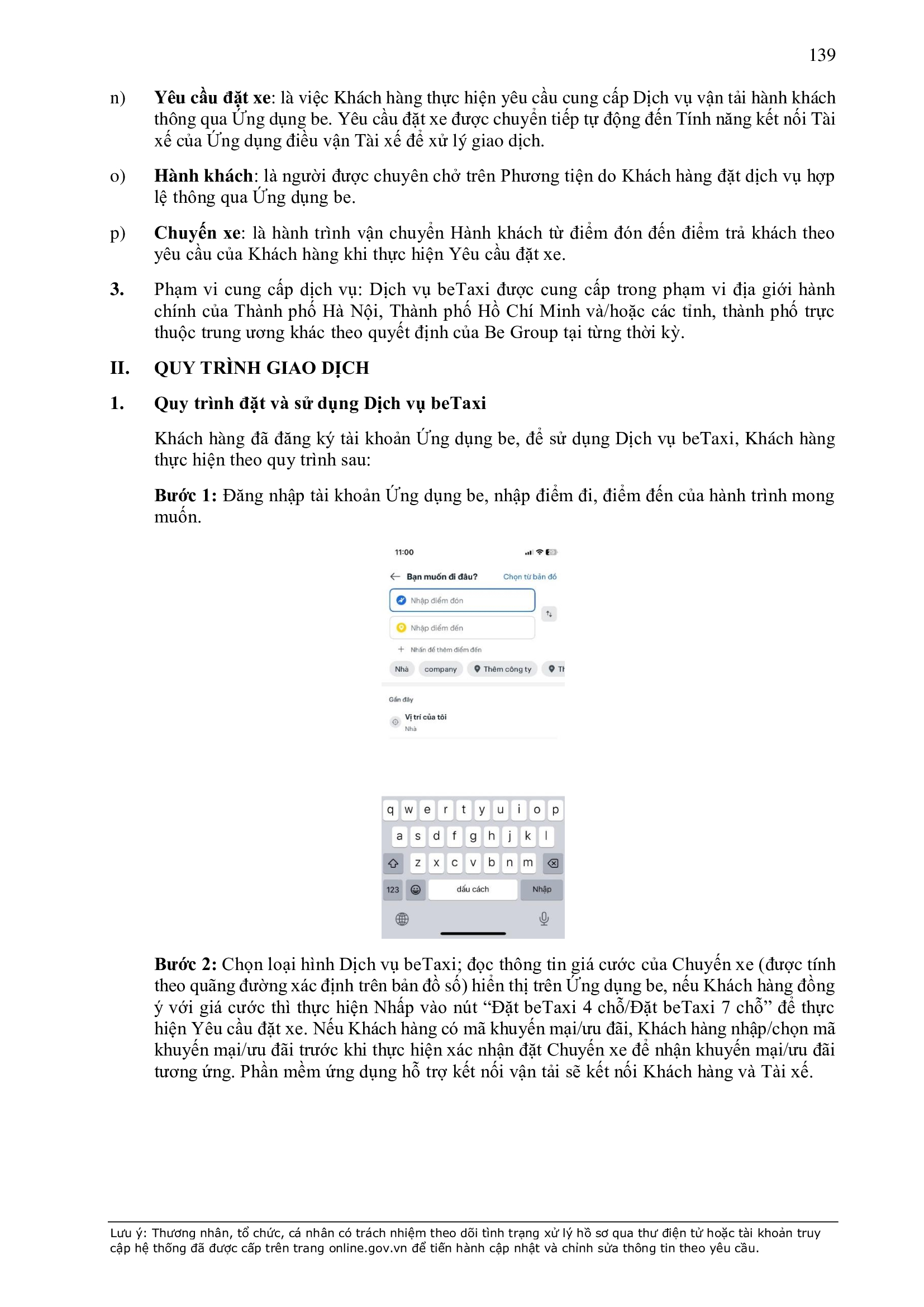 b) “Ứng dụng Be” có nghĩa là ứng dụng trên thiết bị di động cung cấp dịch vụ thương mại điện tử trong lĩnh vực giao thông vận tải được thiết lập, quản lý và vận hành bởi BE GROUP.
