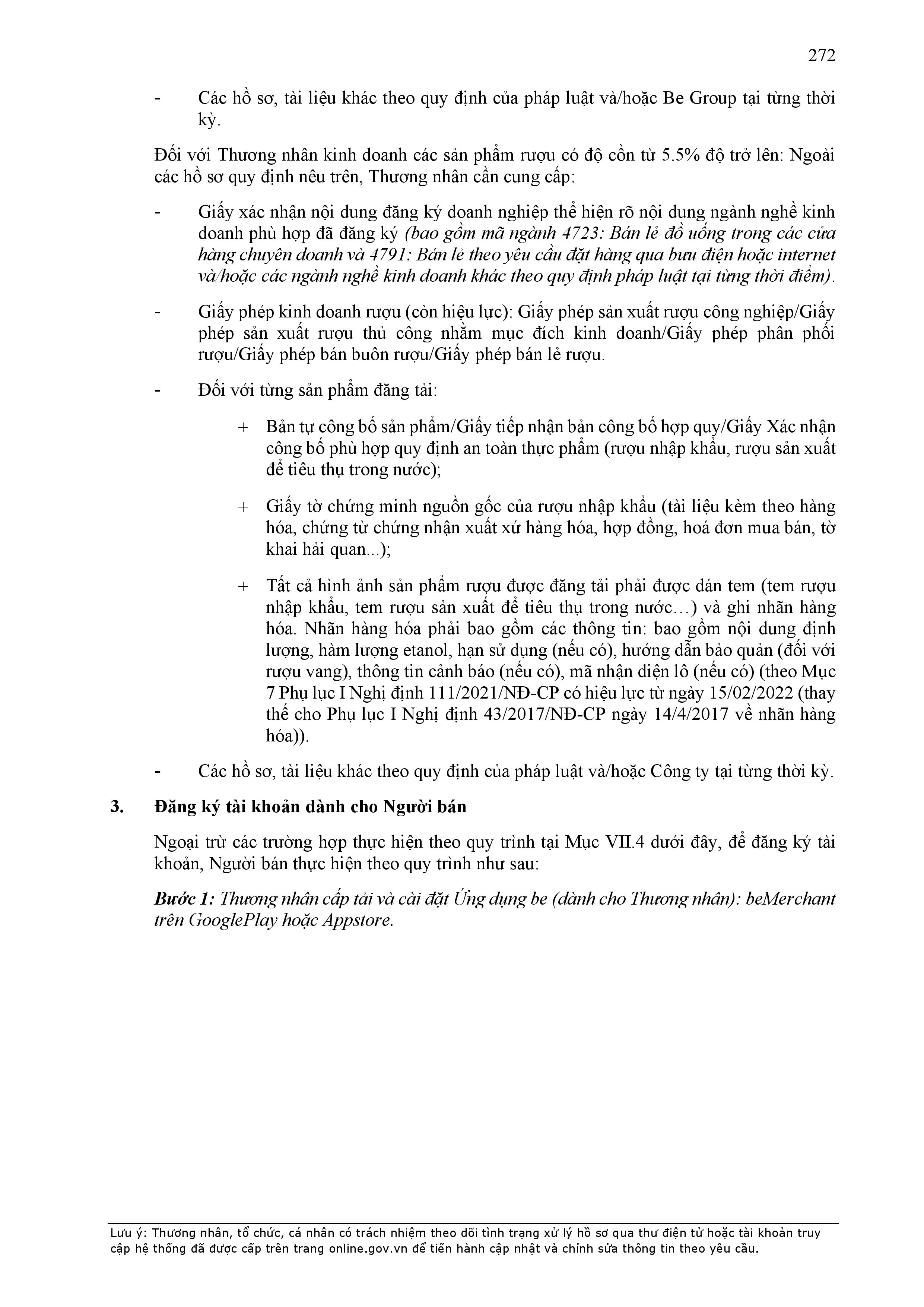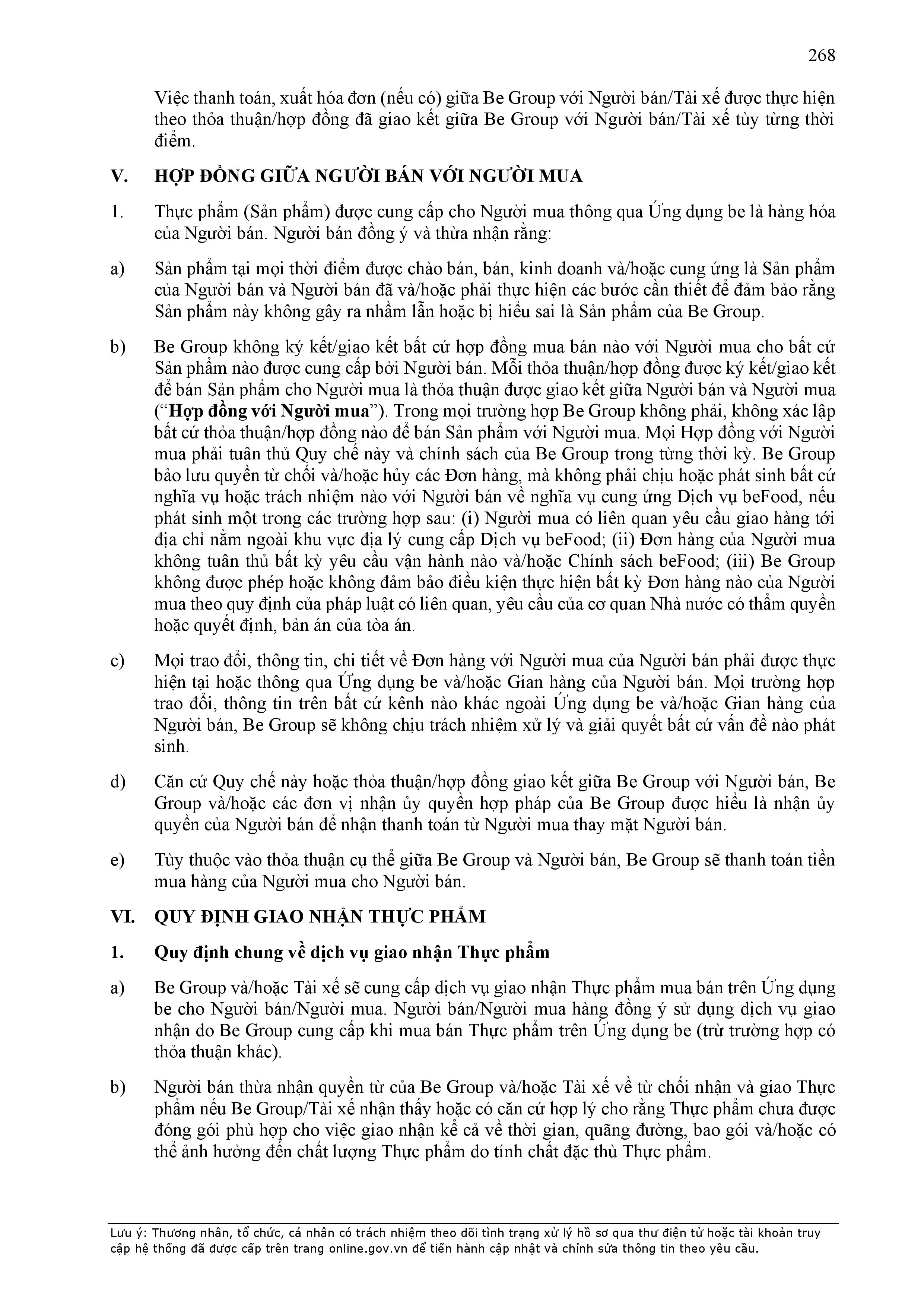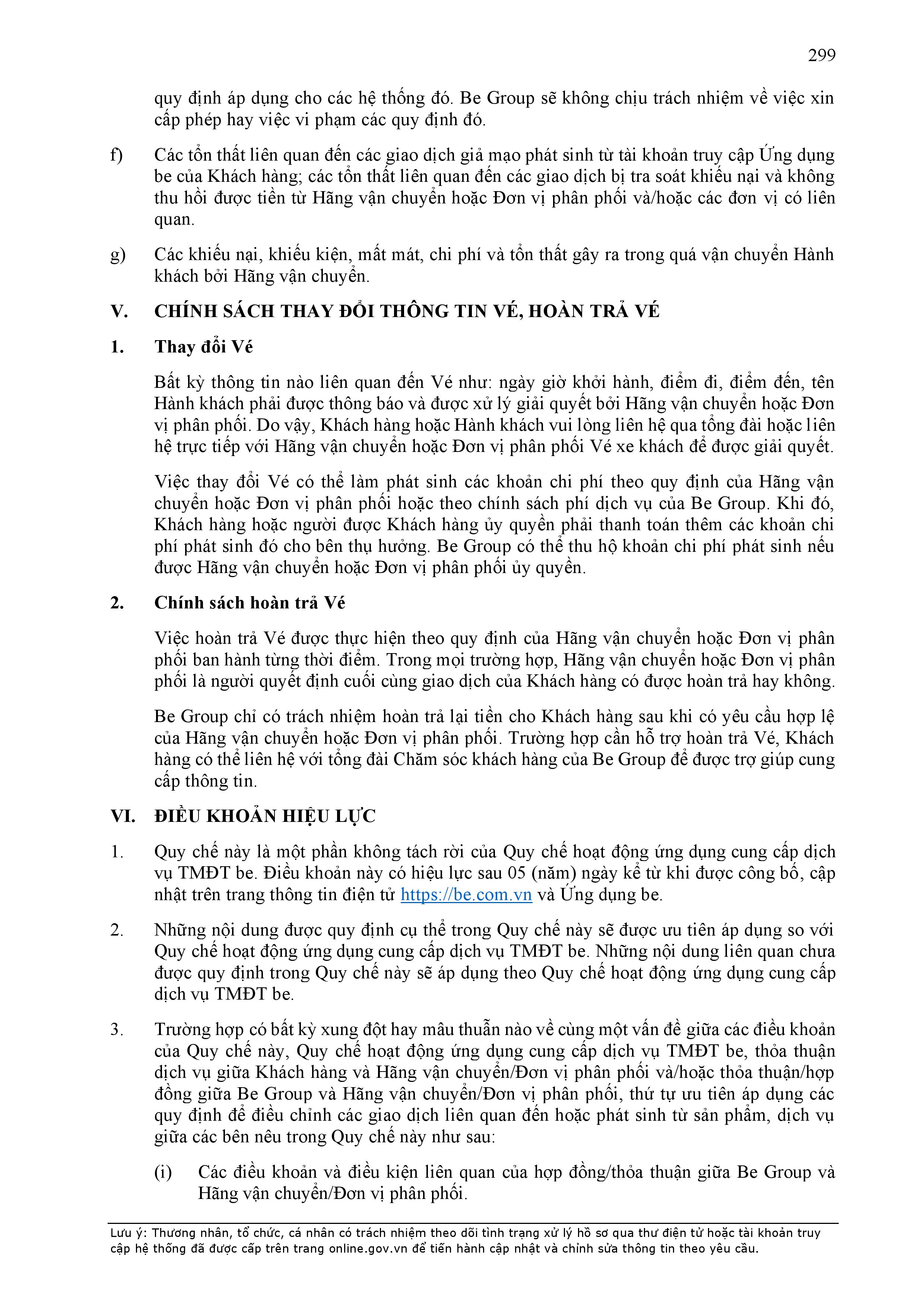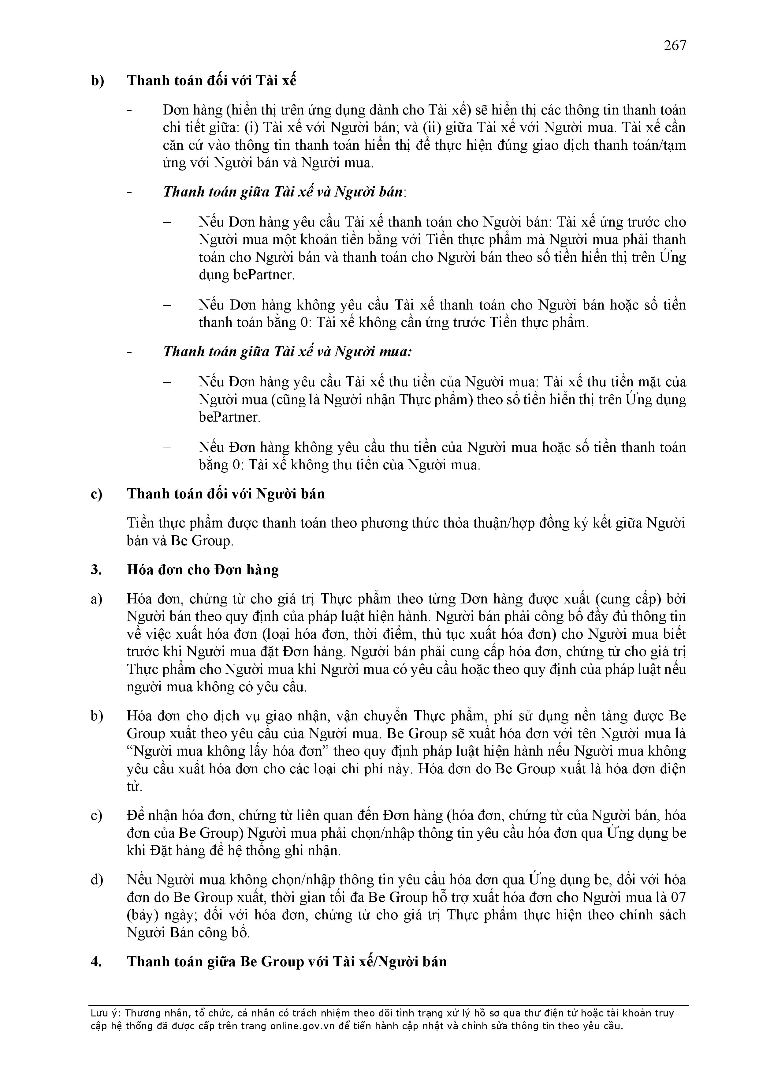 - Điều khoản cụ thể này quy định một số thông tin tối thiểu theo quy định của pháp luật đối với Hợp Đồng và sẽ được hiển thị trên Ứng dụng be, bao gồm: