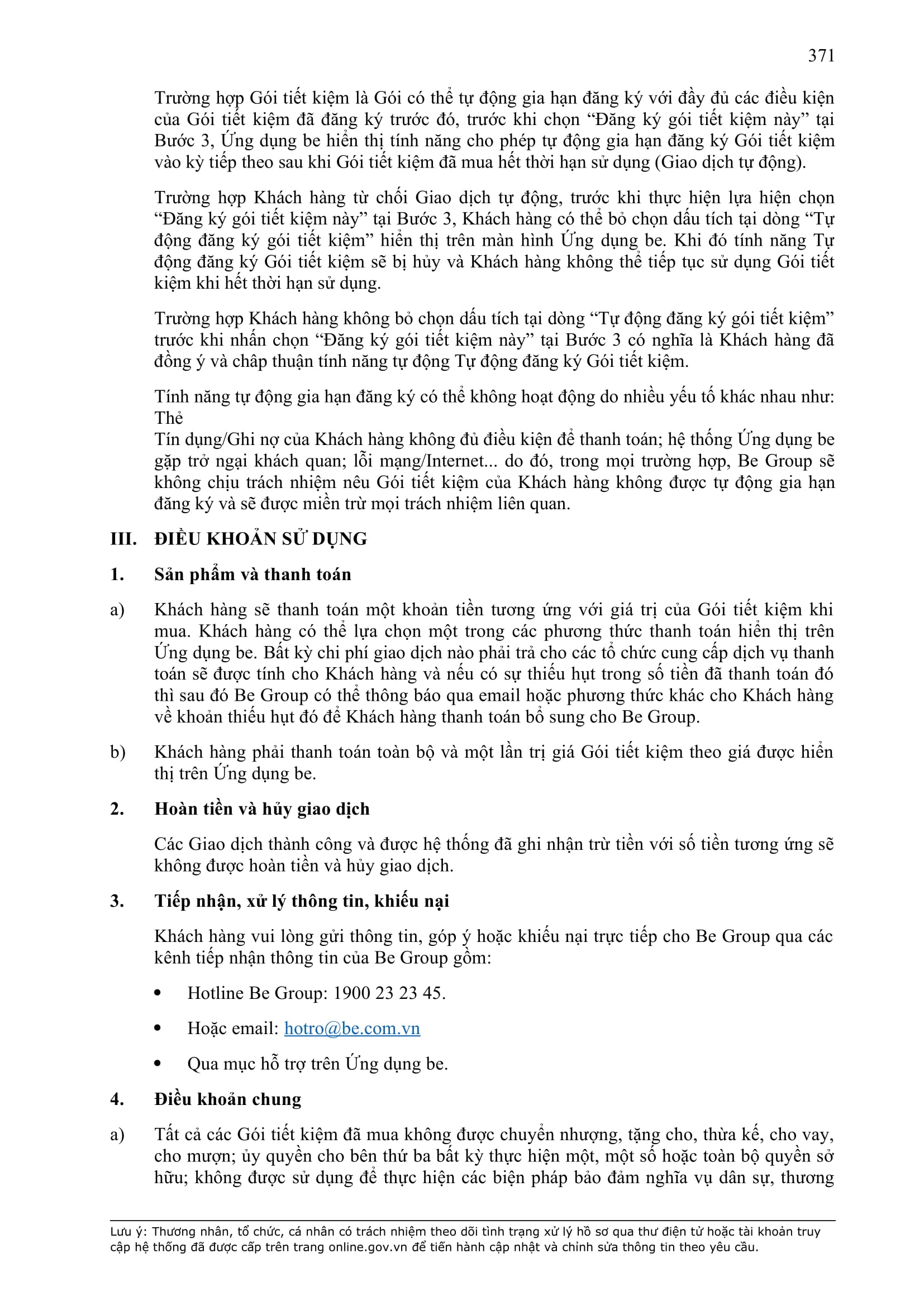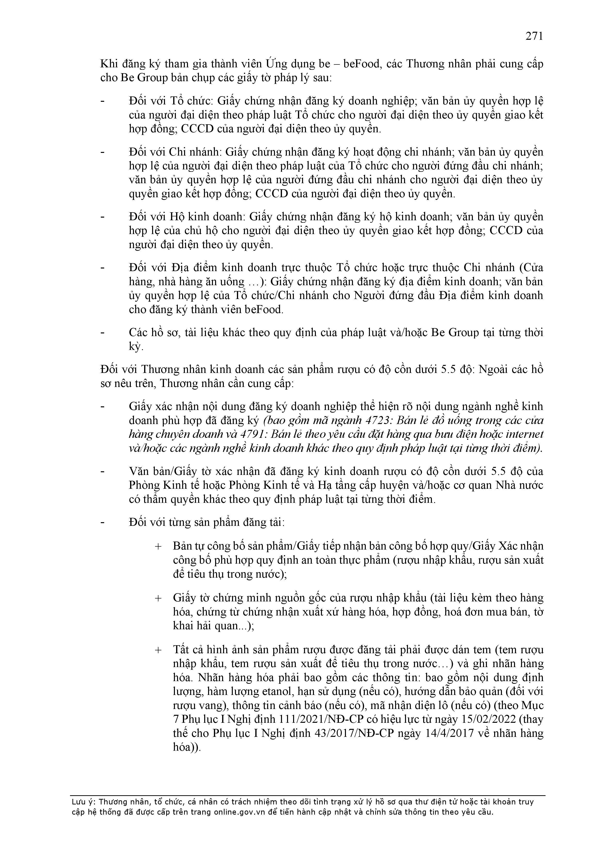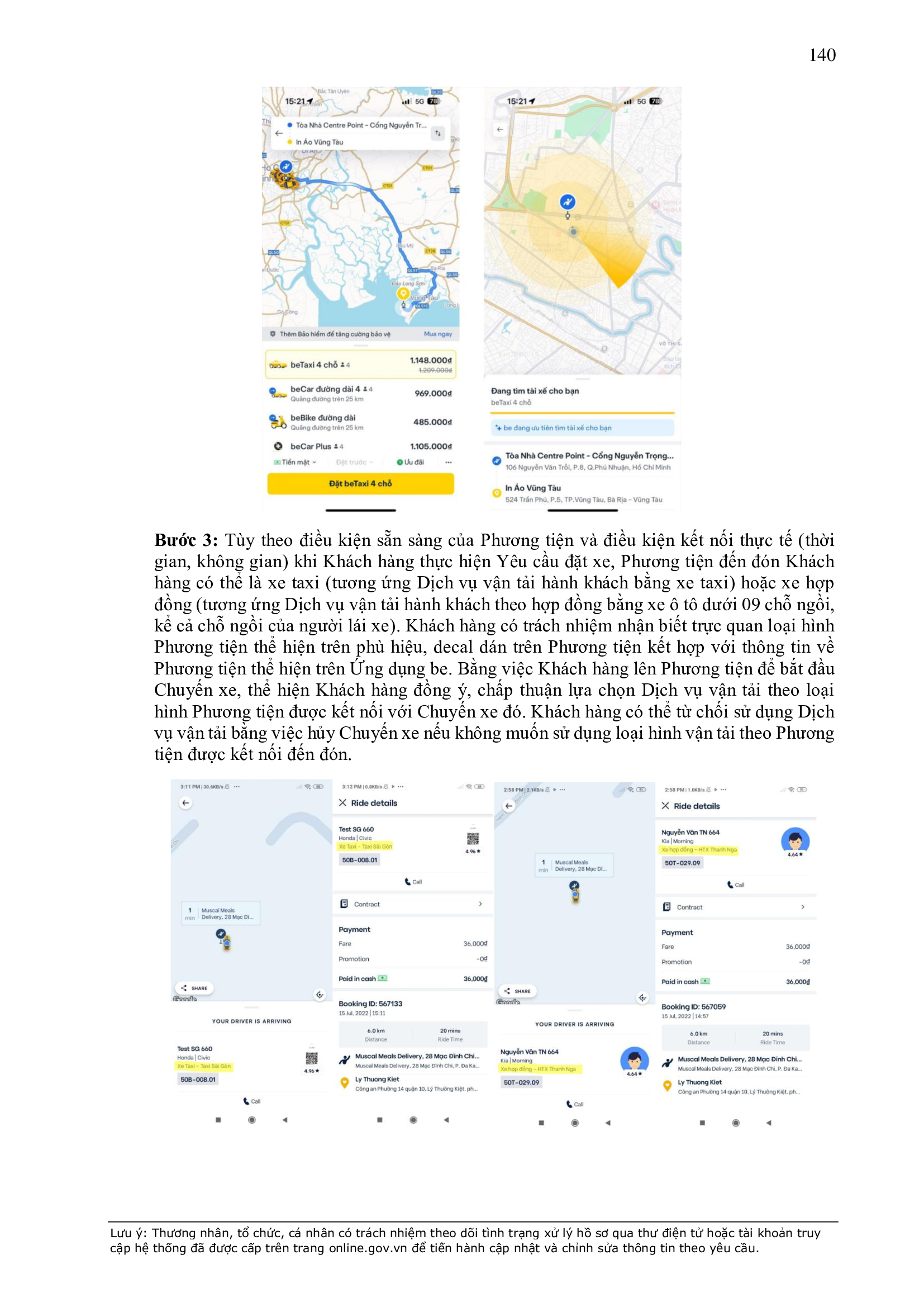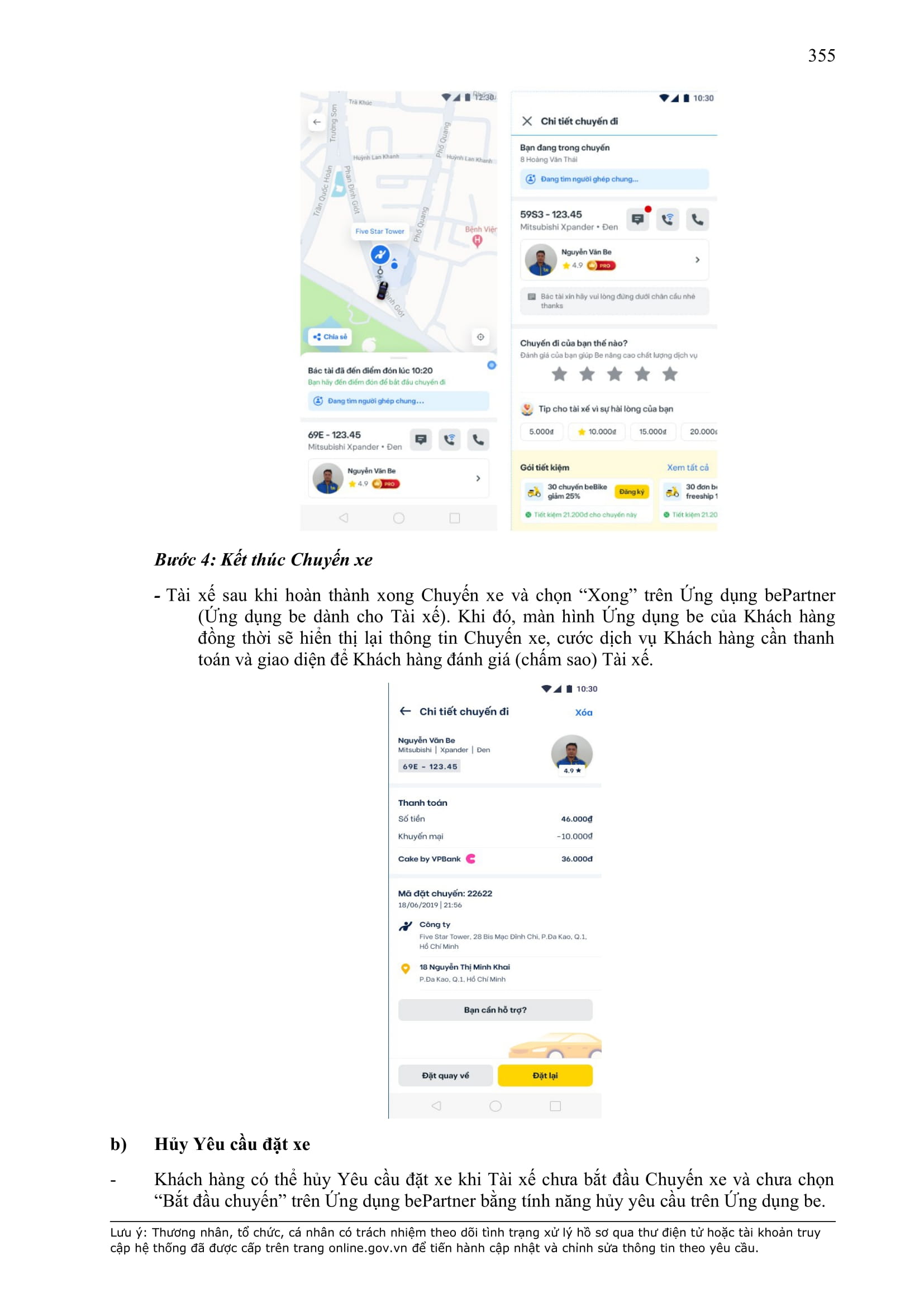 - Điều khoản cụ thể này quy định một số thông tin tối thiểu theo quy định của pháp luật đối với Hợp Đồng và sẽ được hiển thị trên Ứng dụng be, bao gồm: