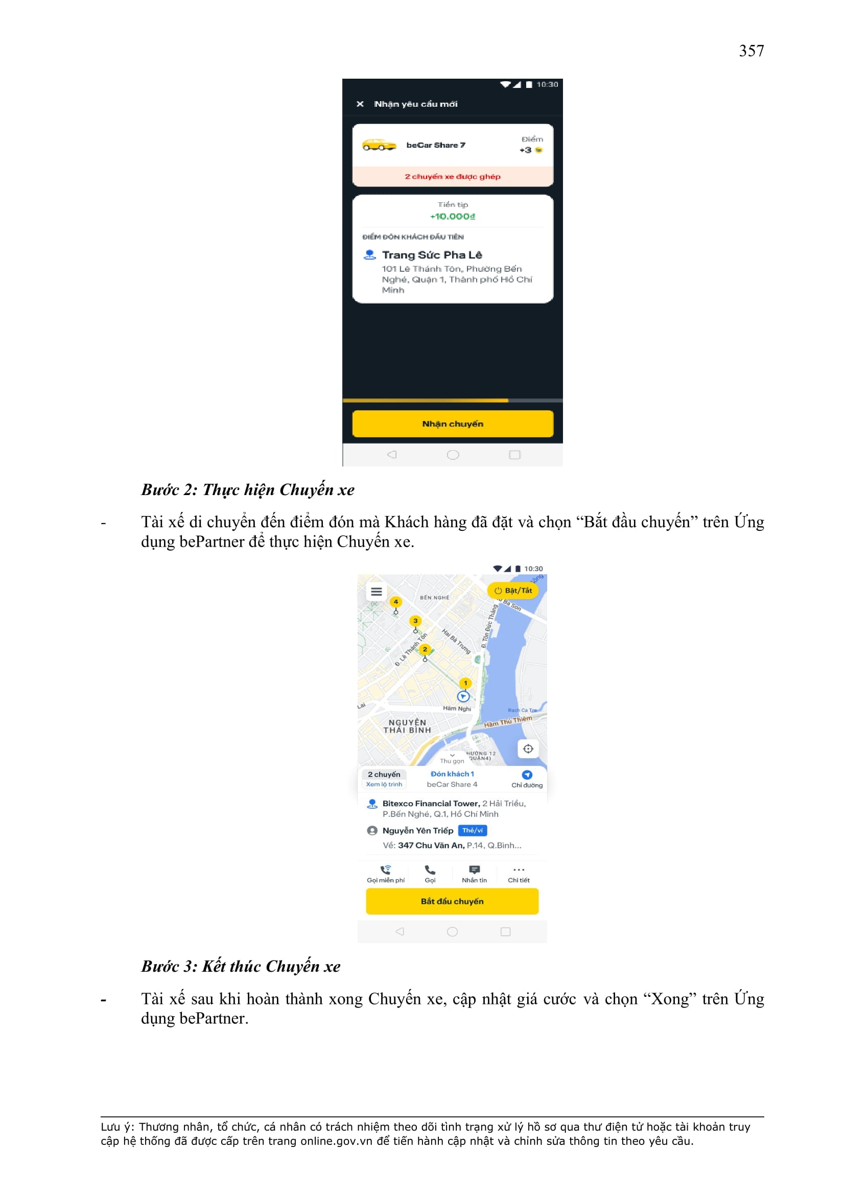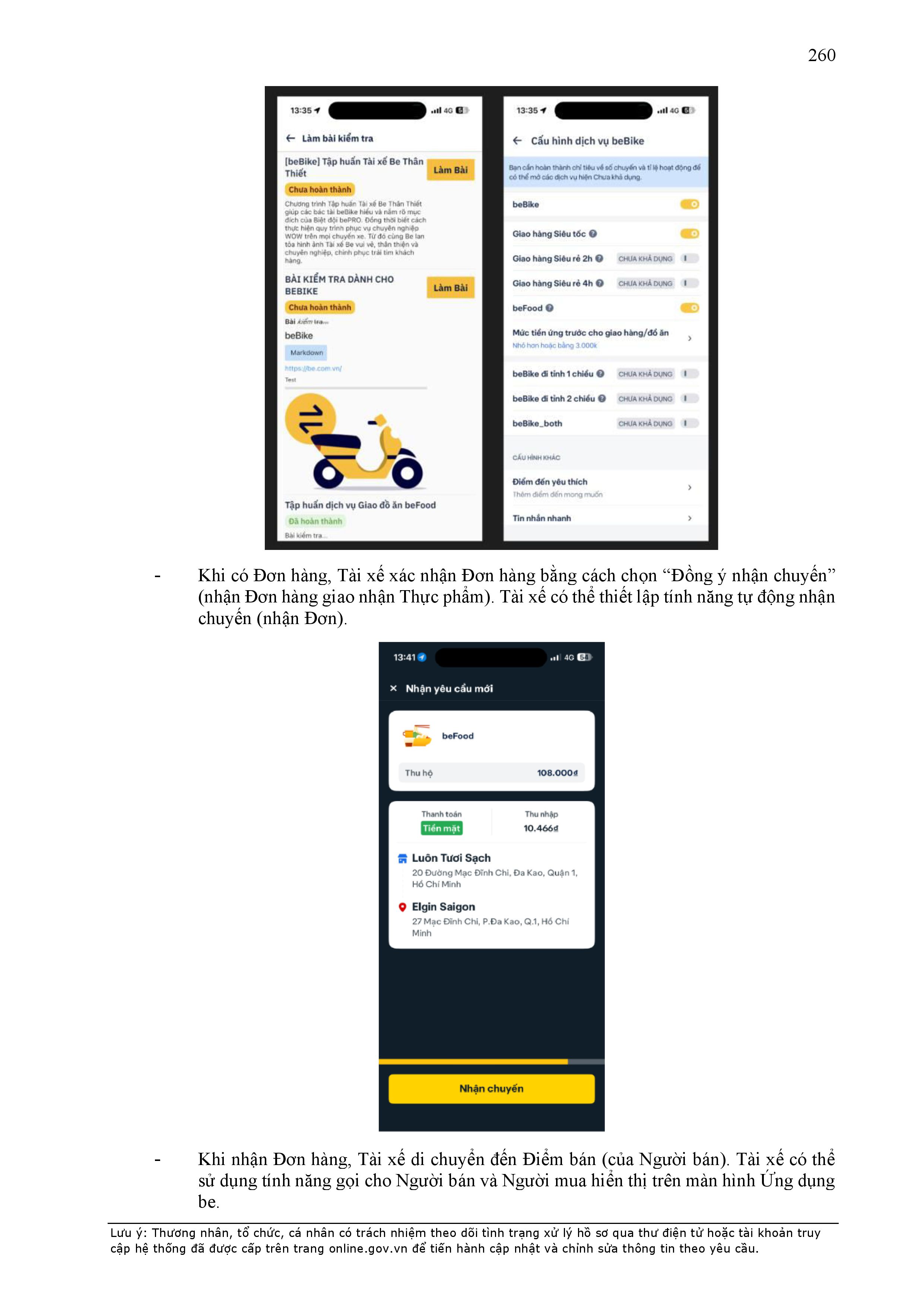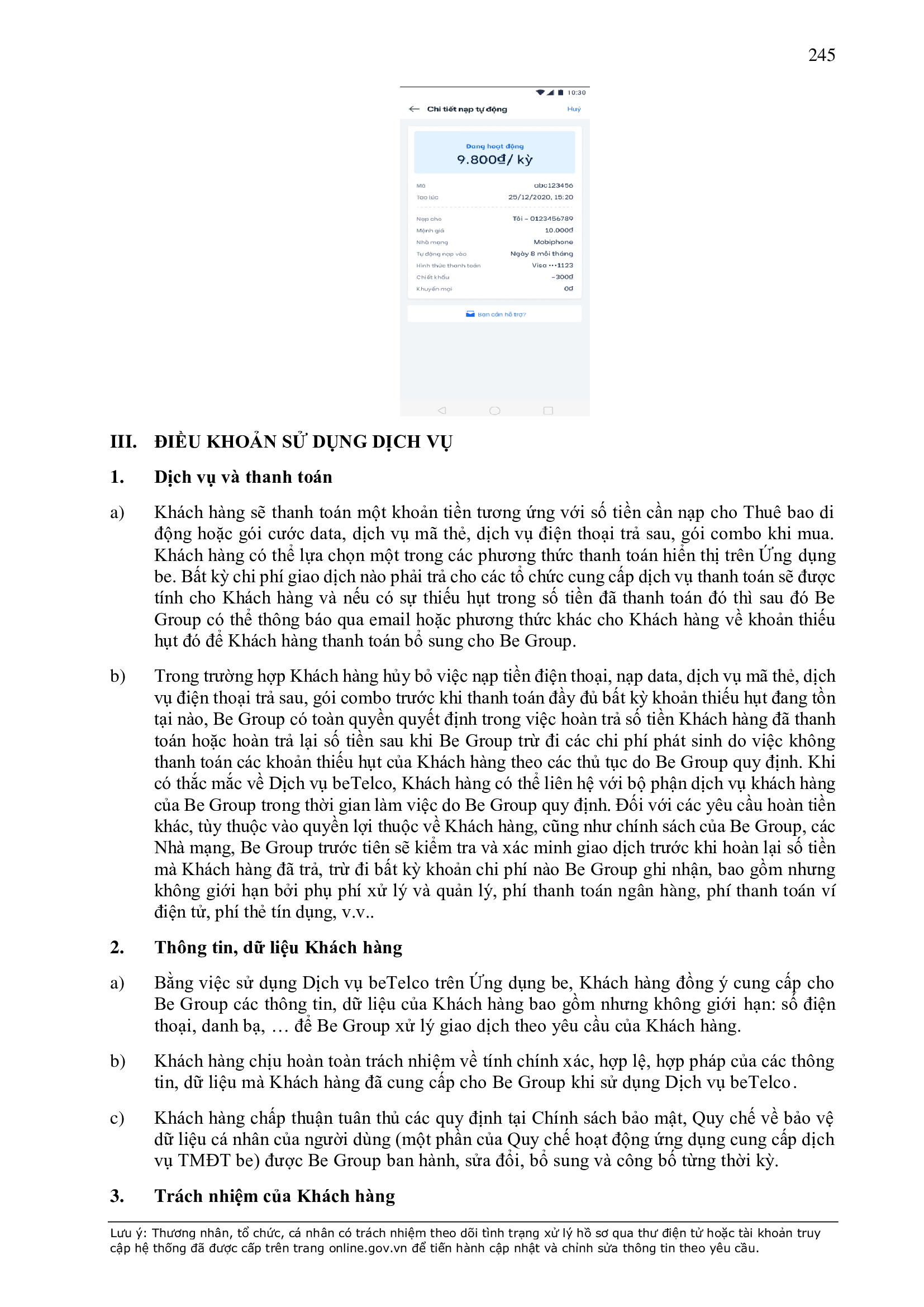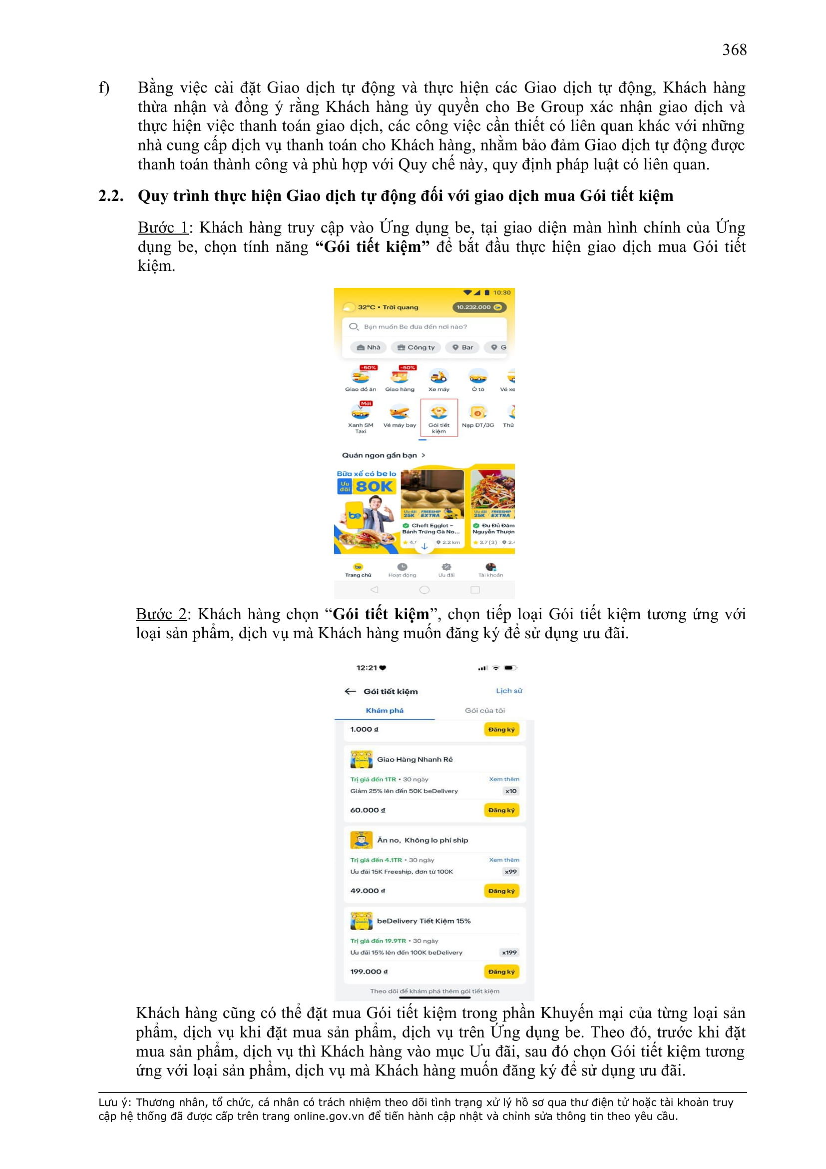- Điều khoản cụ thể này quy định một số thông tin tối thiểu theo quy định của pháp luật đối với Hợp Đồng và sẽ được hiển thị trên Ứng dụng be, bao gồm: