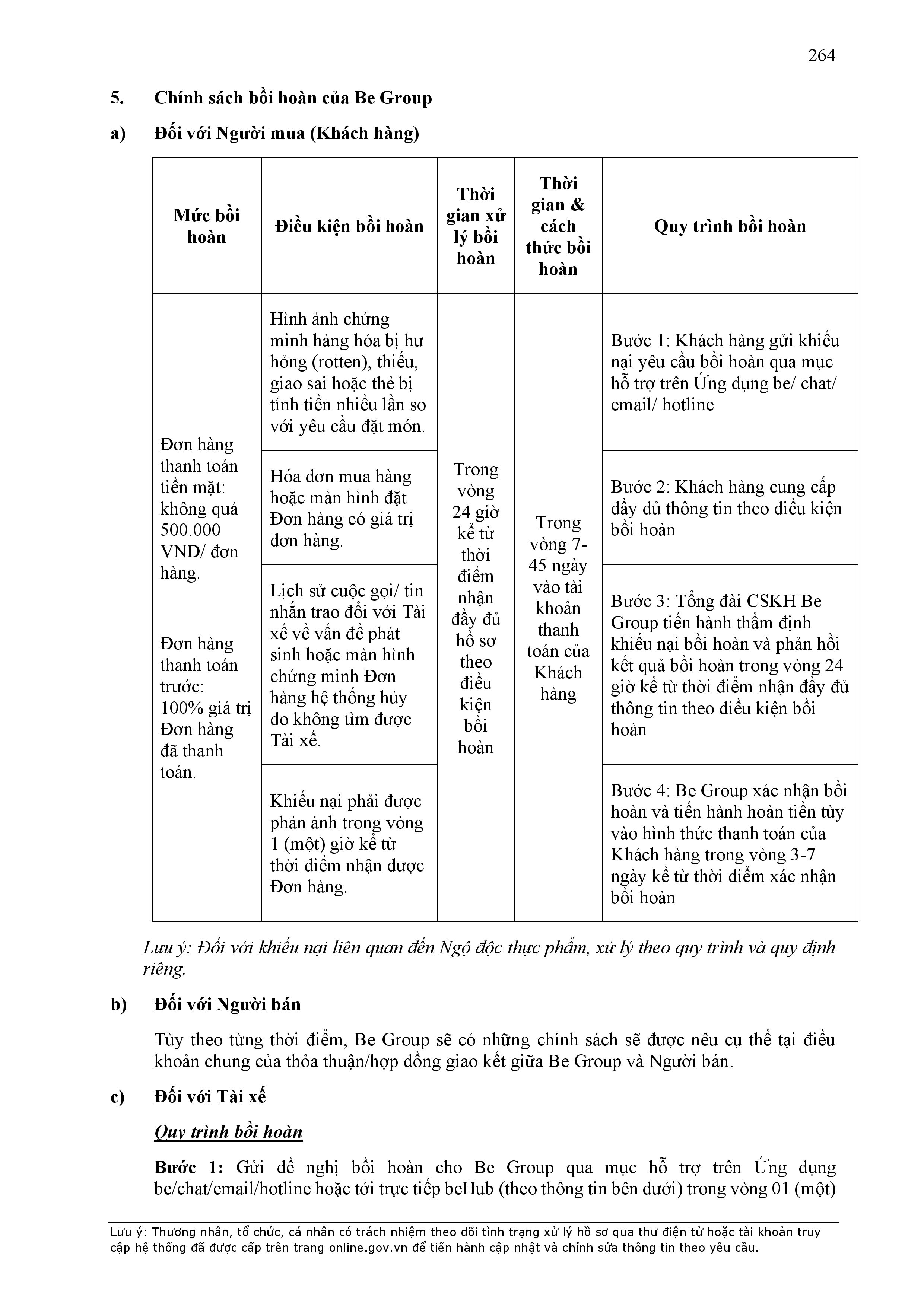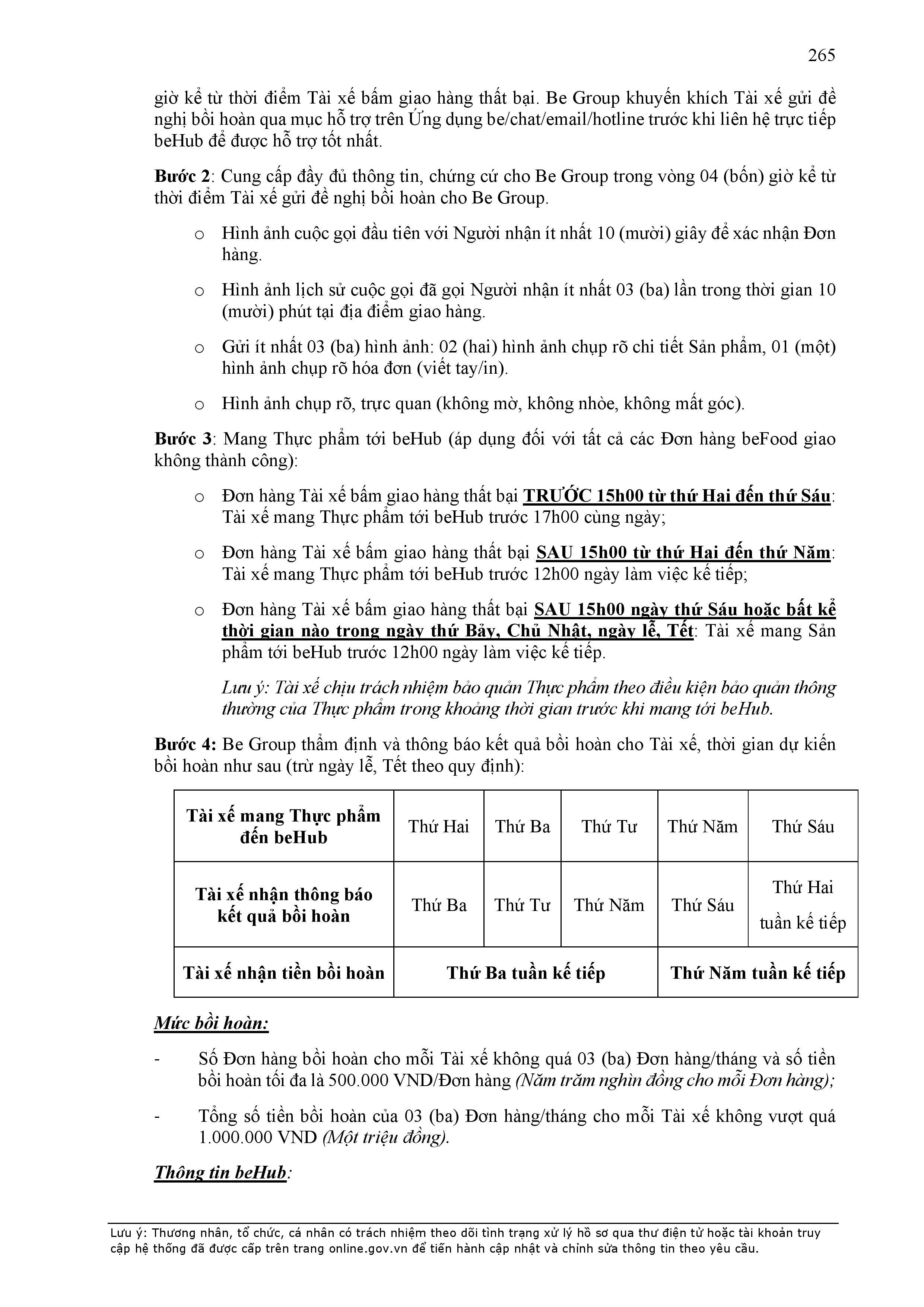 - BE GROUP (thay mặt cho Đơn Vị Vận Tải) chỉ tiếp nhận và xử lý những khiếu nại xảy ra trong vòng 60 (sáu mươi) ngày kể từ ngày phát sinh sự việc dẫn đến khiếu nại. Trong thời gian chậm nhất là 10 (mười) ngày làm việc sau khi nhận được khiếu nại của Khách Hàng, BE GROUP có trách nhiệm xác minh, cung cấp thông tin liên quan đến việc khiếu nại cho Khách Hàng.