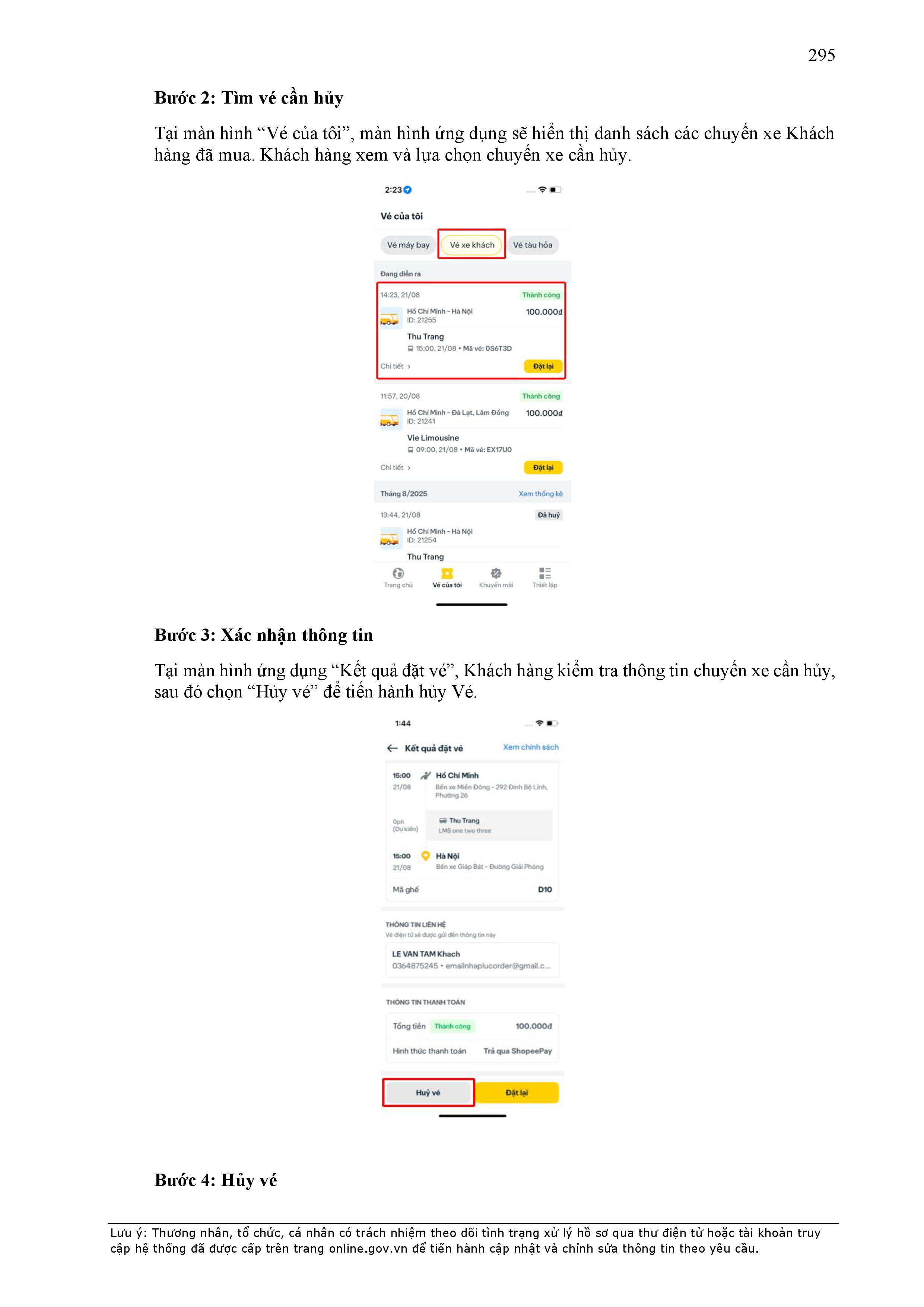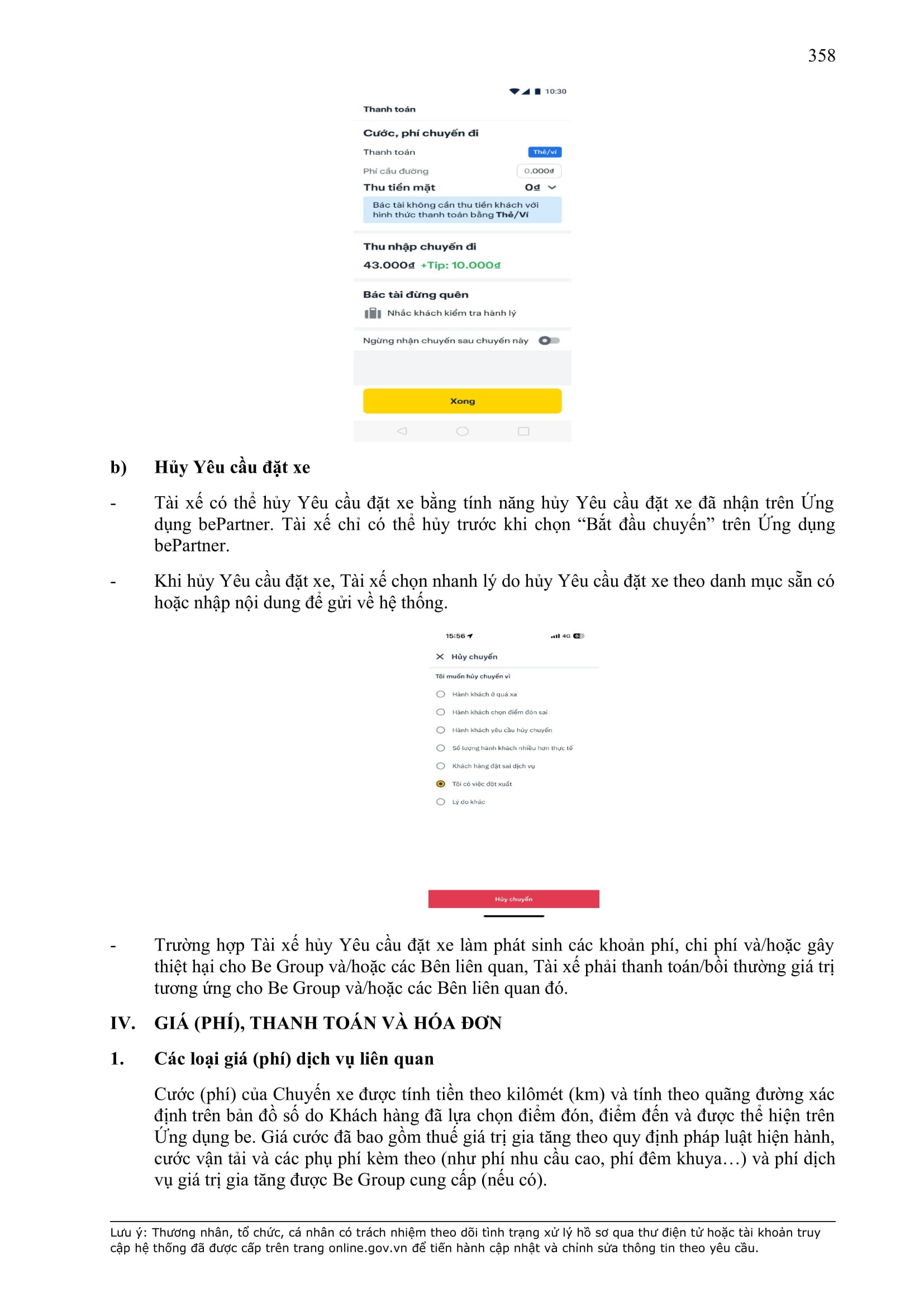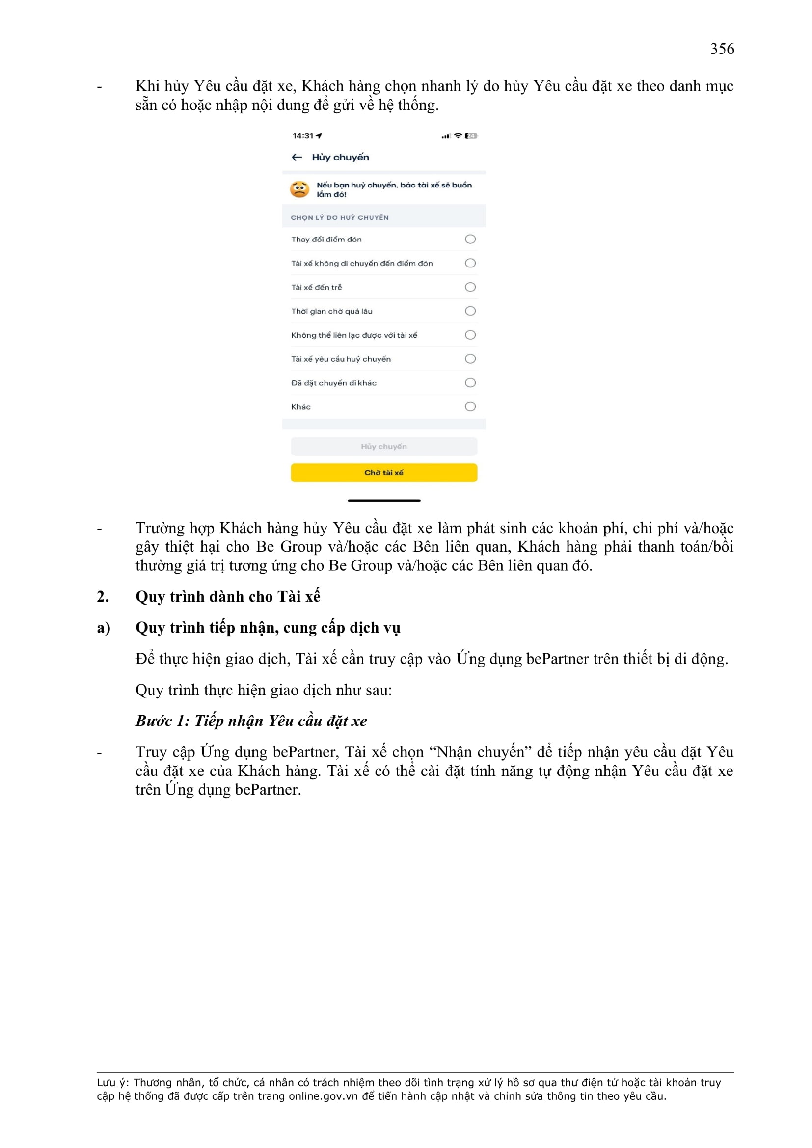 - Phí Huỷ được tự động cộng vào tổng số tiền mà Khách hàng phải thanh toán cho Chuyến xe hoàn tất kế tiếp của Khách hàng