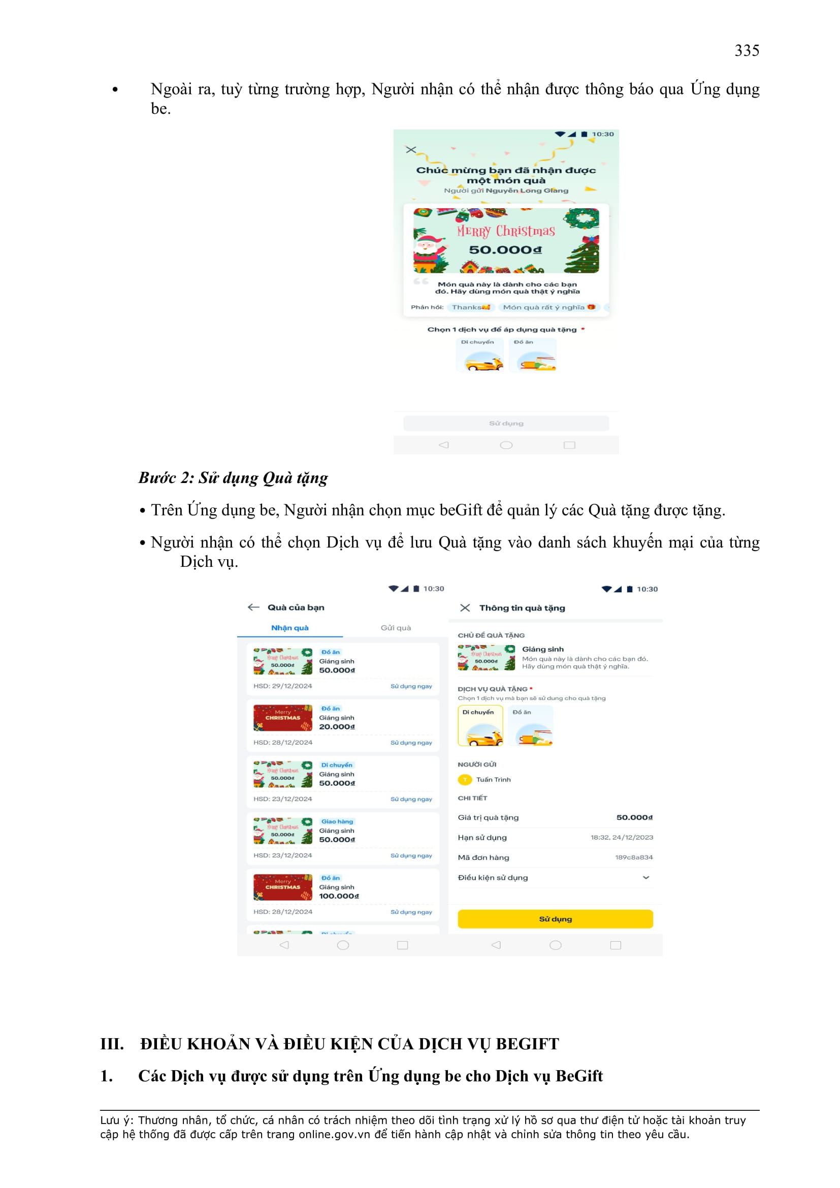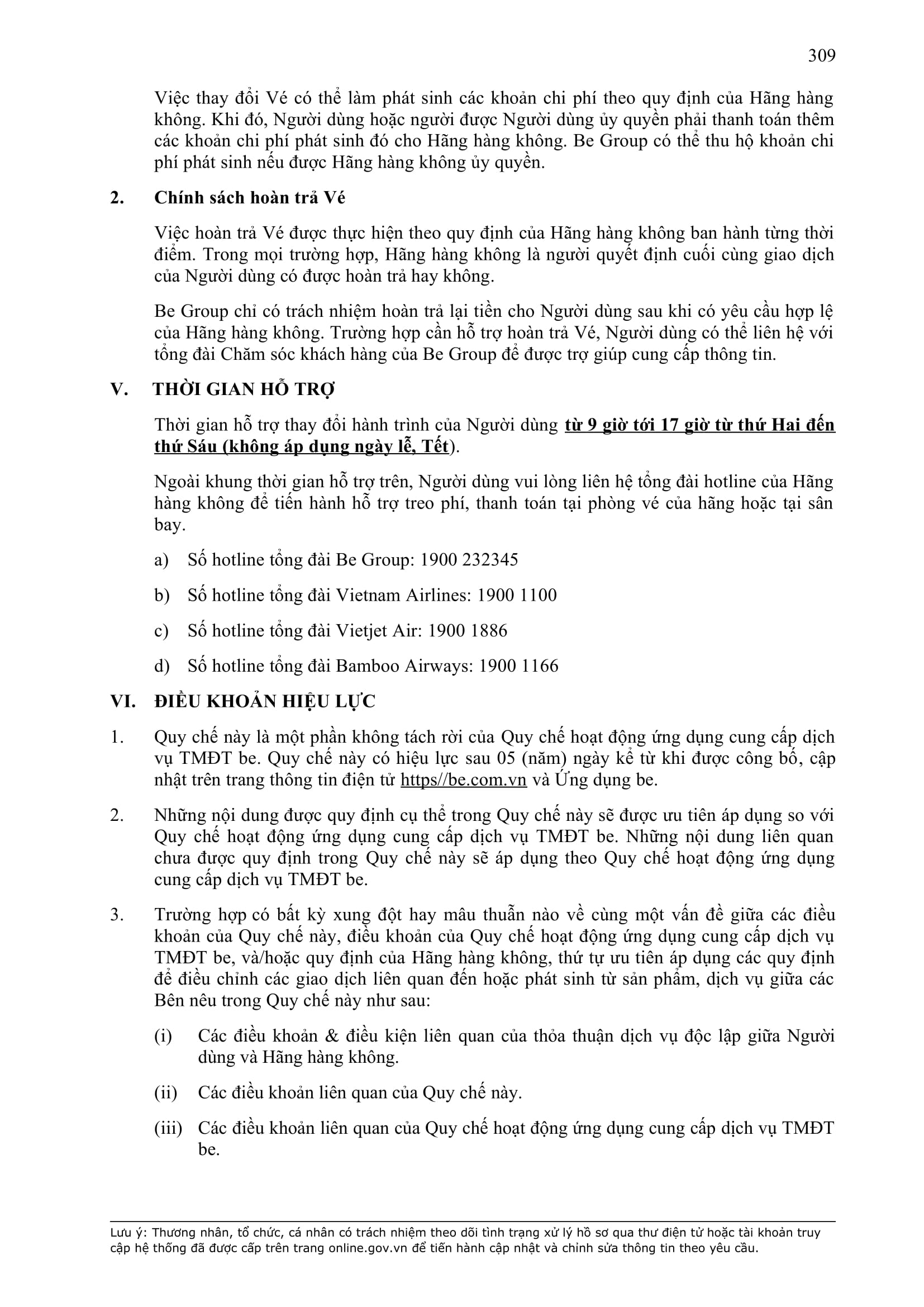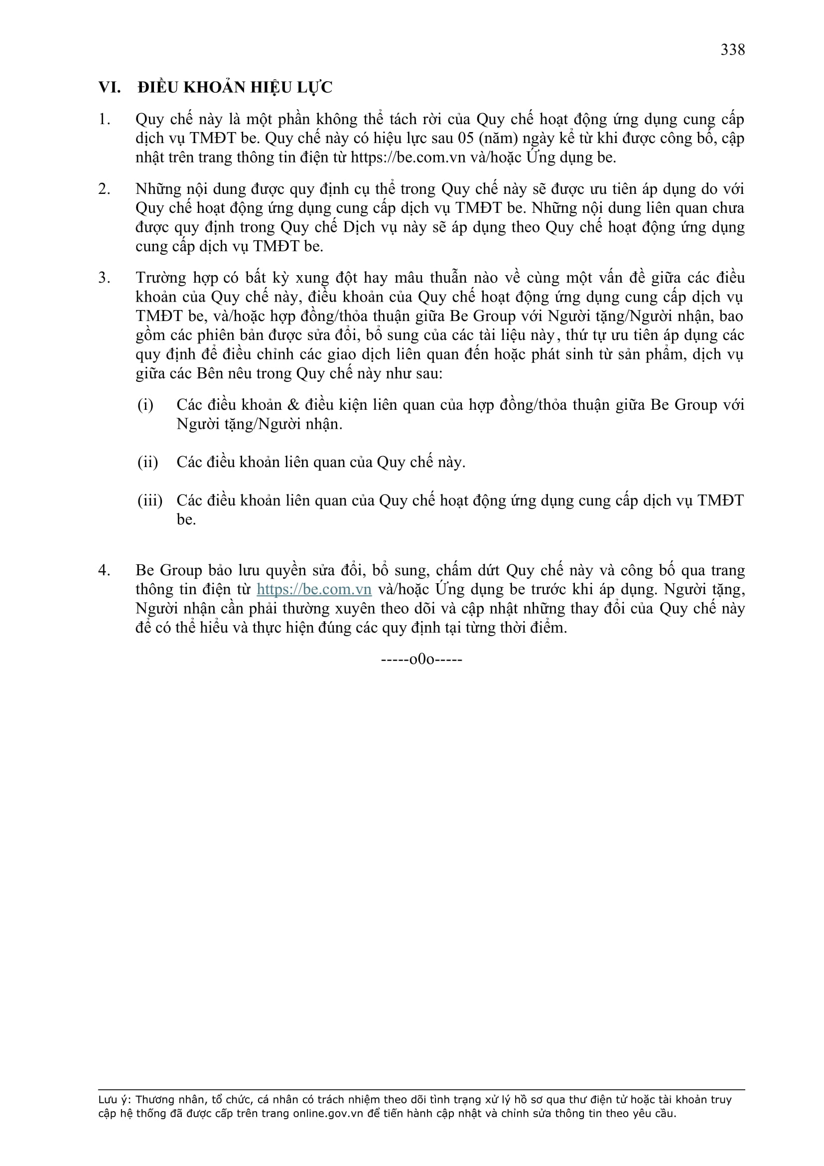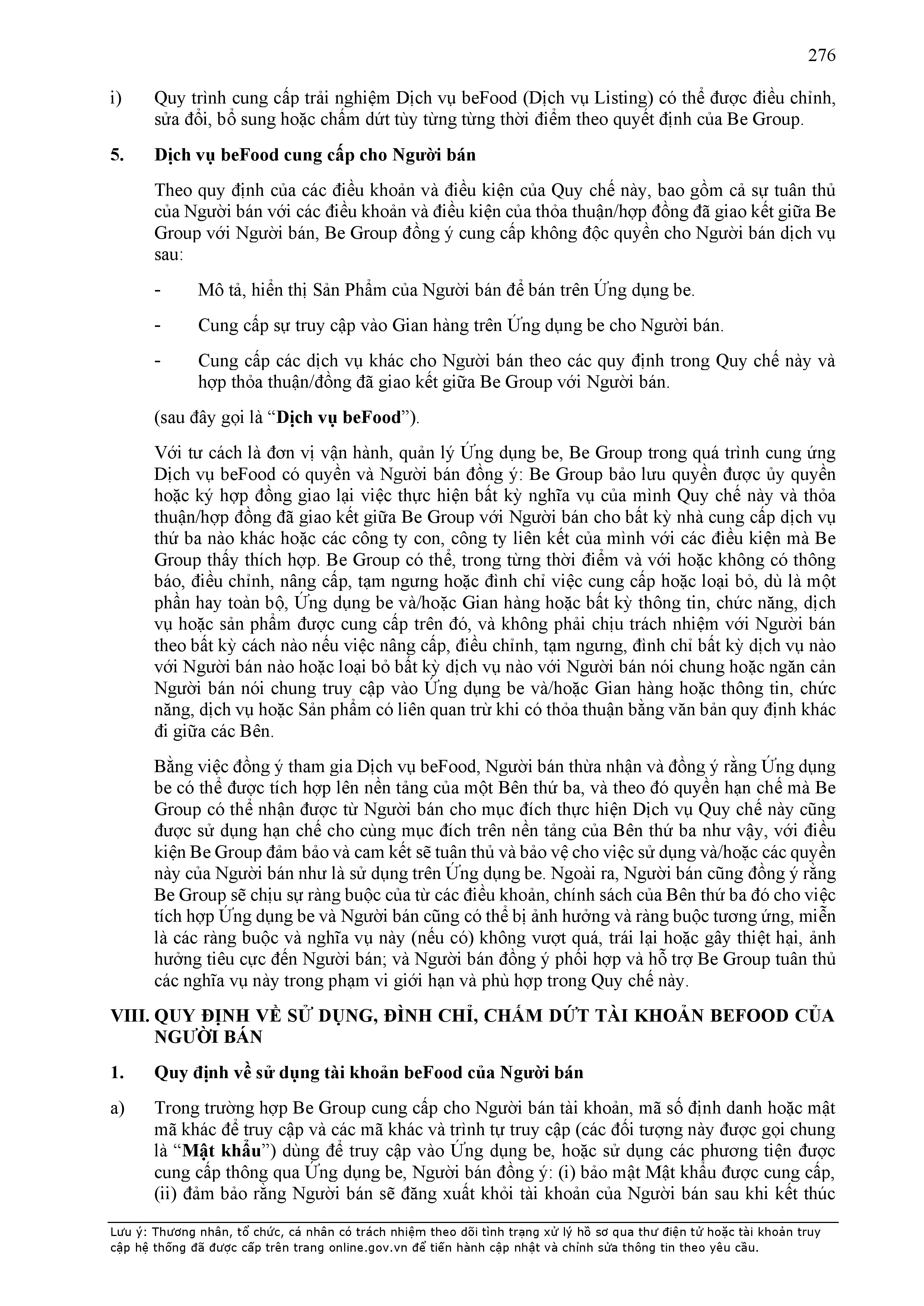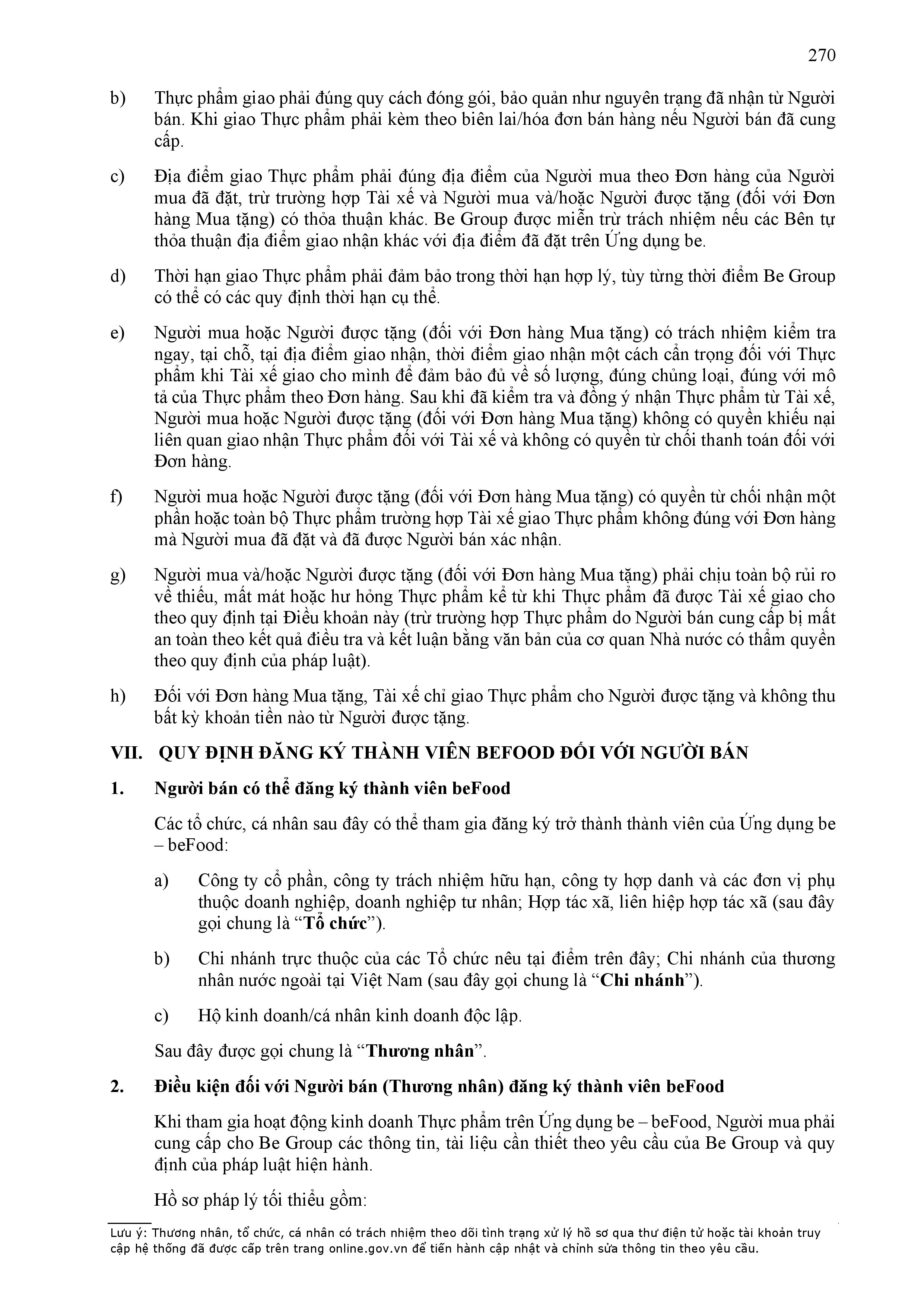 - Điều khoản cụ thể này là một phần không tách rời của Hợp Đồng và sẽ được hiển thị trên Ứng dụng be như sau: