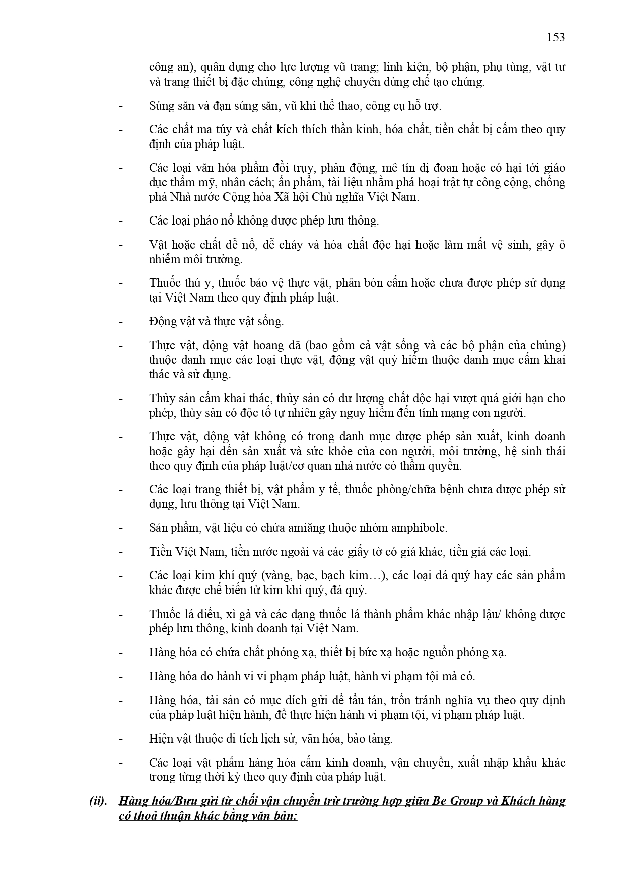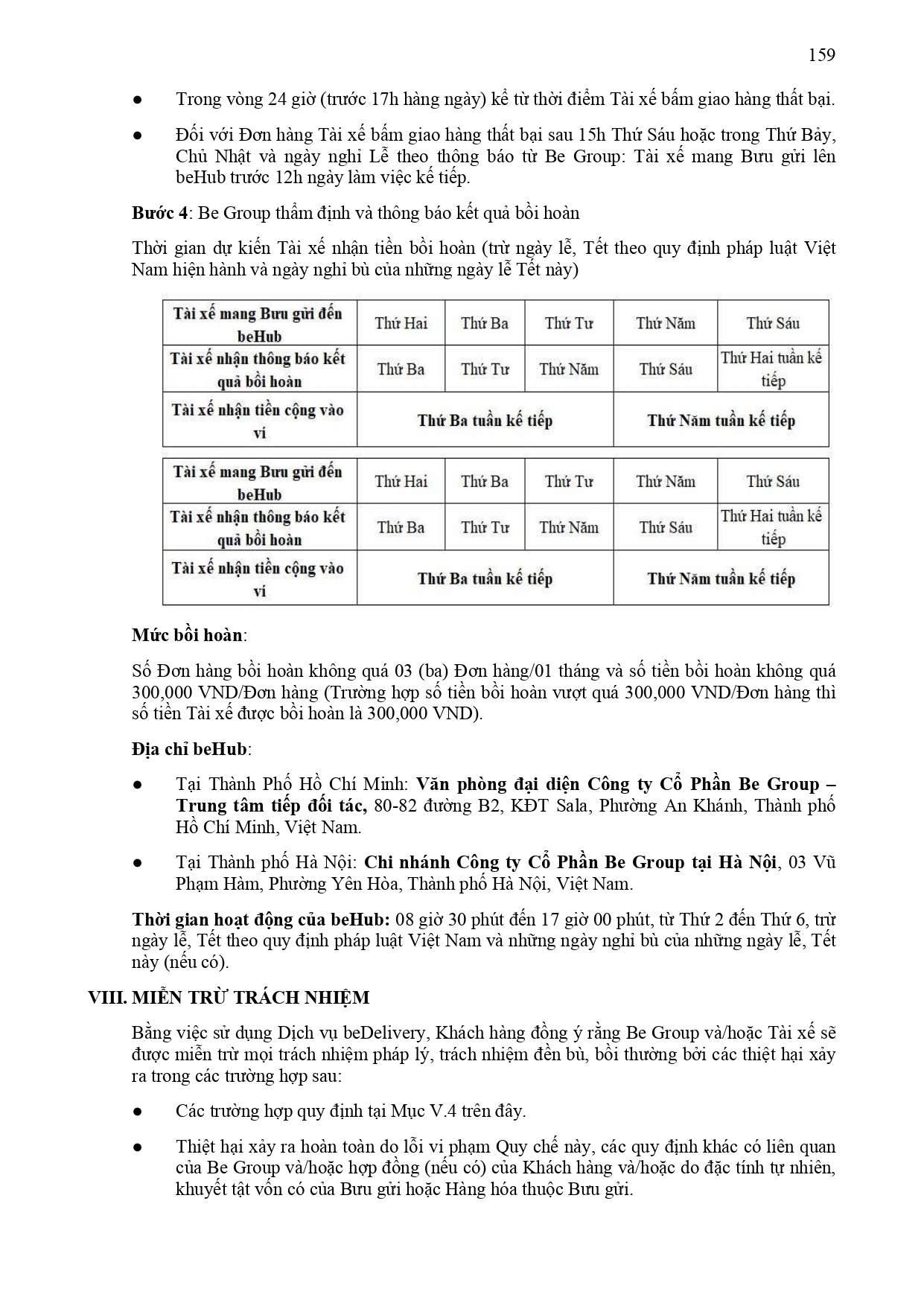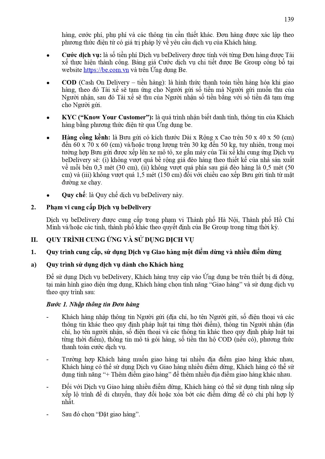 Danh sách bưu gửi không phát được thuộc dịch vụ BeDelivery