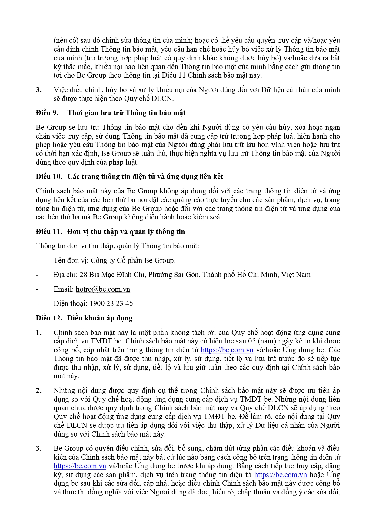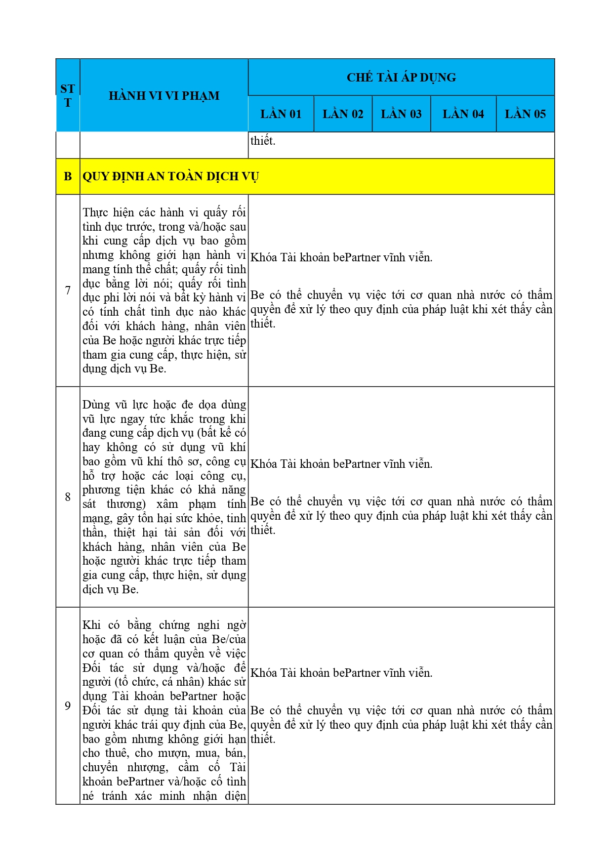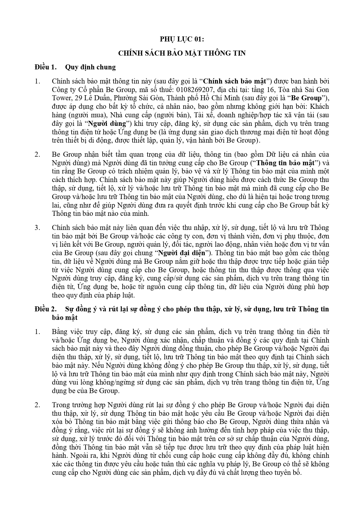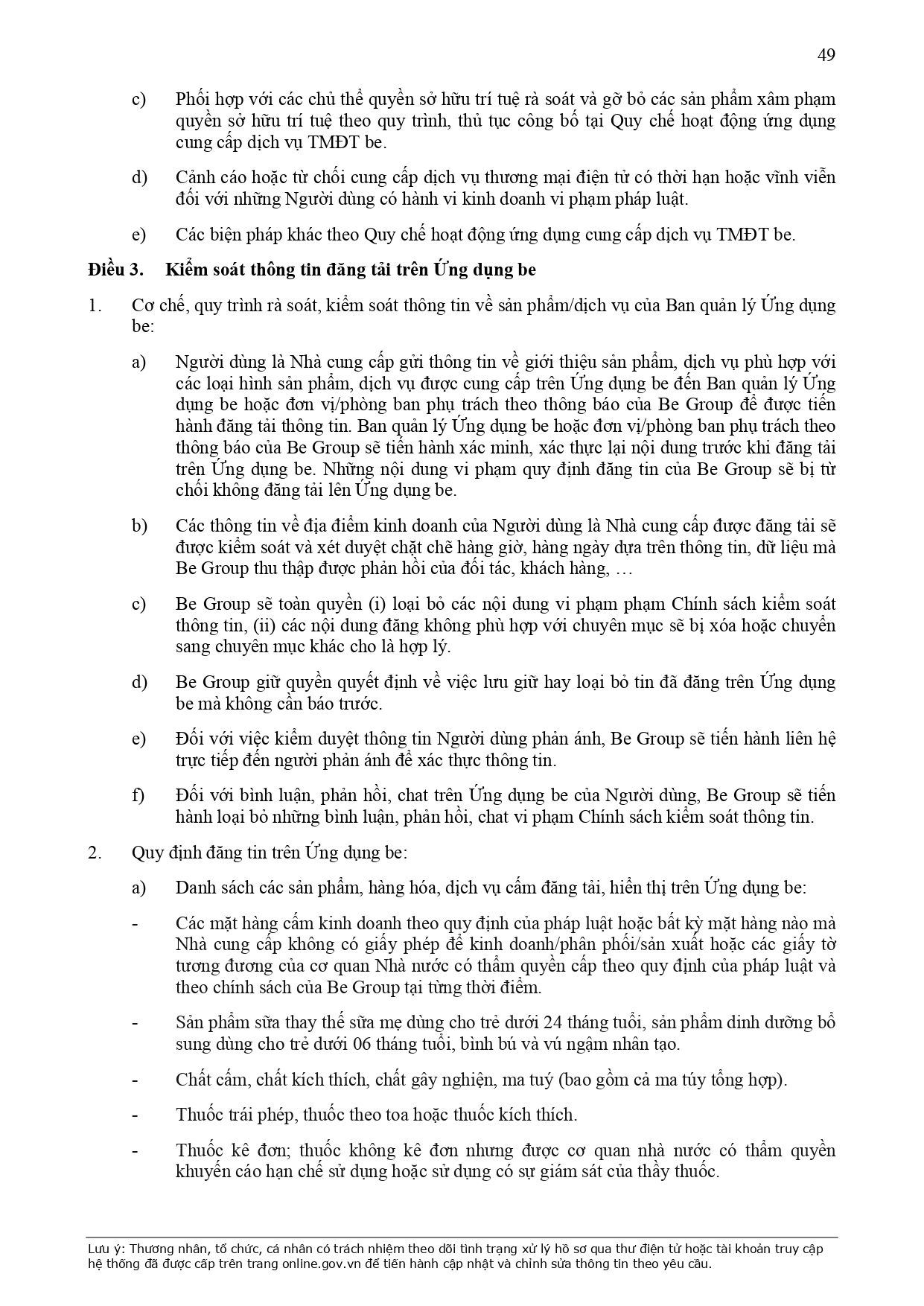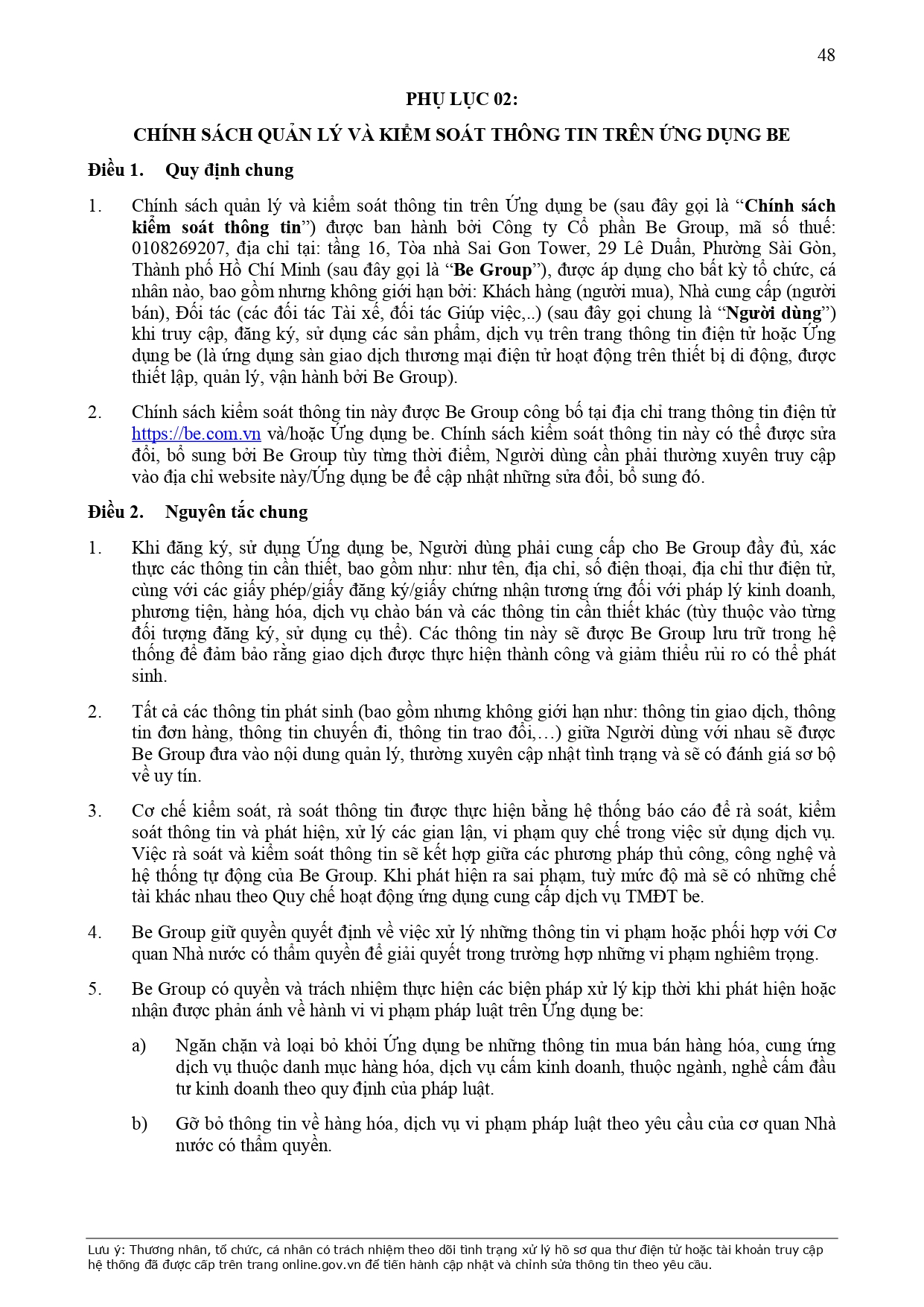 CHÍNH SÁCH QUẢN LÝ VÀ KIỂM SOÁT THÔNG TIN TRÊN ỨNG DỤNG BE